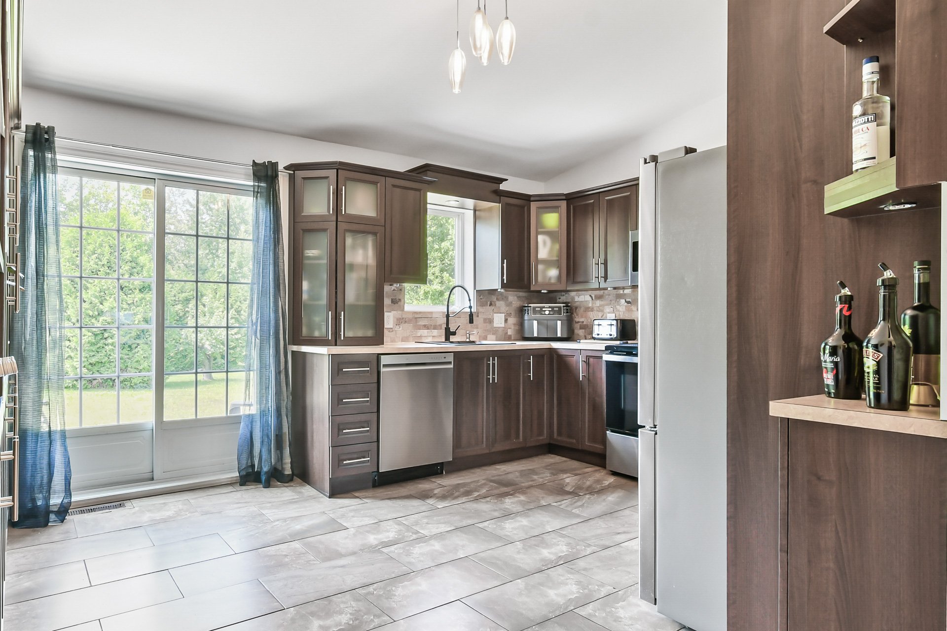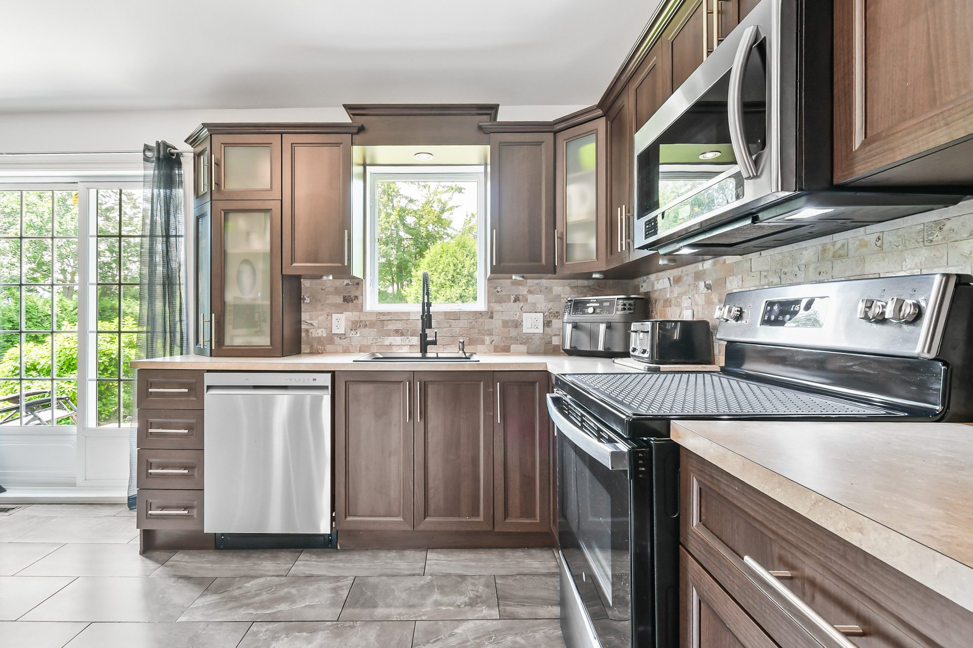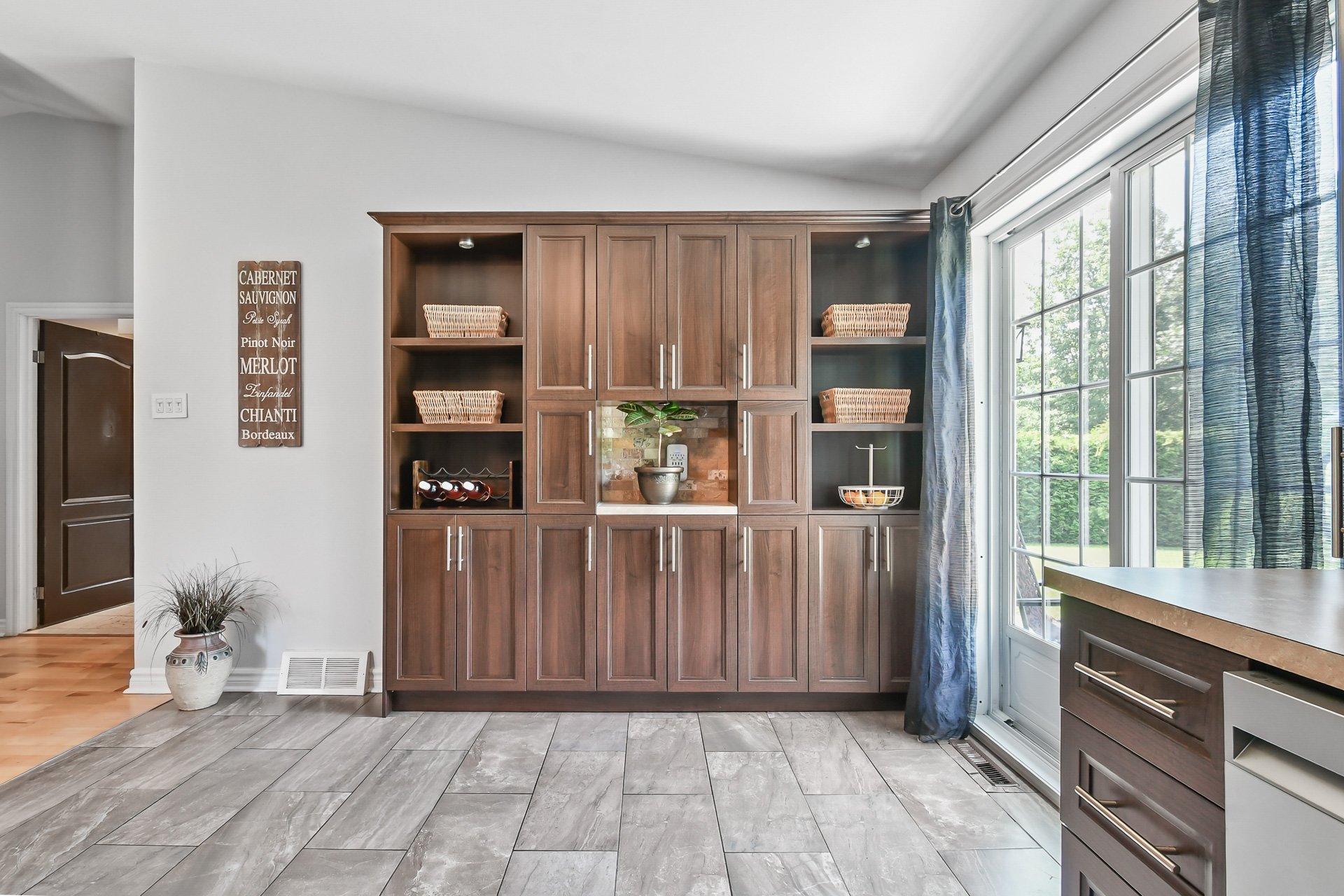 Lave-vaisselle, hotte micro-ondes, fixtures d'éclairage, pôles, rideaux, stores, bureau de travail dans la pièce bureau, thermopompe murale, machinerie pour adouciceur d'eau, fournaise centrale, aspirateur central