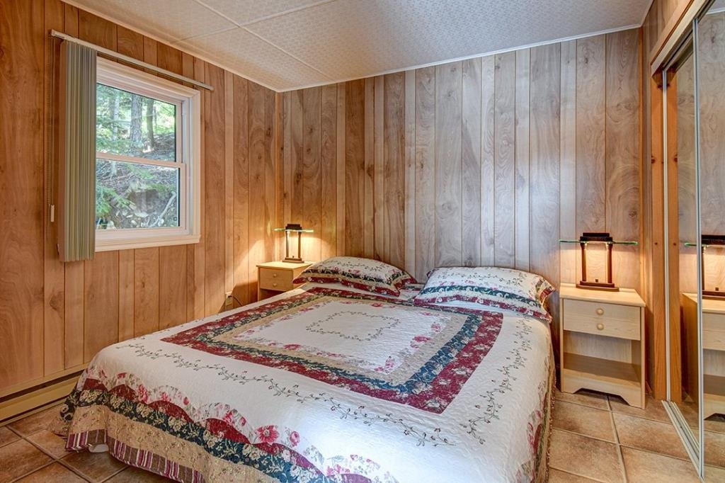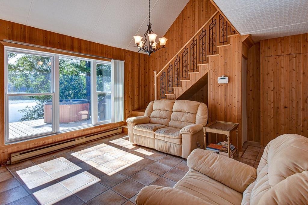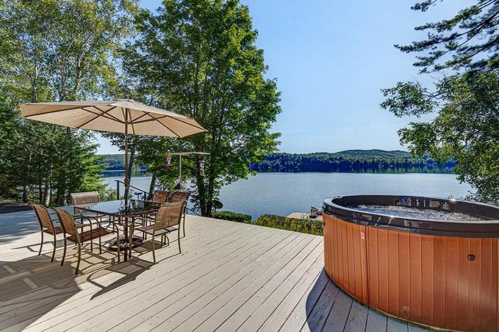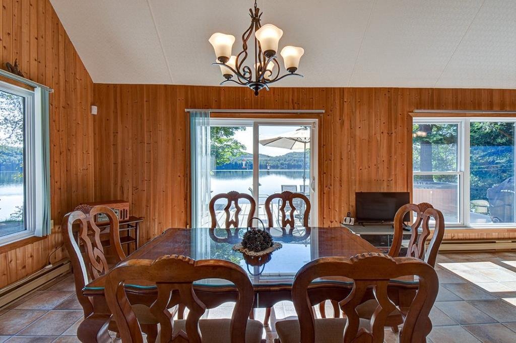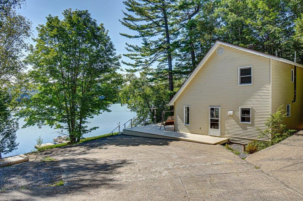 Available now, this exceptional waterfront property sits directly on the shores of a highly sought-after navigable lake, offering both tranquility and accessibility. Less than 20 minutes from downtown Mont-Tremblant and 30 minutes from the ski slopes, just 1h25 from Montreal. West-southwest orientation for breathtaking sunsets. Private lot with dock, expansive terrace with built-in spa, and a convenient stilted garage. Bright open-concept living area with semi-cathedral ceiling, functional kitchen with ample storage, spacious primary bedroom, charming mezzanine, and two large bedrooms with a shared bathroom. Perfect for nature lovers.