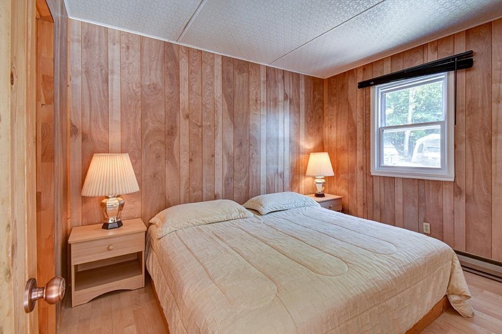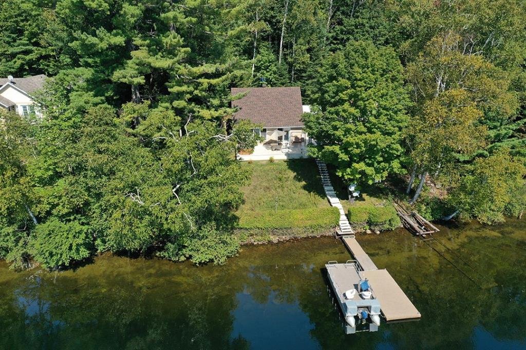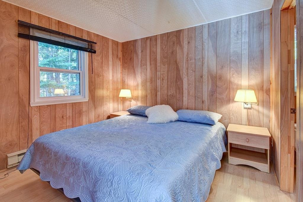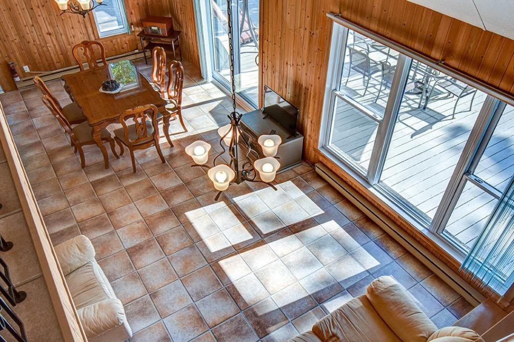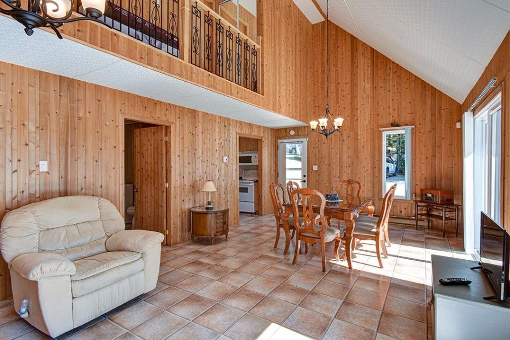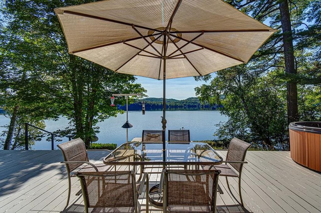 Available now, this exceptional waterfront property sits directly on the shores of a highly sought-after navigable lake, offering both tranquility and accessibility. Less than 20 minutes from downtown Mont-Tremblant and 30 minutes from the ski slopes, just 1h25 from Montreal. West-southwest orientation for breathtaking sunsets. Private lot with dock, expansive terrace with built-in spa, and a convenient stilted garage. Bright open-concept living area with semi-cathedral ceiling, functional kitchen with ample storage, spacious primary bedroom, charming mezzanine, and two large bedrooms with a shared bathroom. Perfect for nature lovers.