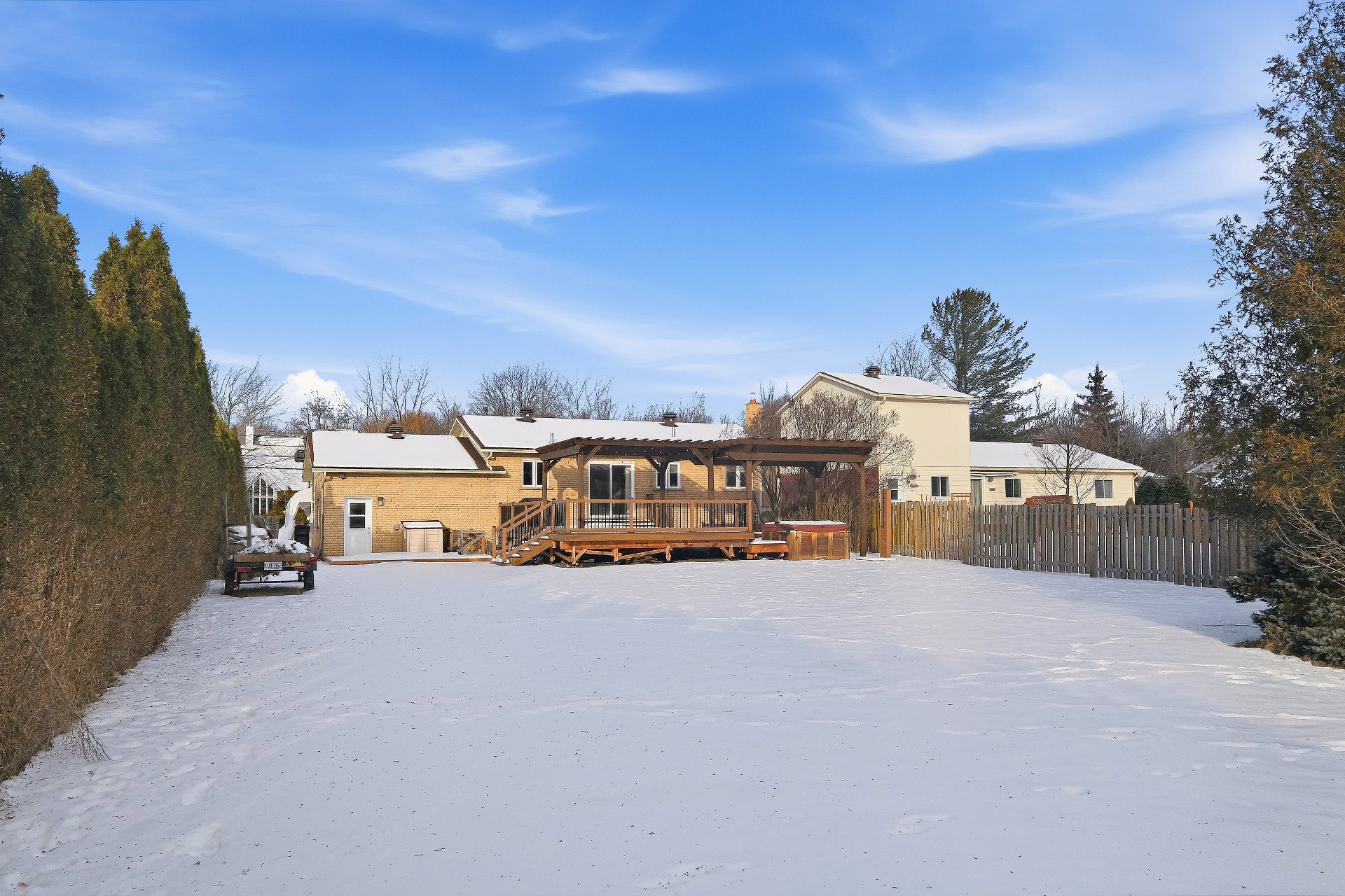 Welcome to 3709 Rue Pacific, a bungalow located in the sought-after Boisé St-Hubert area, close to all services and major roadways. This property sits on a lot of over 17,000 sq. ft. and offers four generously sized bedrooms, a renovated bathroom with heated floors, a spacious basement family room with a wood-burning fireplace, and a garage. Outside, the yard features a large terrace with pergola, perfect for entertaining. An ideal home for a family seeking space, privacy, and a prime location.