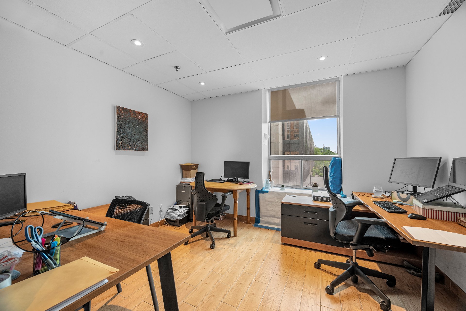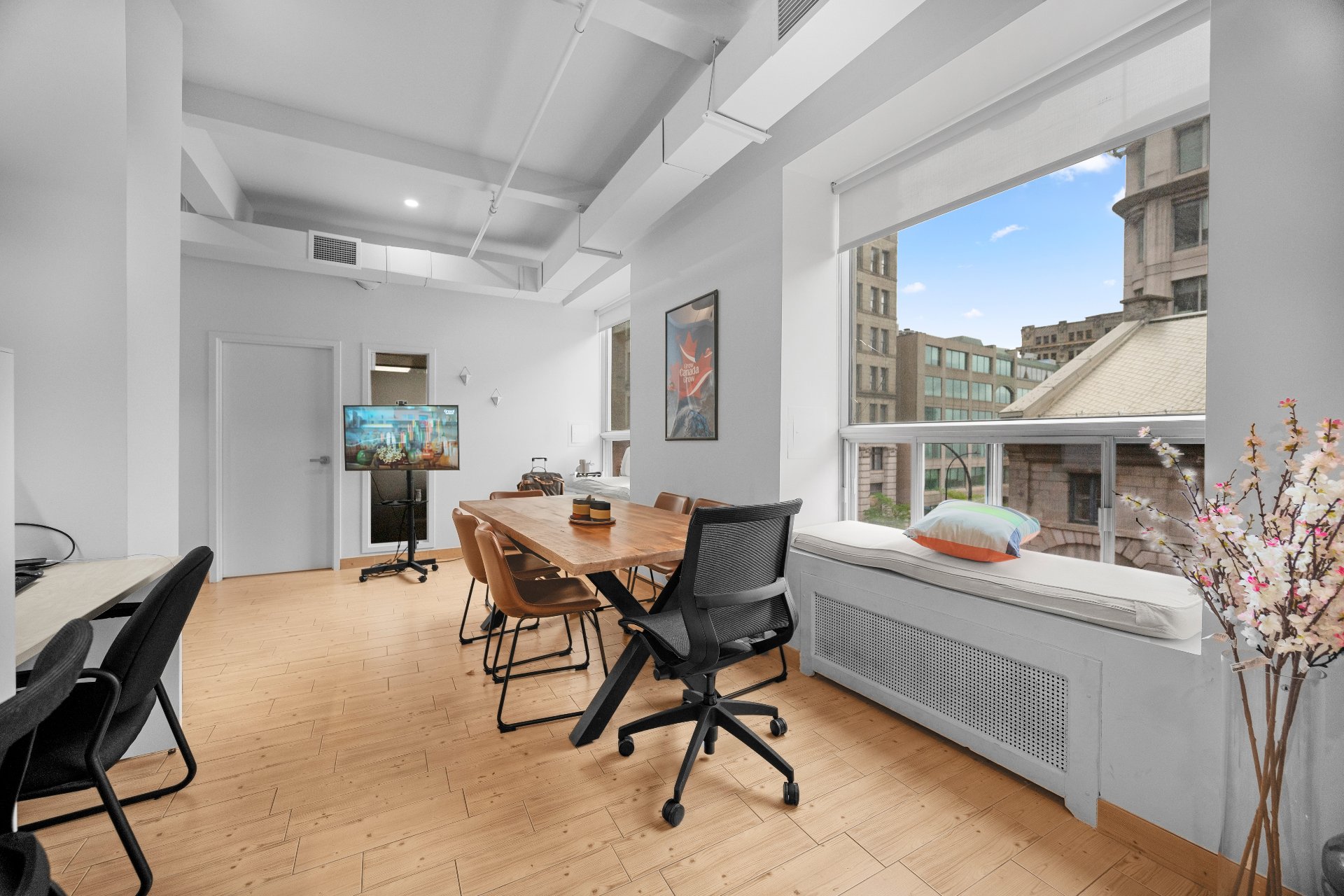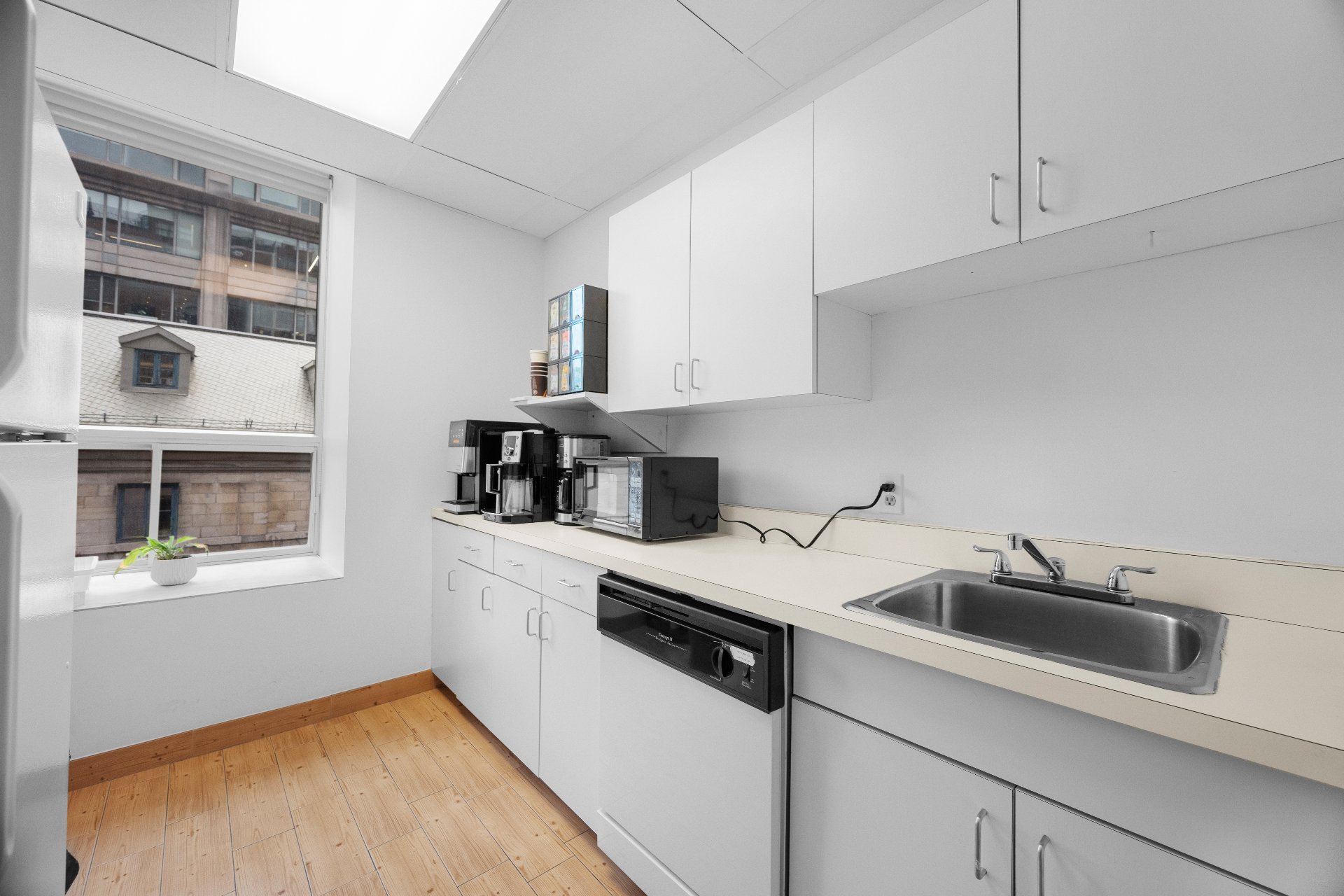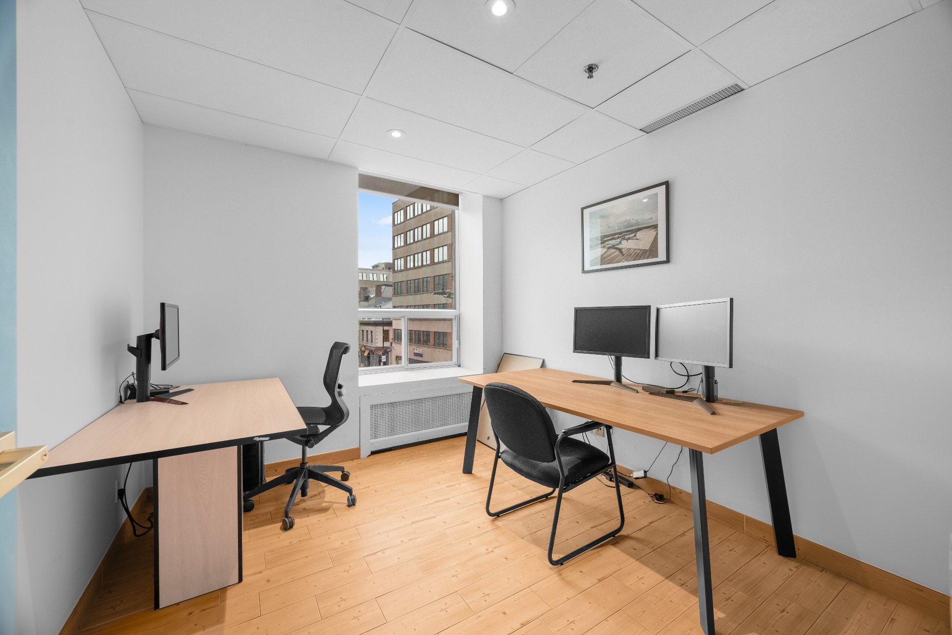 Unit includes 5 closed offices, a large collaborative workspace for 8 people as well as a shared kitchen and conference room. 4 of the closed offices in the unit are rented. The other is reserved for the owner, with reception, a storage room and a printer room. Perfect for lawyers or companies looking for a prime address in the heart of Old Montreal, where the majority of employees are teleworking. 5 min from Place-d'Armes metro station, Palais des Congrès and Viger Station. Enjoy an elegant yet functional environment, just a few steps from the Old Port, cafés, parks and restaurants.