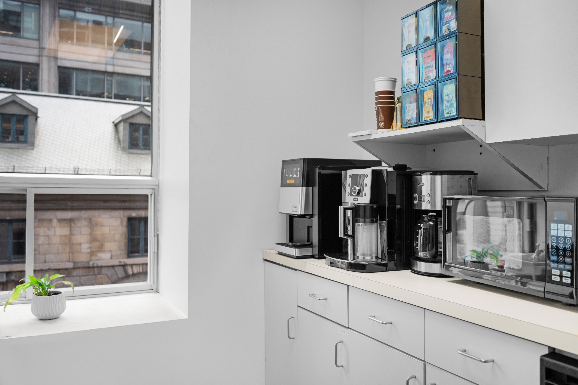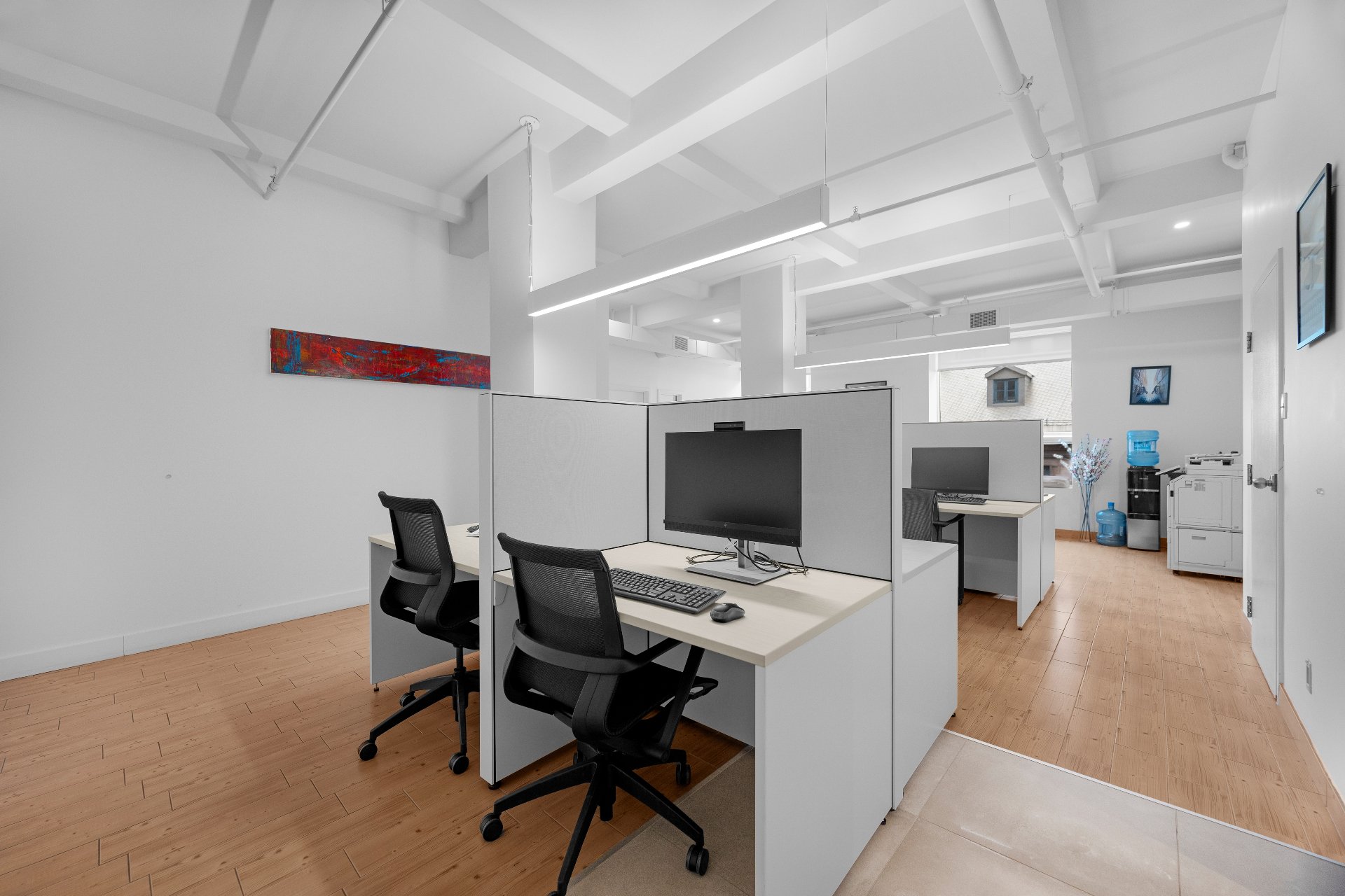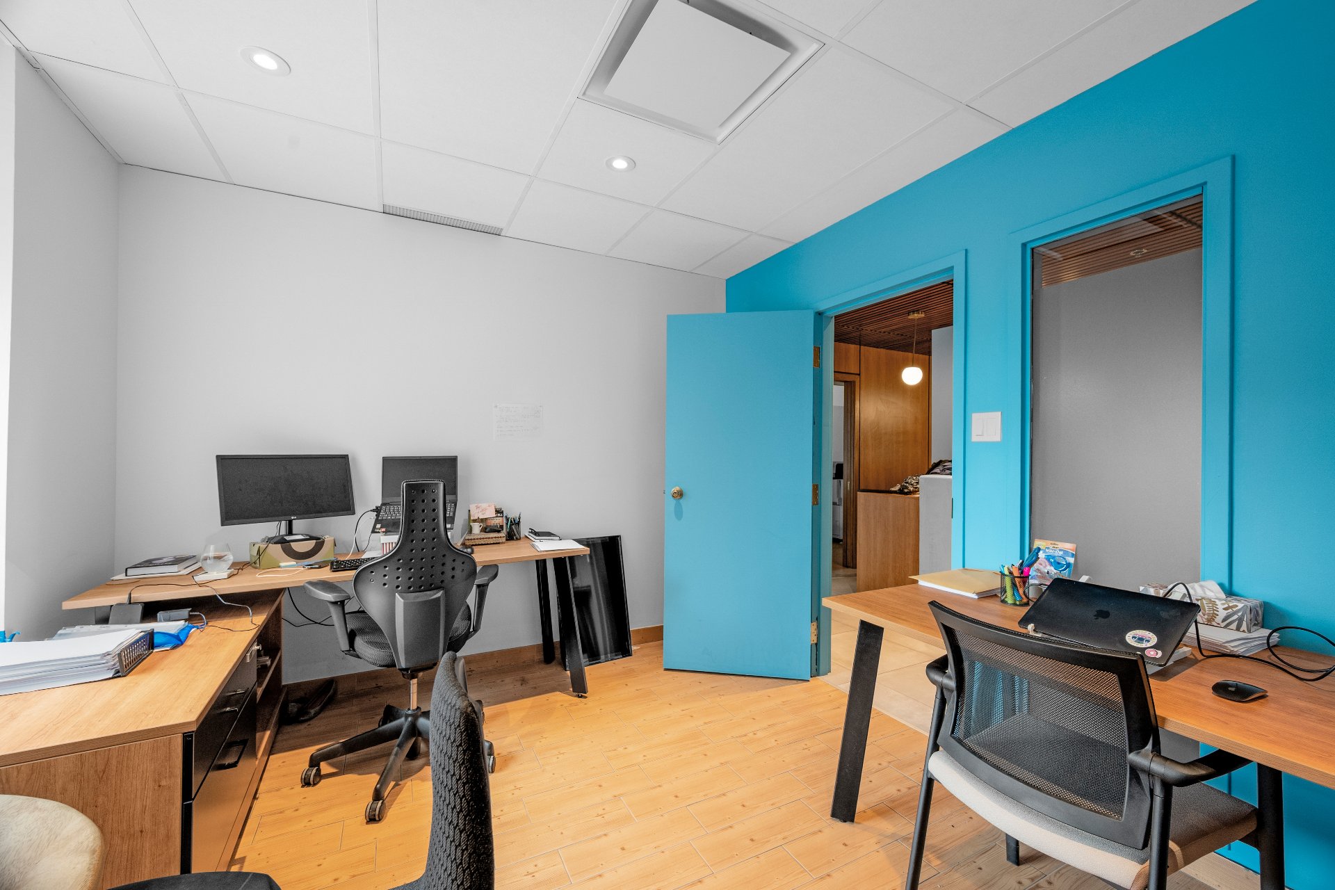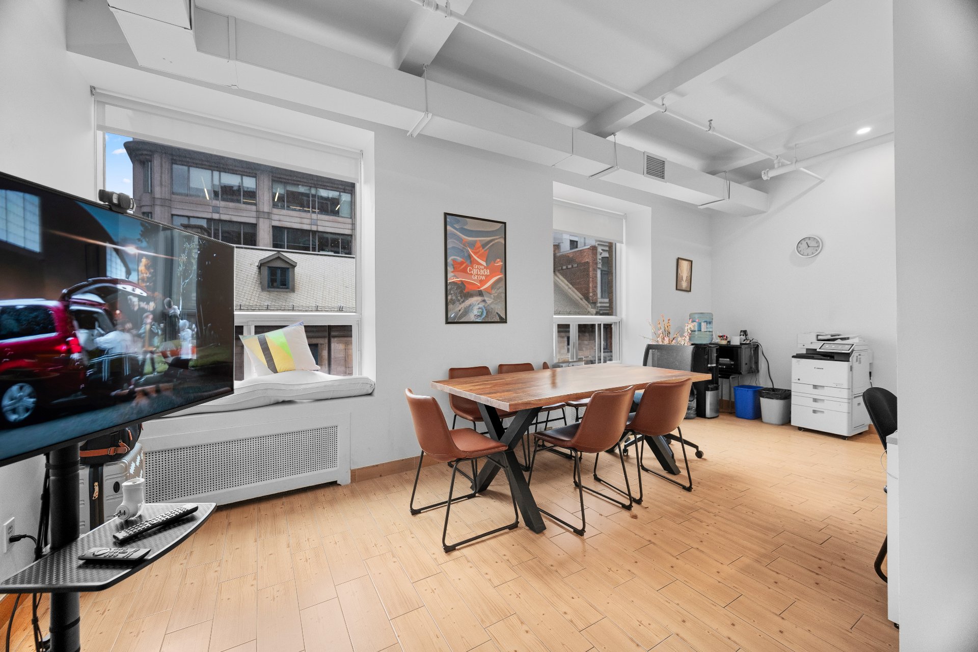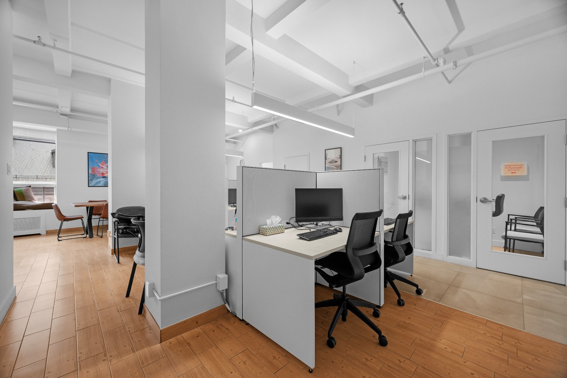 Unit includes 5 closed offices, a large collaborative workspace for 8 people as well as a shared kitchen and conference room. 4 of the closed offices in the unit are rented. The other is reserved for the owner, with reception, a storage room and a printer room. Perfect for lawyers or companies looking for a prime address in the heart of Old Montreal, where the majority of employees are teleworking. 5 min from Place-d'Armes metro station, Palais des Congrès and Viger Station. Enjoy an elegant yet functional environment, just a few steps from the Old Port, cafés, parks and restaurants.
