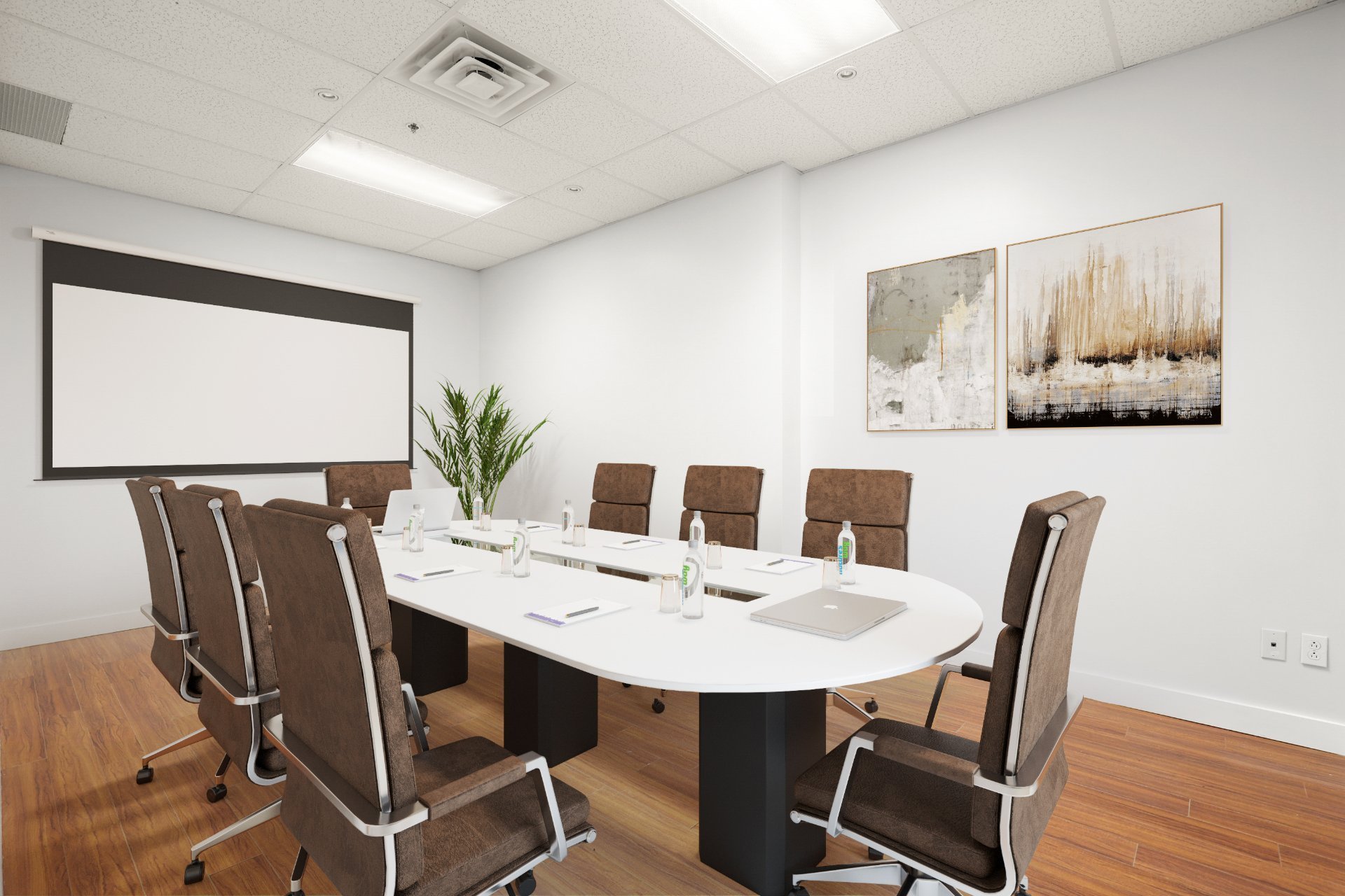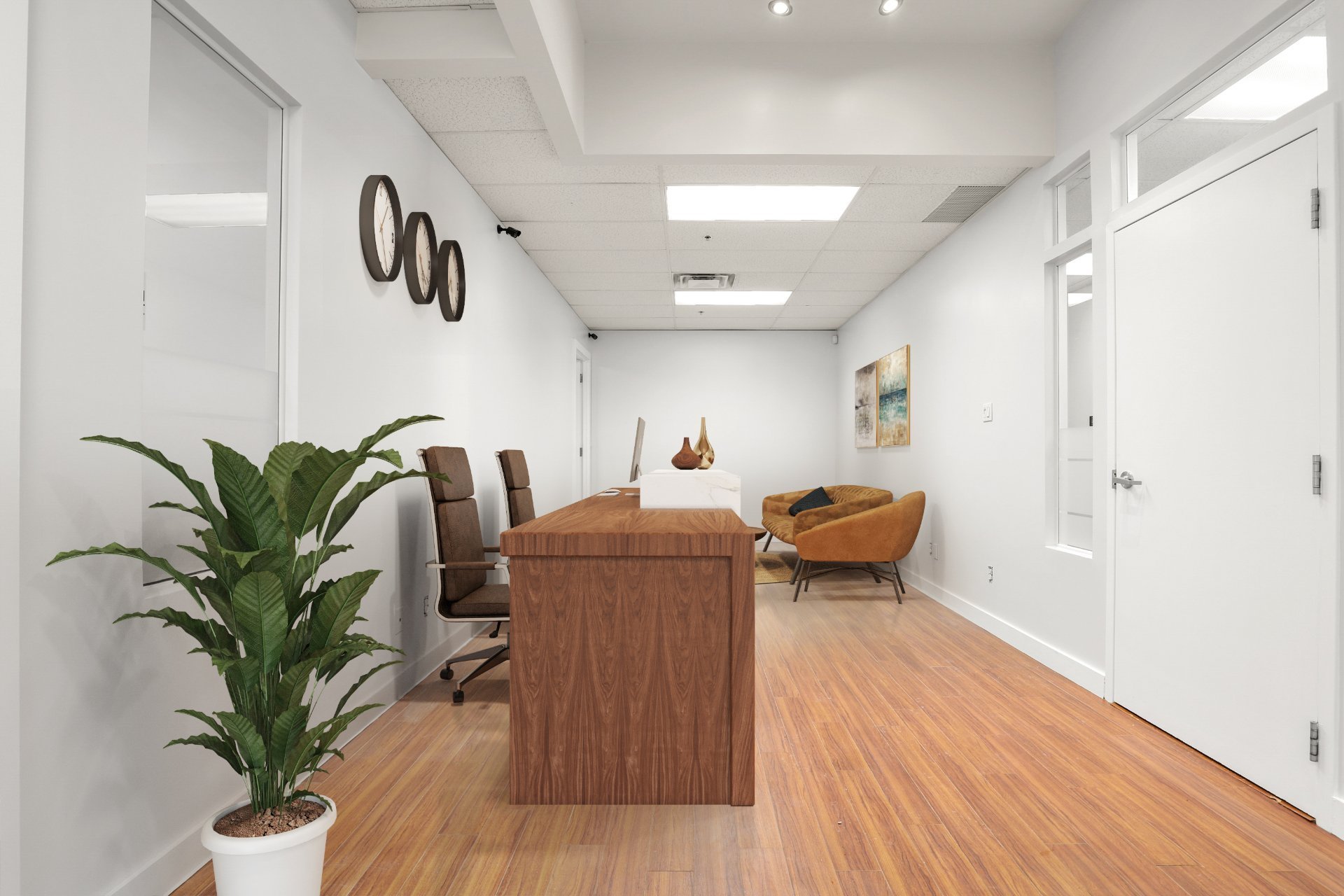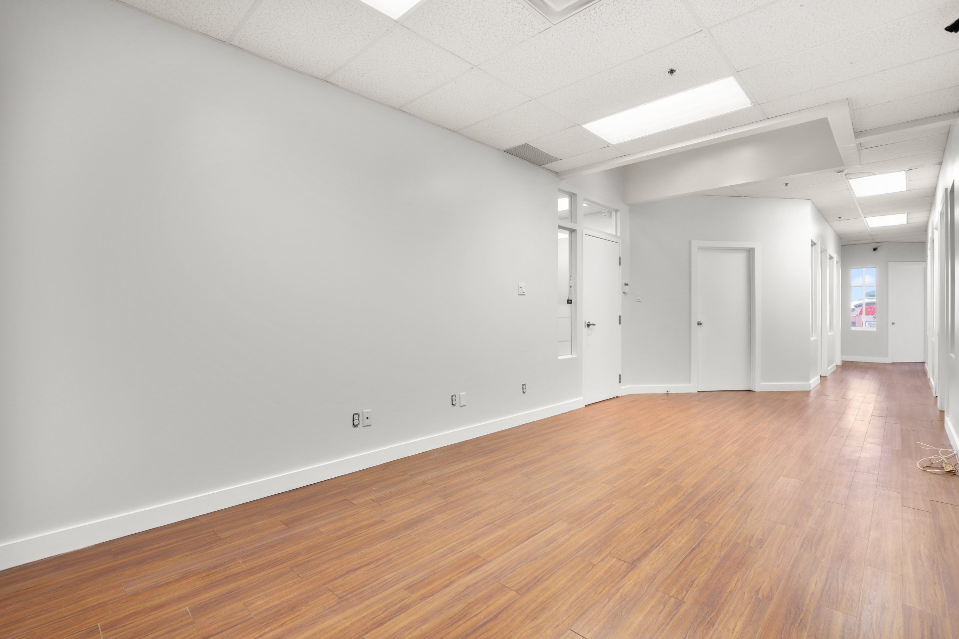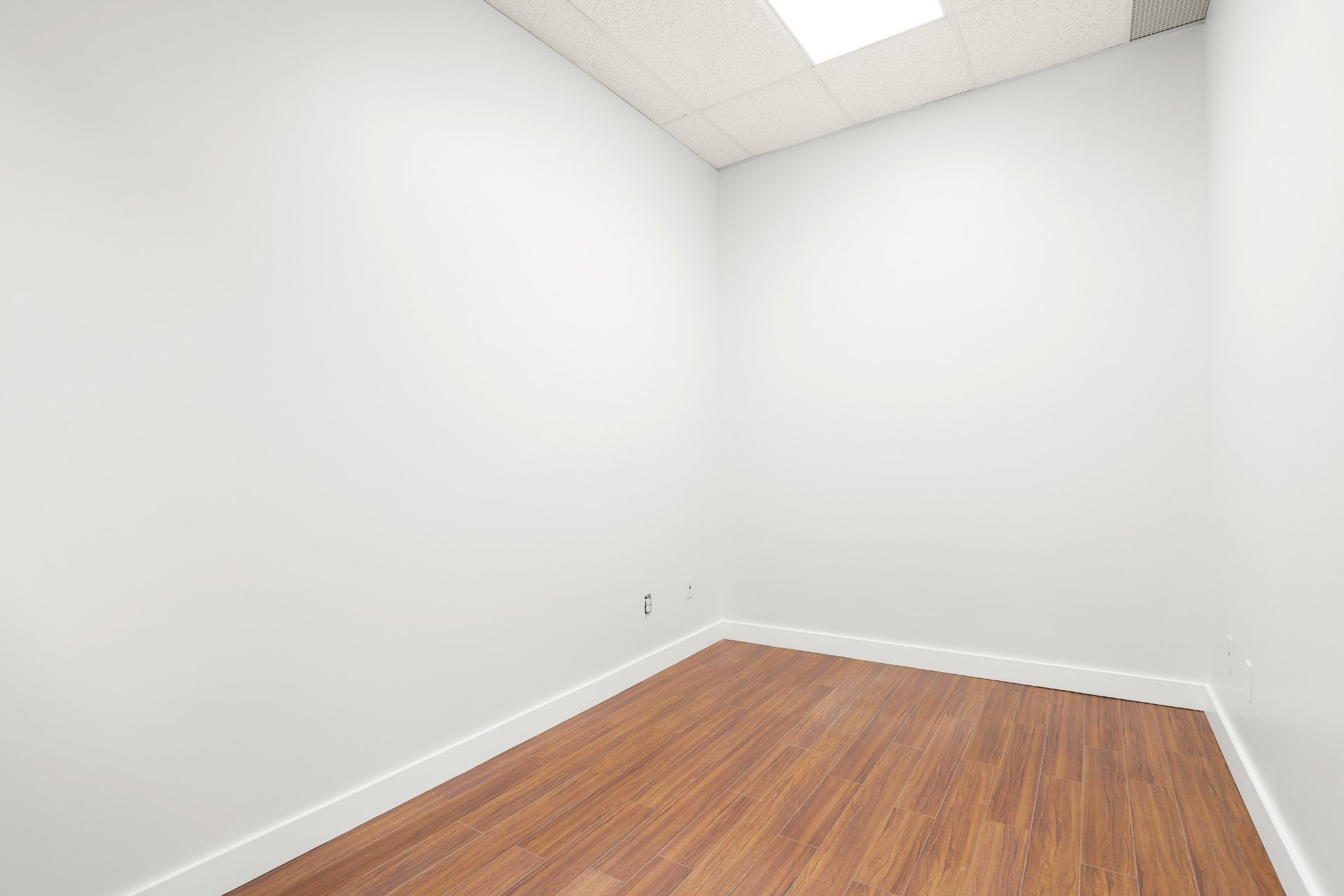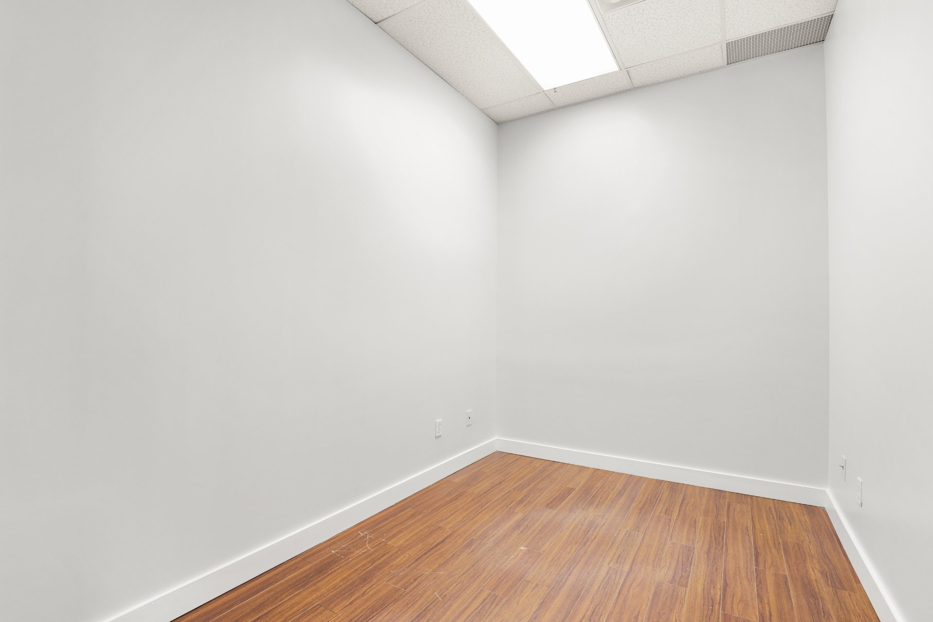 Unit 20.03 includes eight (8) offices, one (1) conference room, and one (1) storage space with doors and locks. It also features one (1) kitchen equipped with a sink built into a granite countertop, a granite wall counter, and wall-mounted cabinets above the sink. Shared restrooms are available on the same floor. The unit comes with two (2) reserved parking spaces, and visitor parking is also available. Hydro-Québec fees (heating and electricity), snow removal, and maintenance of common areas are included in the rent.