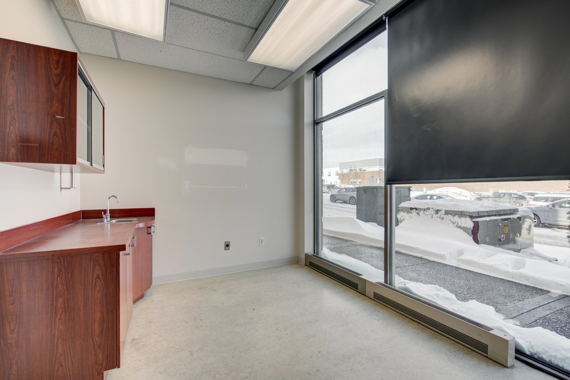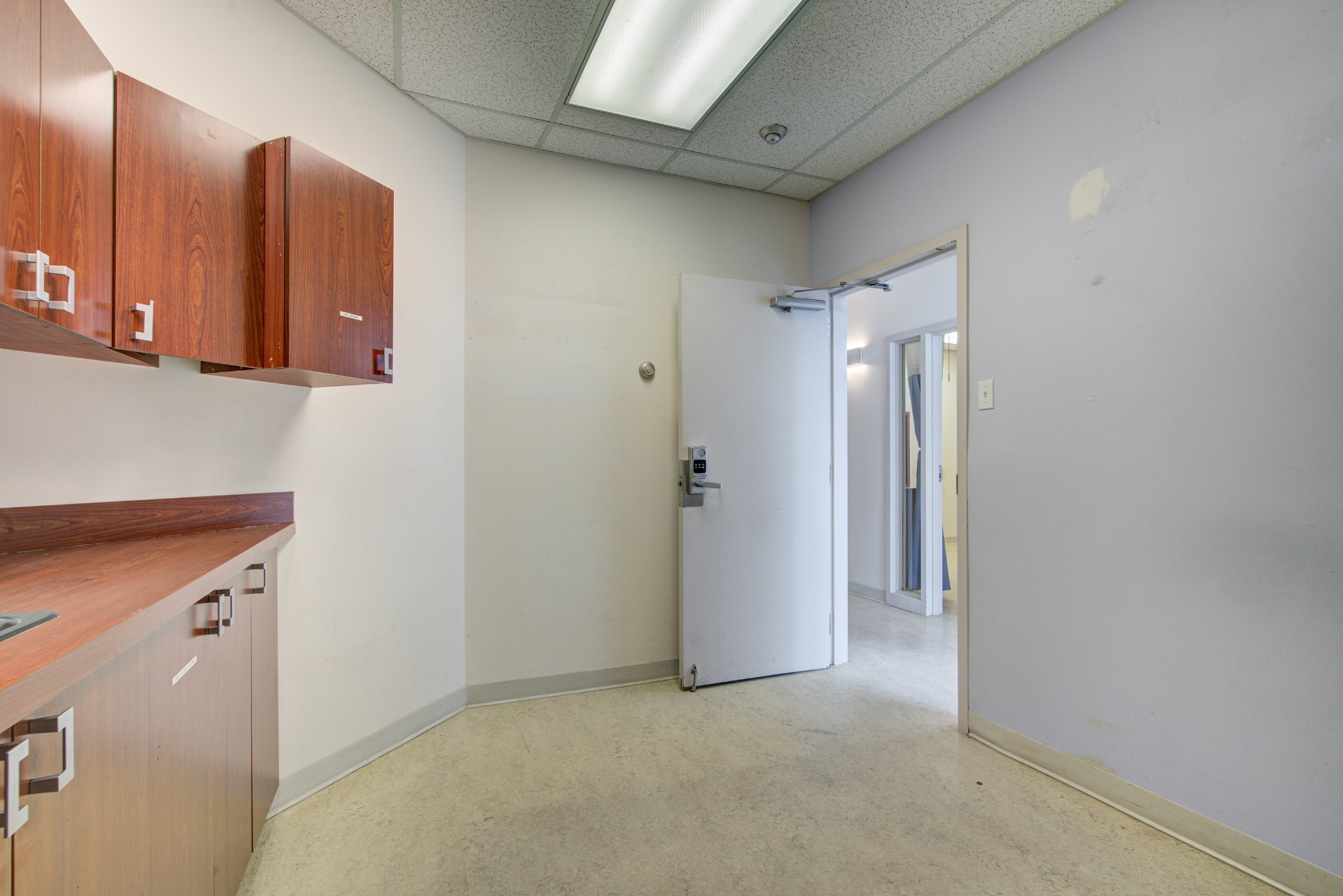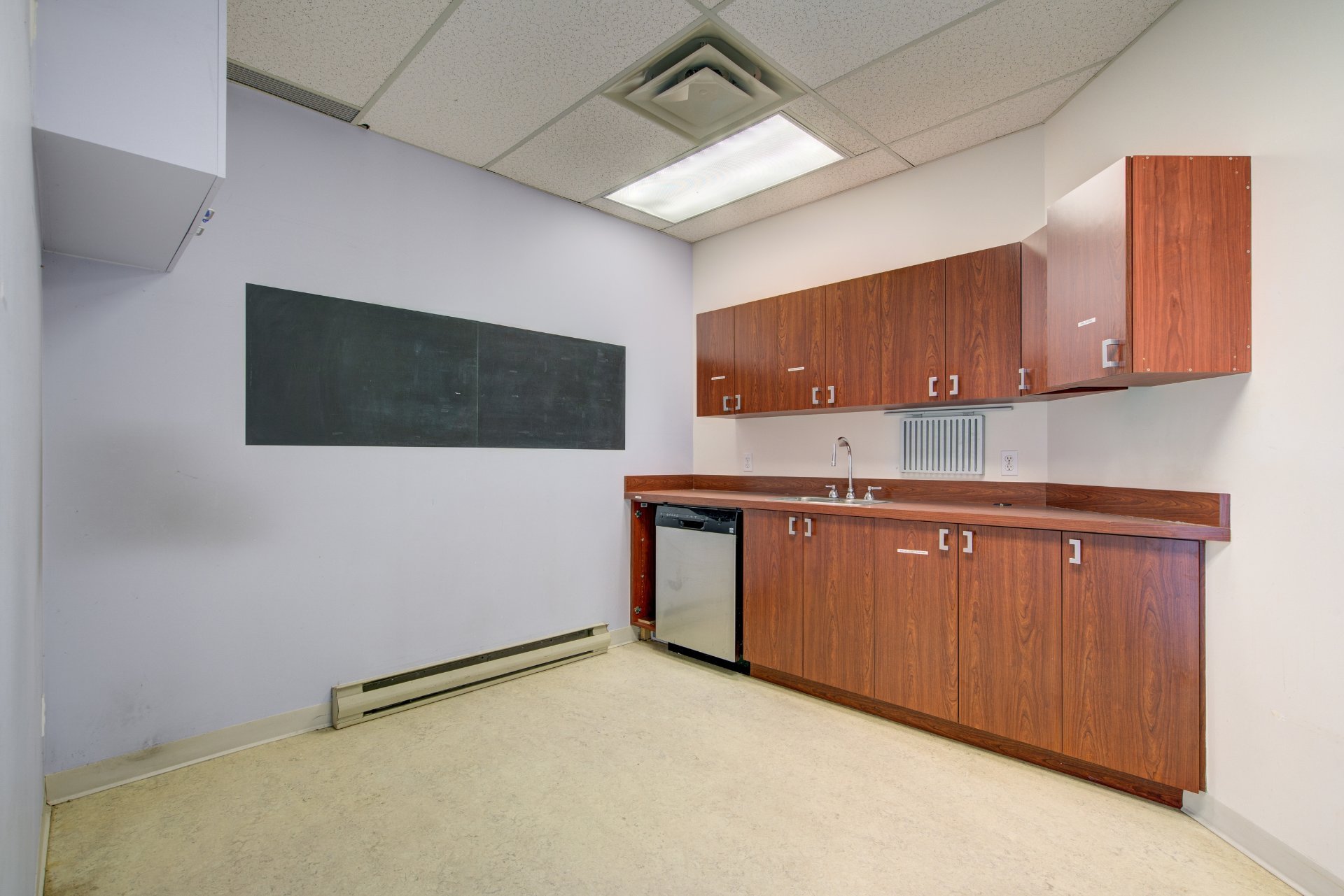 place. Fluorescent lighting is installed throughout. The