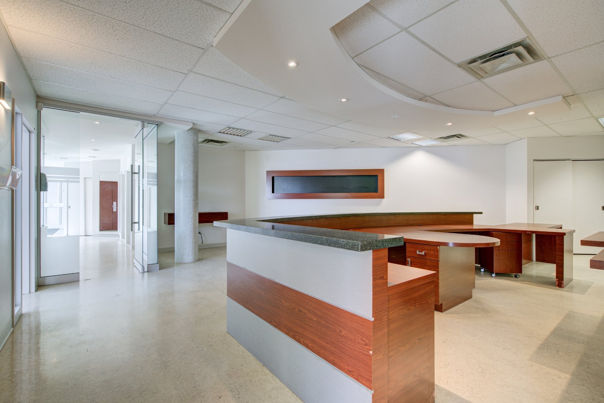This office space for rent situated on the ground-floor in a well-maintained building at the heart of a revitalizing neighborhood. Two separate entrances with direct parking access. Currently set up as a clinic, easily adaptable. Electric heating, air conditioning, fluorescent lighting. Electrical system: 120 V (distribution) and 347 V (lighting/heating). Large windows provide abundant natural light. Wheelchair accessible. STM bus stop in front, private or street parking available, plus Communauto spaces and charging stations on-site. Schedule a visit today! See ADDENDUM.