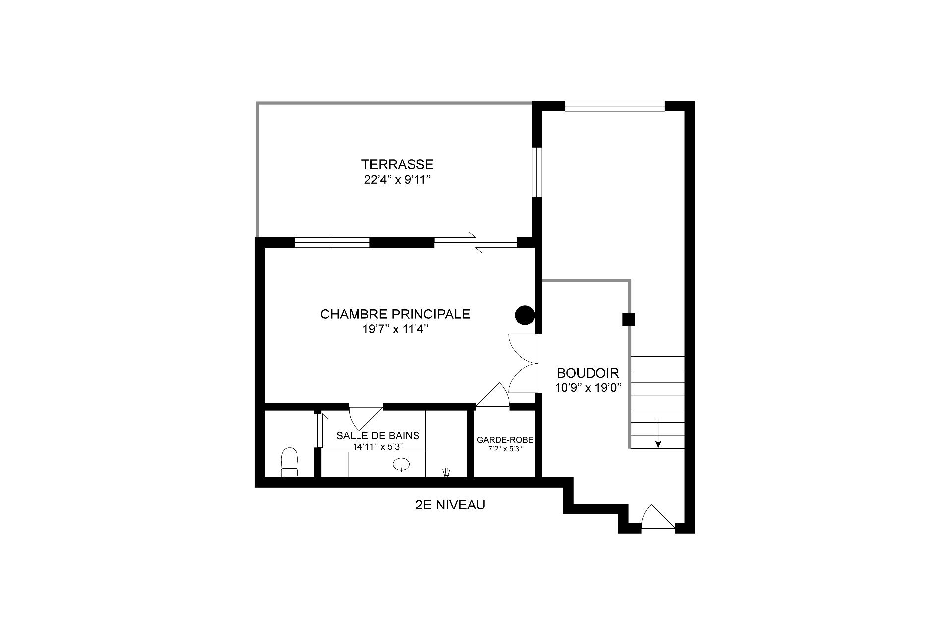 ** PENTHOUSE DE LUXE - UNITÉ DE COIN SUR 2 ÉTAGES - VUE DÉGAGÉE ** Aire ouverte, plancher de bois, plafonds 20p au salon, fenestration impressionnante, foyer électrique Napoléon. Magnifique cellier à la salle à manger, cuisine avec comptoir de granit, électroménagers Bertazzoni inclus. 2 chambres à coucher, chambre principale au 2e étage avec walk-in et salle de bain privée ainsi qu'un superbe boudoir. 2 balcons, 2 espaces garage, 3 rangements. À 2 mins du REM (sans sortir à l'extérieur). Plusieurs aires communes : piscines intérieure/extérieure, terrasse sur le toit, gym, salle commune, skylounge, spa/sauna et +. Suite addenda