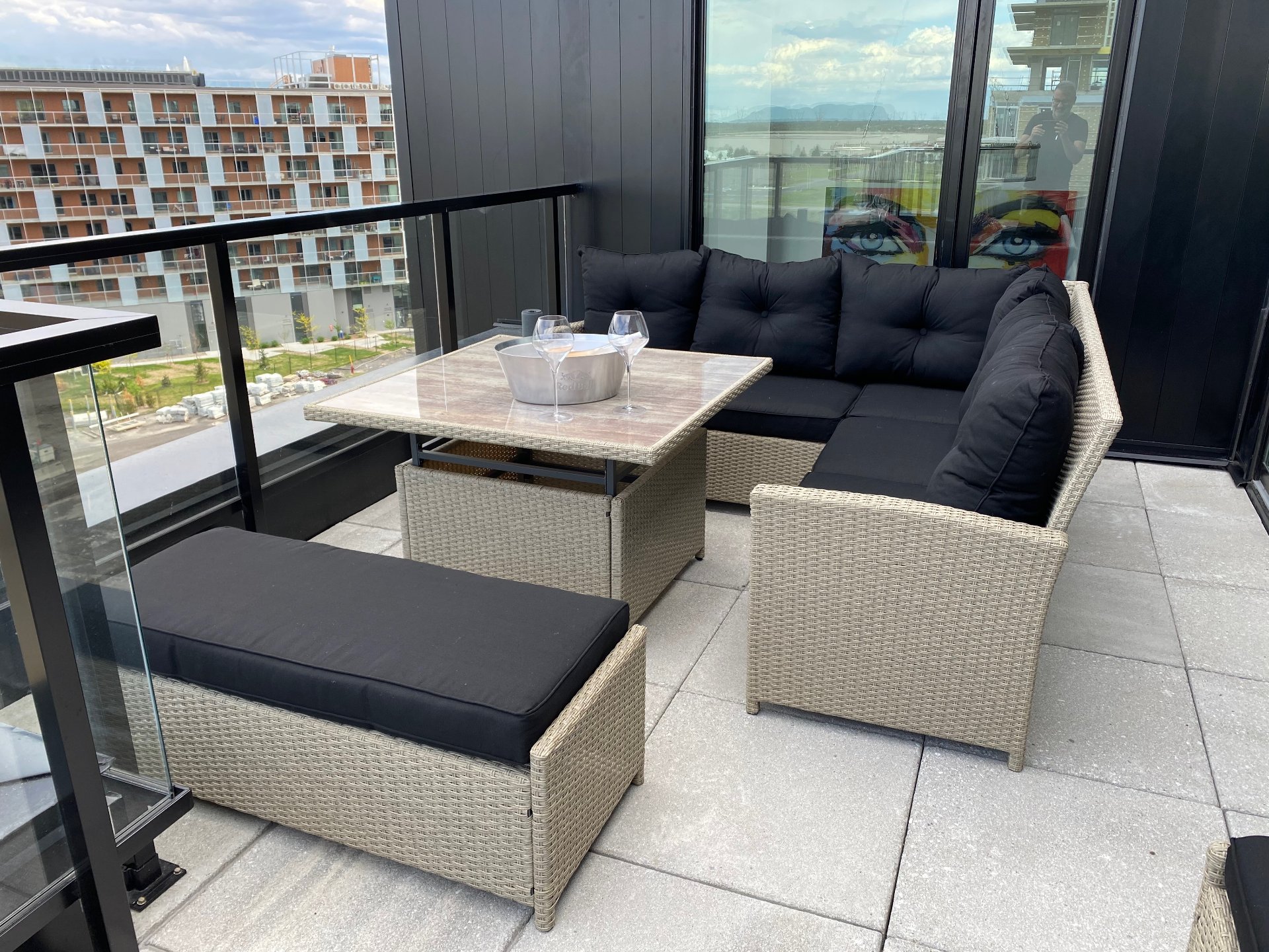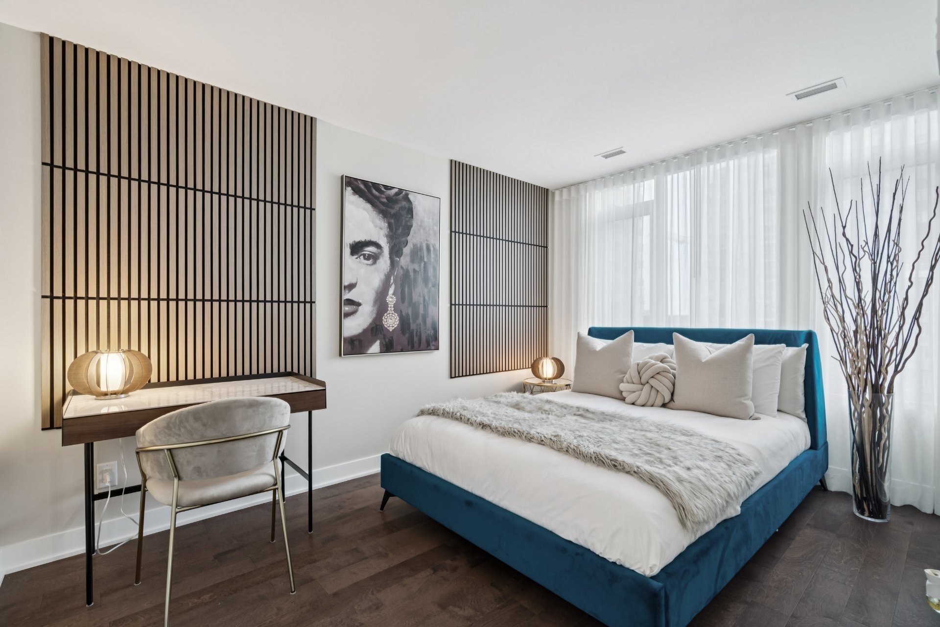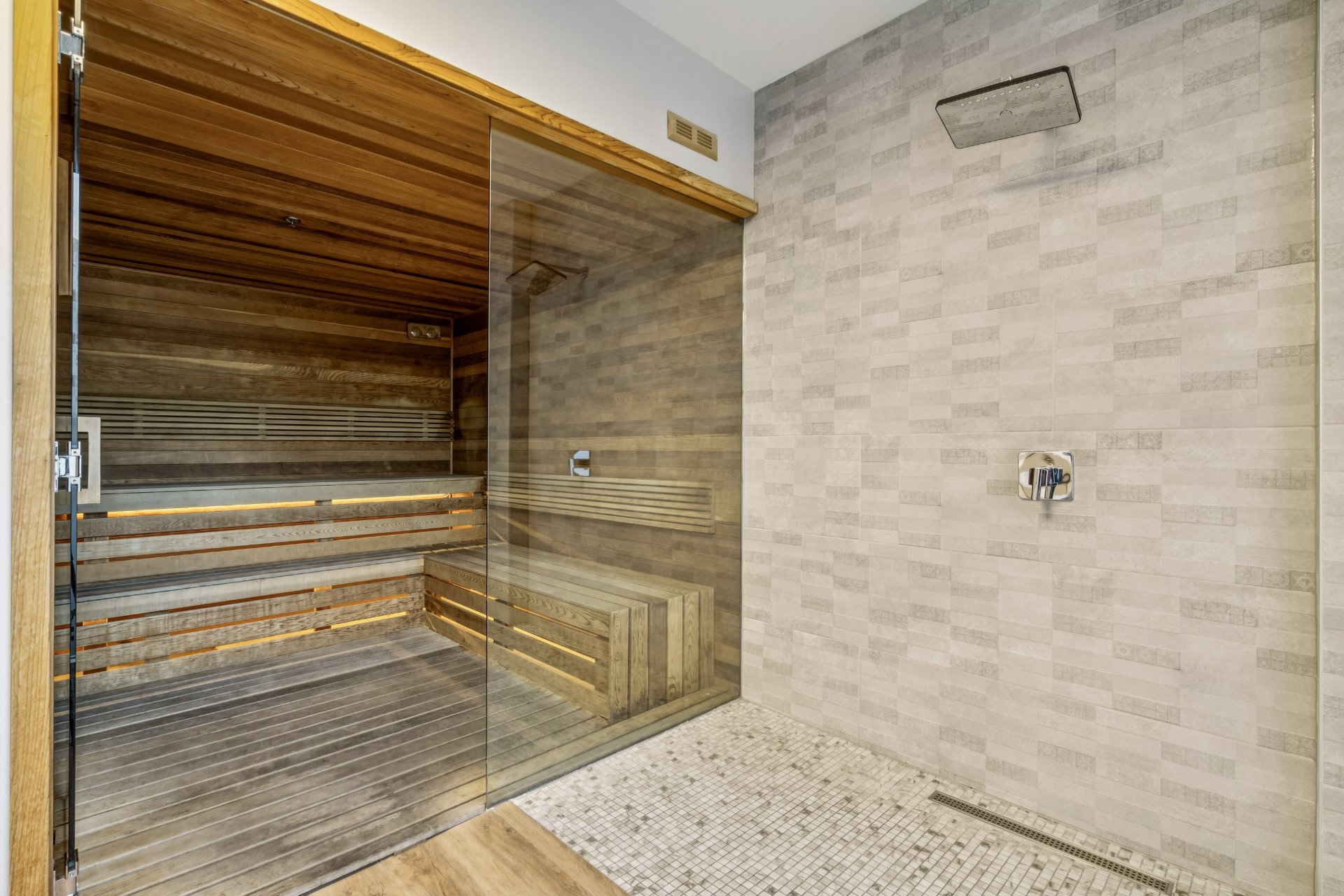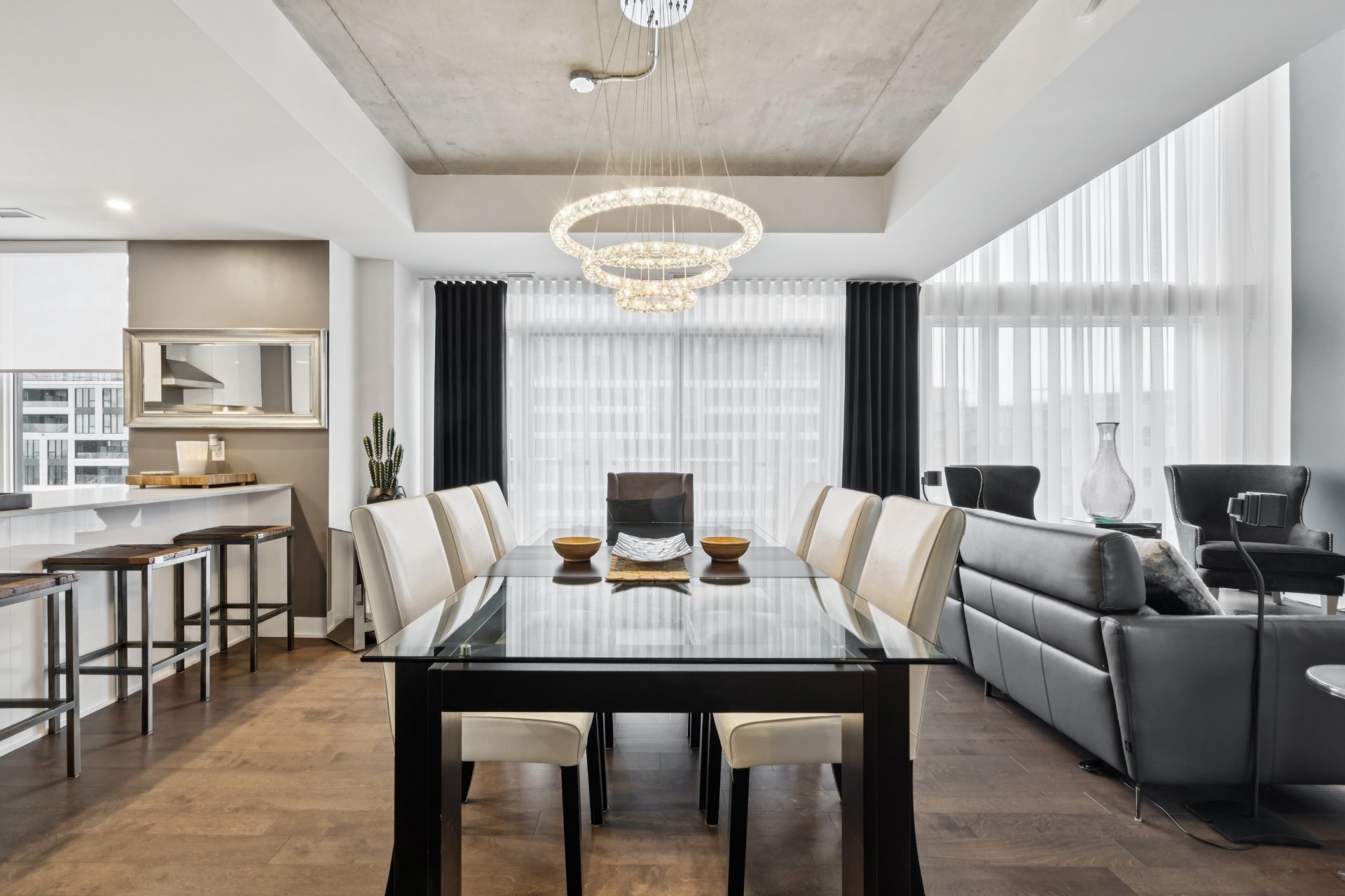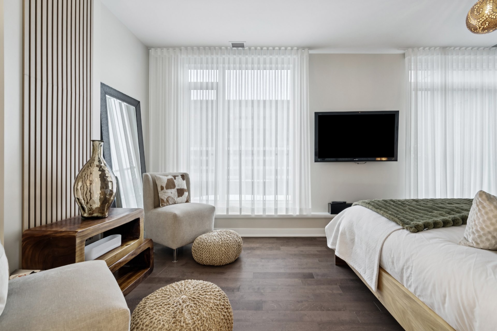 ** PENTHOUSE DE LUXE - UNITÉ DE COIN SUR 2 ÉTAGES - VUE DÉGAGÉE ** Aire ouverte, plancher de bois, plafonds 20p au salon, fenestration impressionnante, foyer électrique Napoléon. Magnifique cellier à la salle à manger, cuisine avec comptoir de granit, électroménagers Bertazzoni inclus. 2 chambres à coucher, chambre principale au 2e étage avec walk-in et salle de bain privée ainsi qu'un superbe boudoir. 2 balcons, 2 espaces garage, 3 rangements. À 2 mins du REM (sans sortir à l'extérieur). Plusieurs aires communes : piscines intérieure/extérieure, terrasse sur le toit, gym, salle commune, skylounge, spa/sauna et +. Suite addenda
