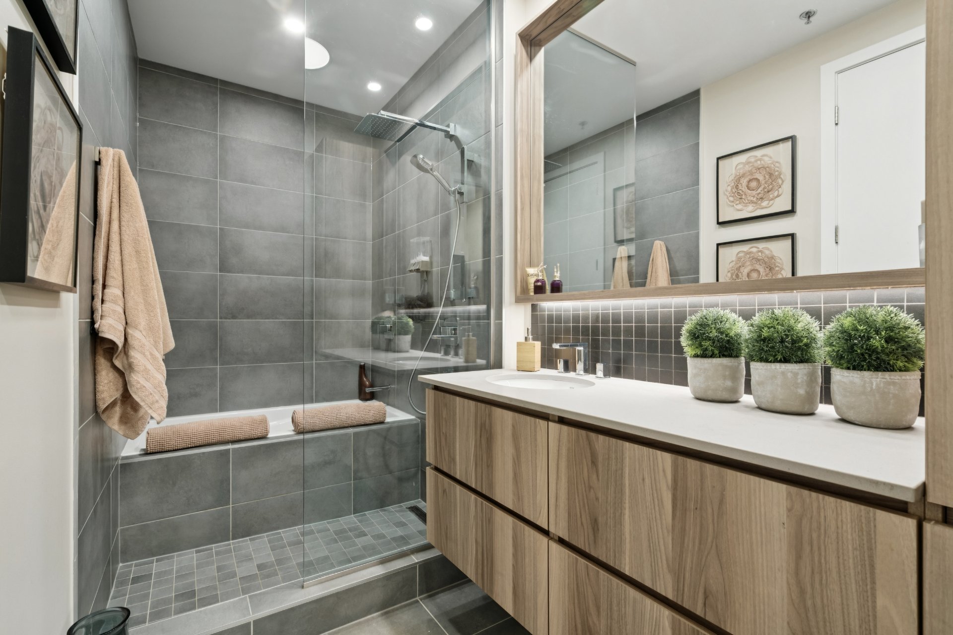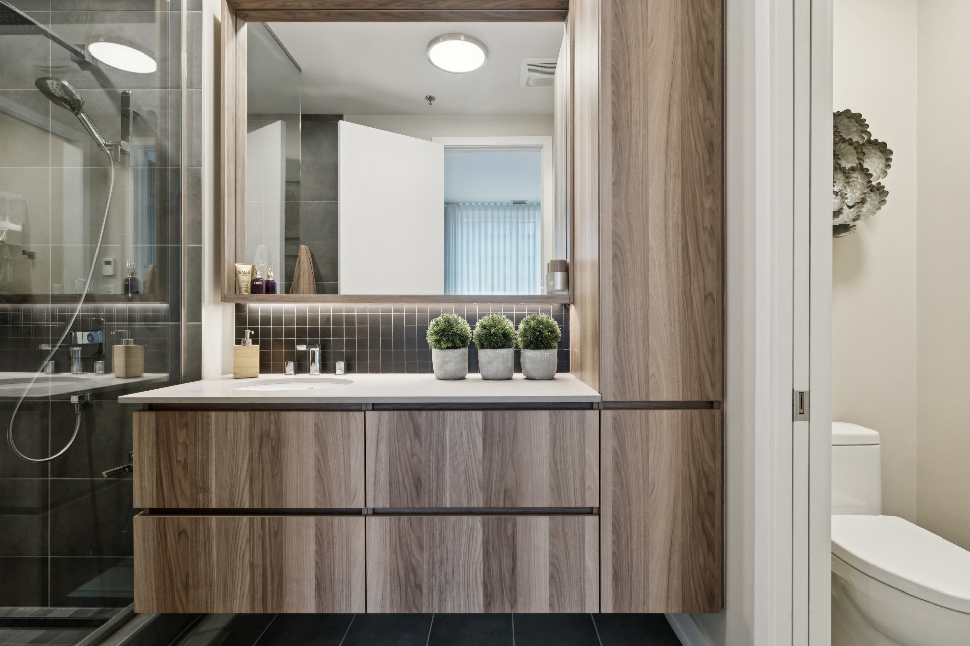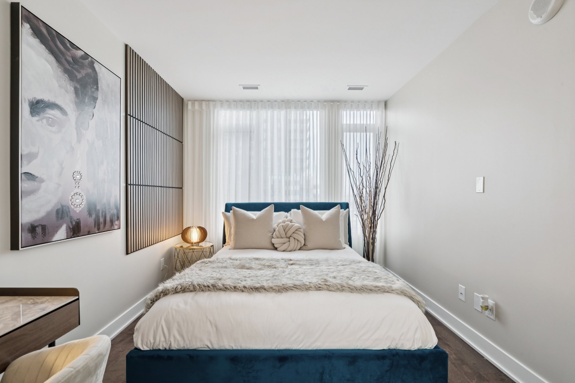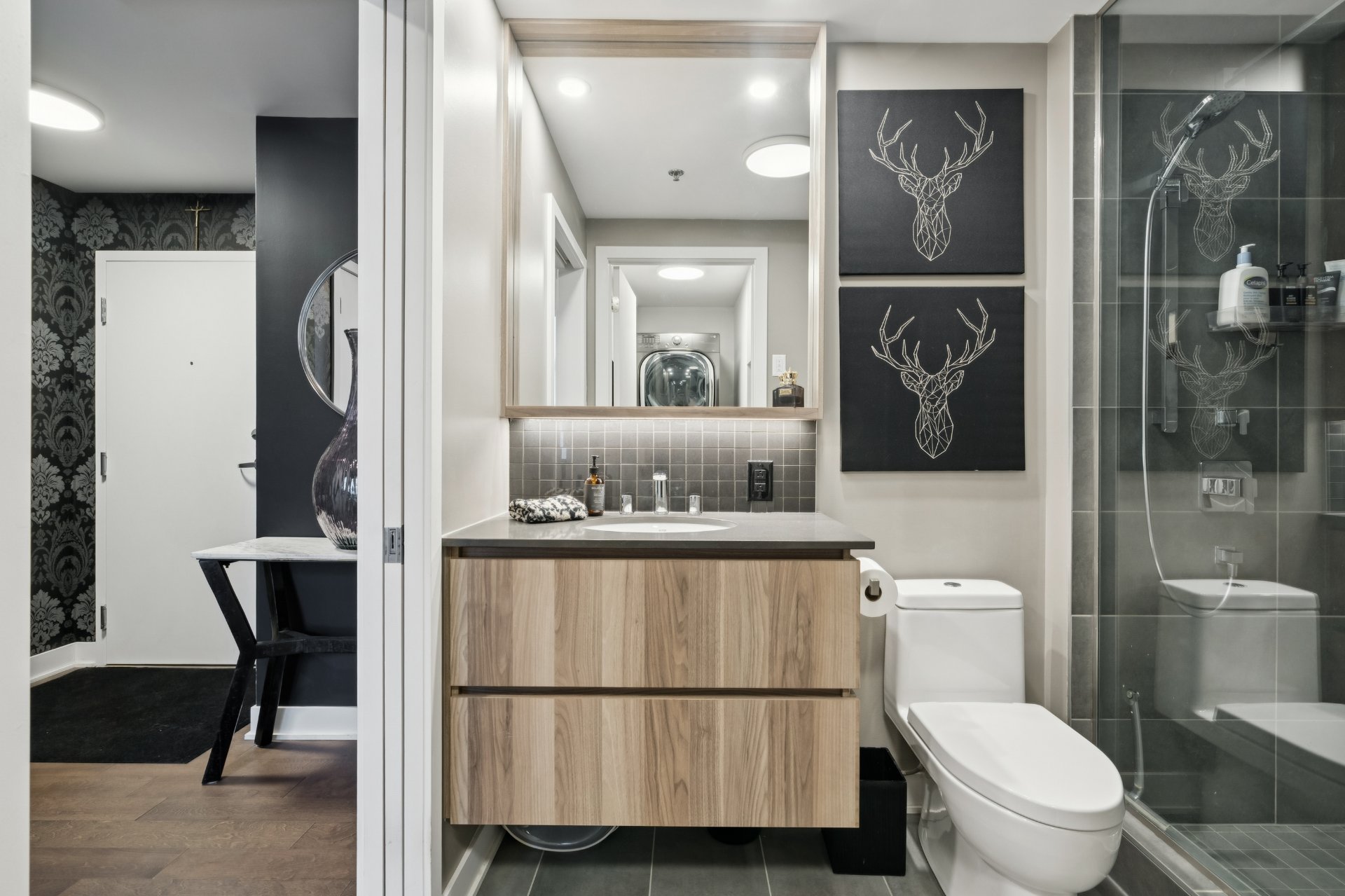 - Chambre avec walk-in 9' x 6,3', plafond finition béton et