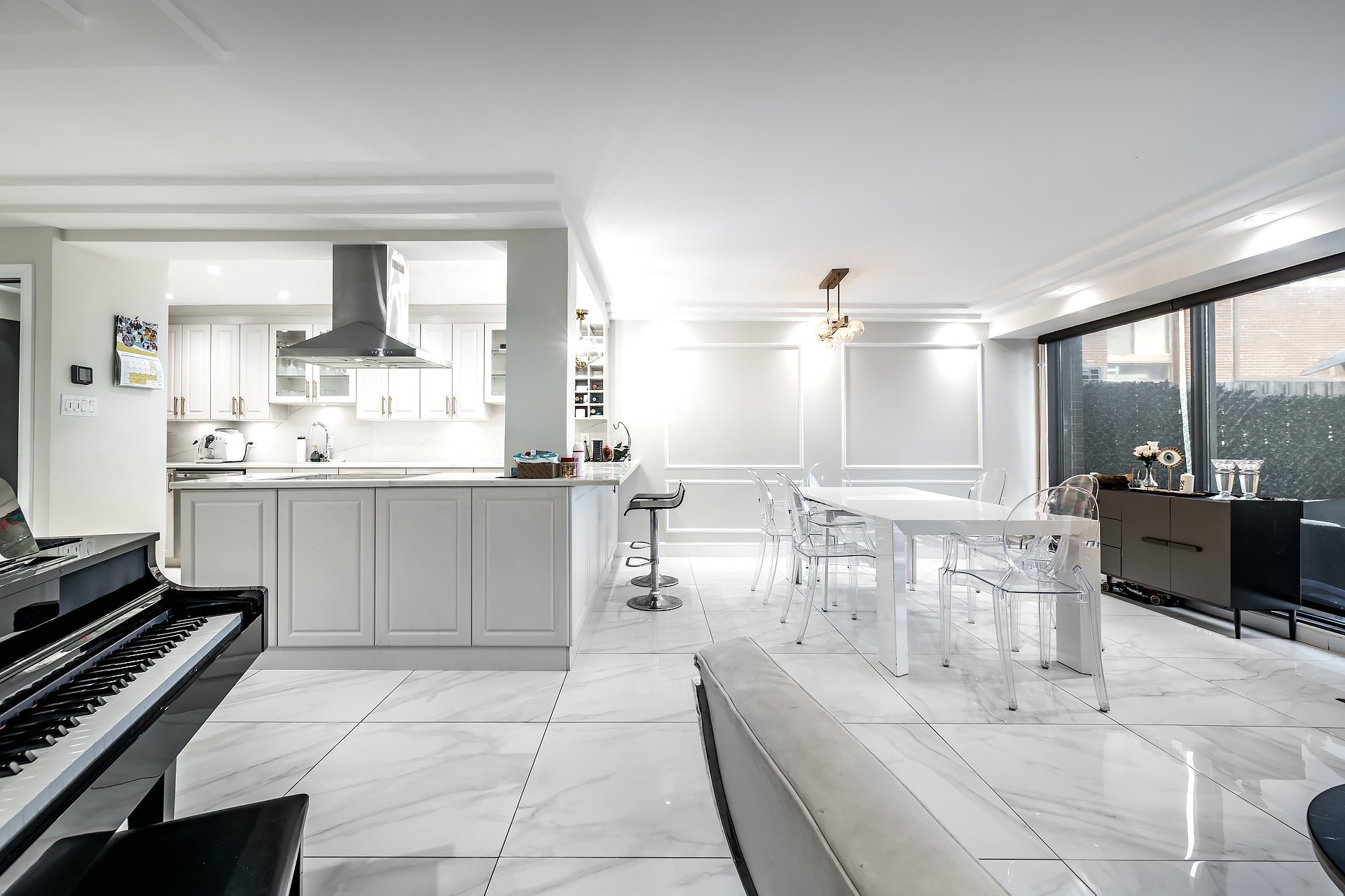 Washer, dishwasher, dryer, light fixture, blinds and curtains, refrigerator, oven.
