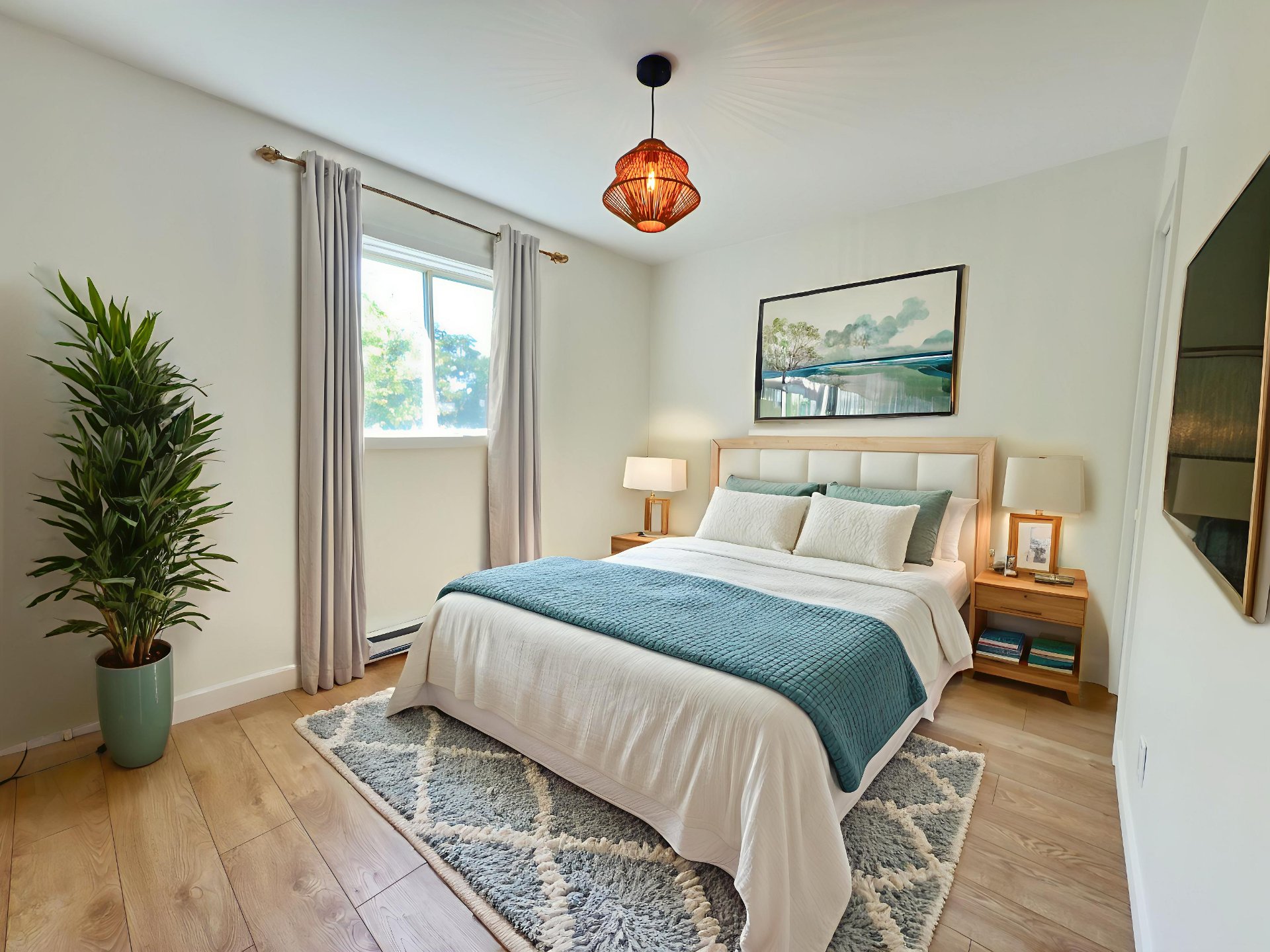 Magnifique condo entièrement rénové! Offrant 2 chambres à coucher spacieuses, une salle de bain avec plancher chauffant, une cuisine moderne et fonctionnelle ainsi que 2 places de stationnement. Emplacement idéal, à quelques minutes de l'autoroute 10, des écoles, garderies, pistes cyclables, transport en commun et de nombreux services. Une propriété clé en main alliant confort et praticité!