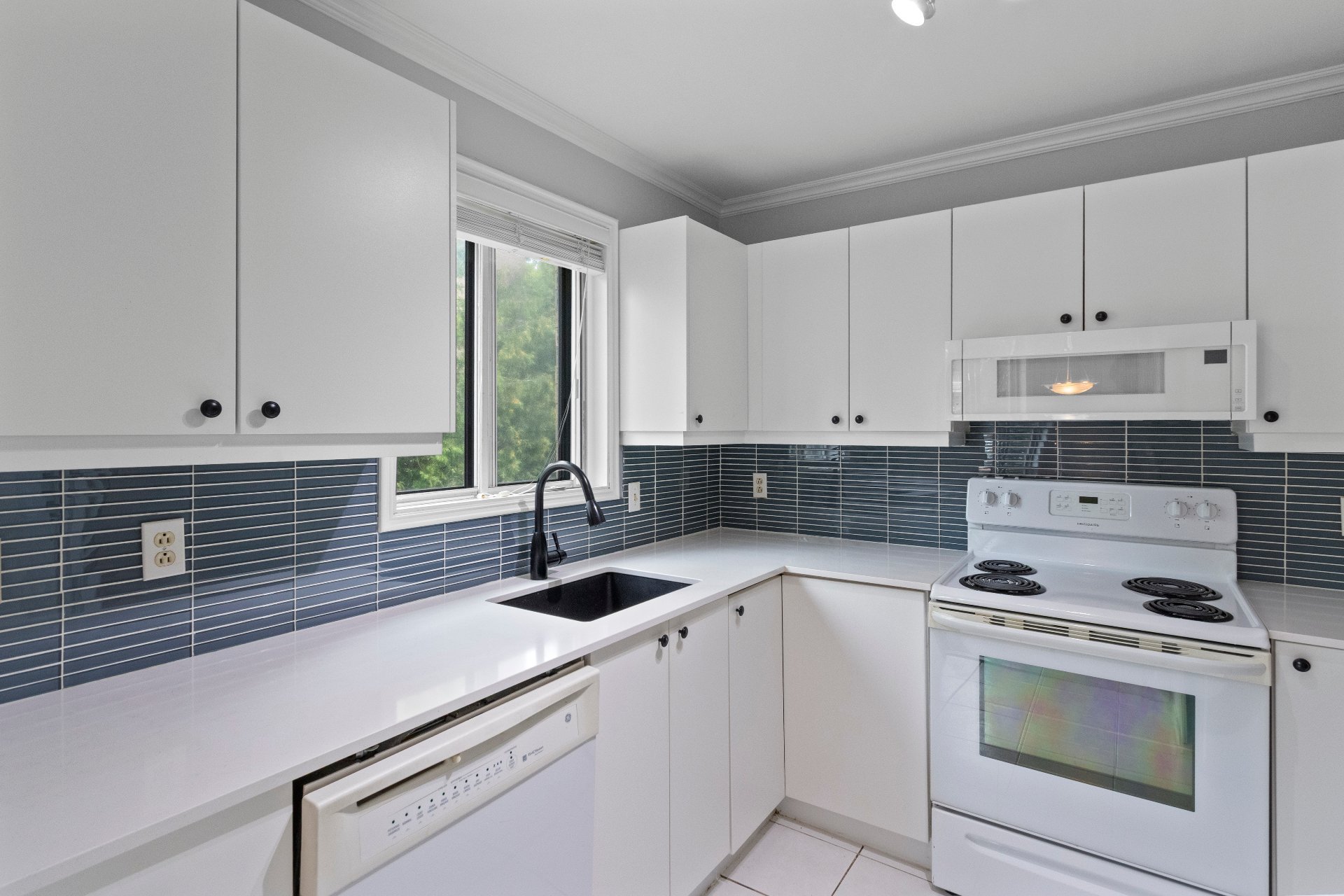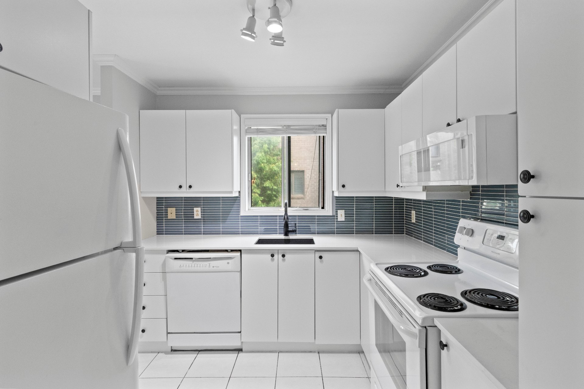 Four, micro-onde, réfrigérateur, lave-vaisselle, laveuse/sécheuse. Luminaires et stores tel quels
