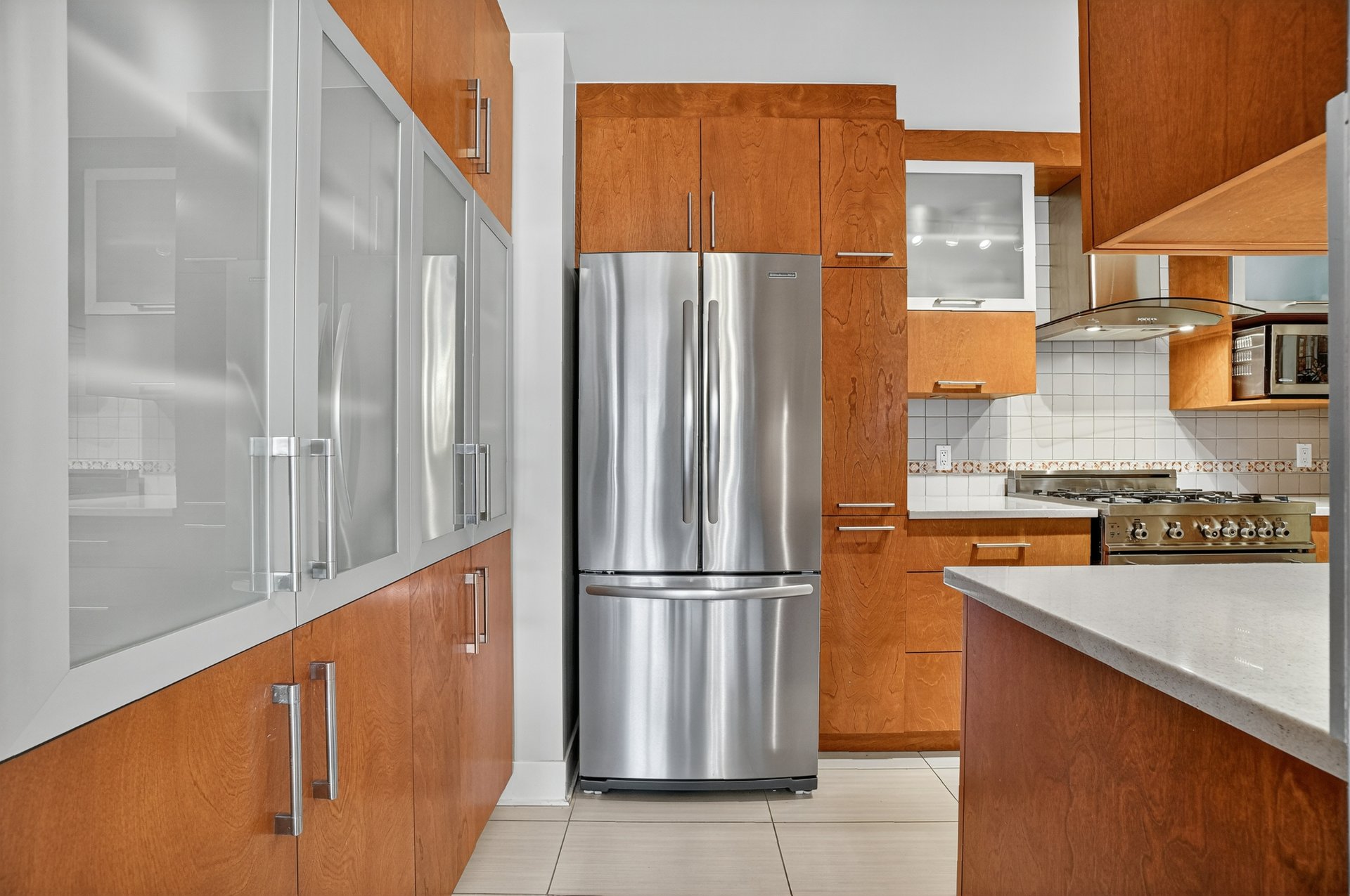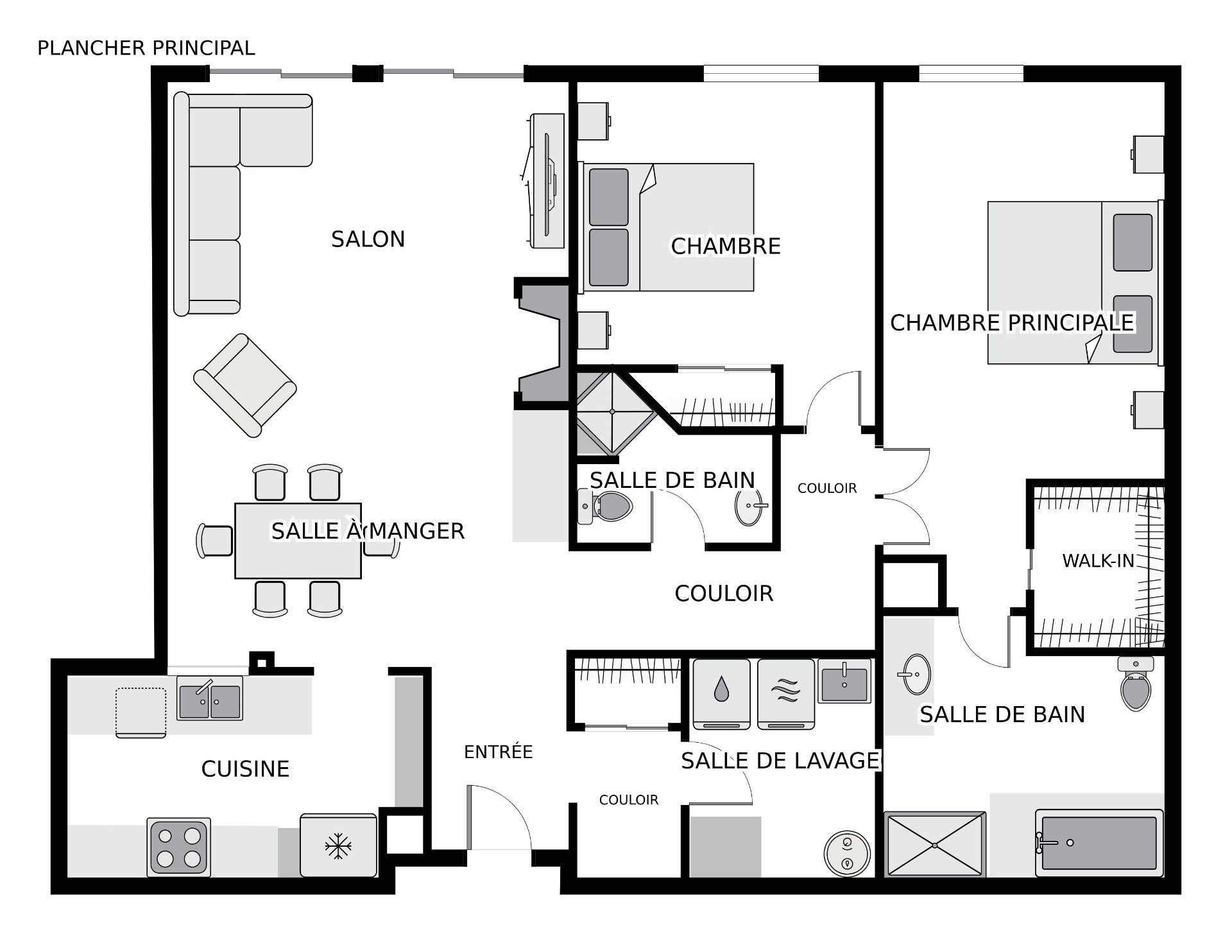 Réfrigérateur, cuisinière au gaz, lave-vaisselle, cellier à vin, meuble sur mesure dans le salon incluant le meuble pour télévision, stores (incluant électriques dans le salon), rideaux, persiennes en aluminium, lumin...
