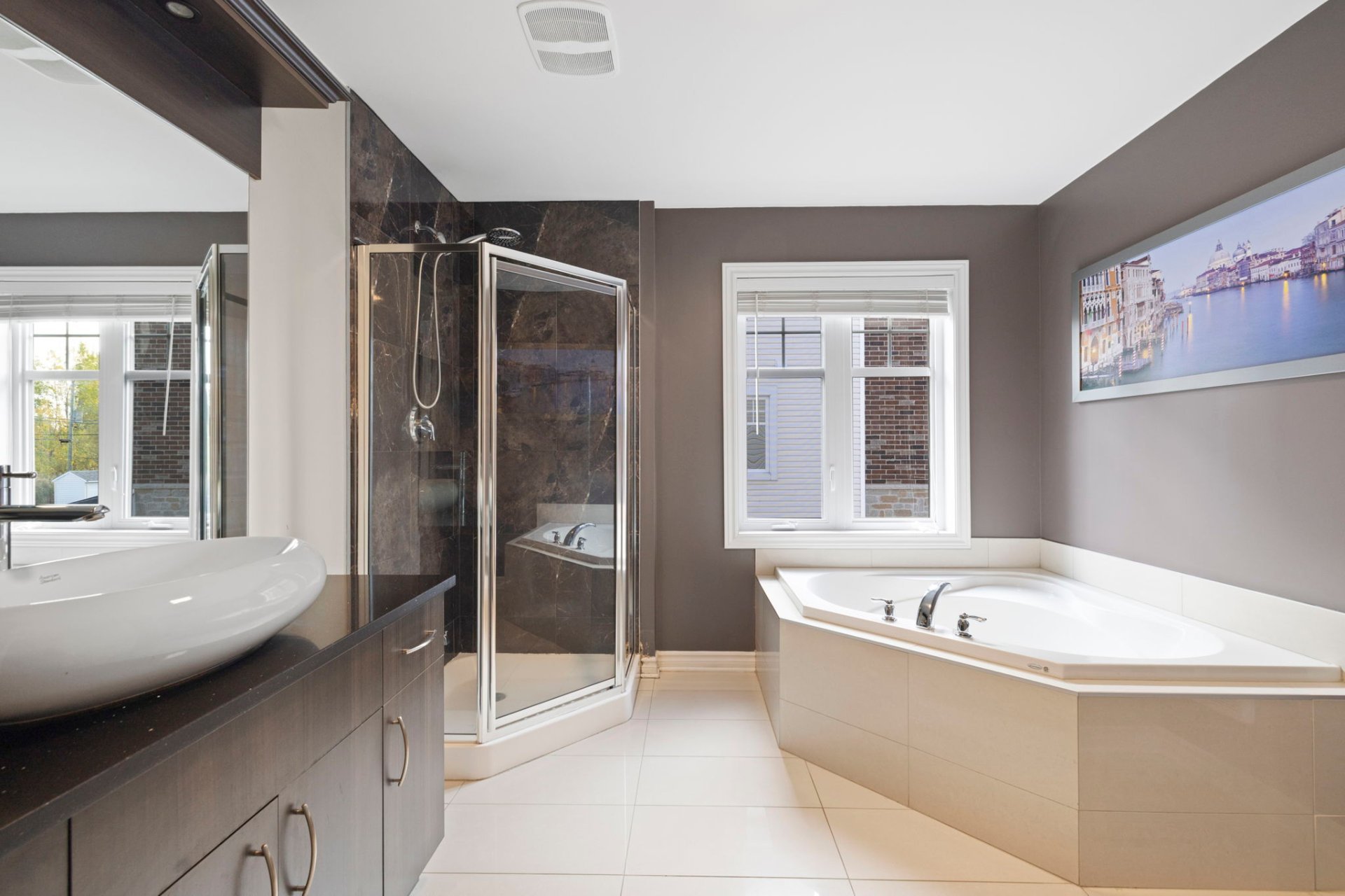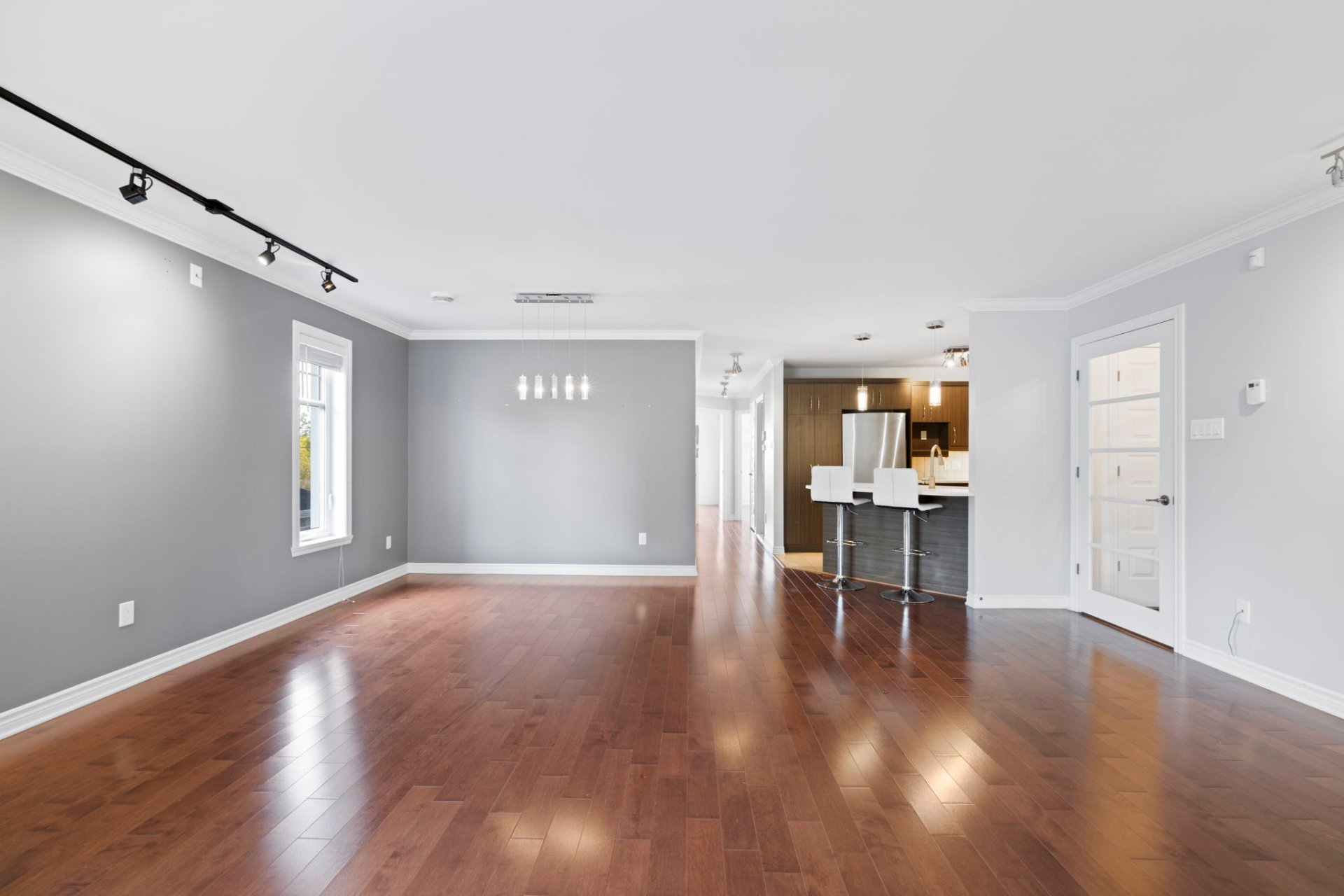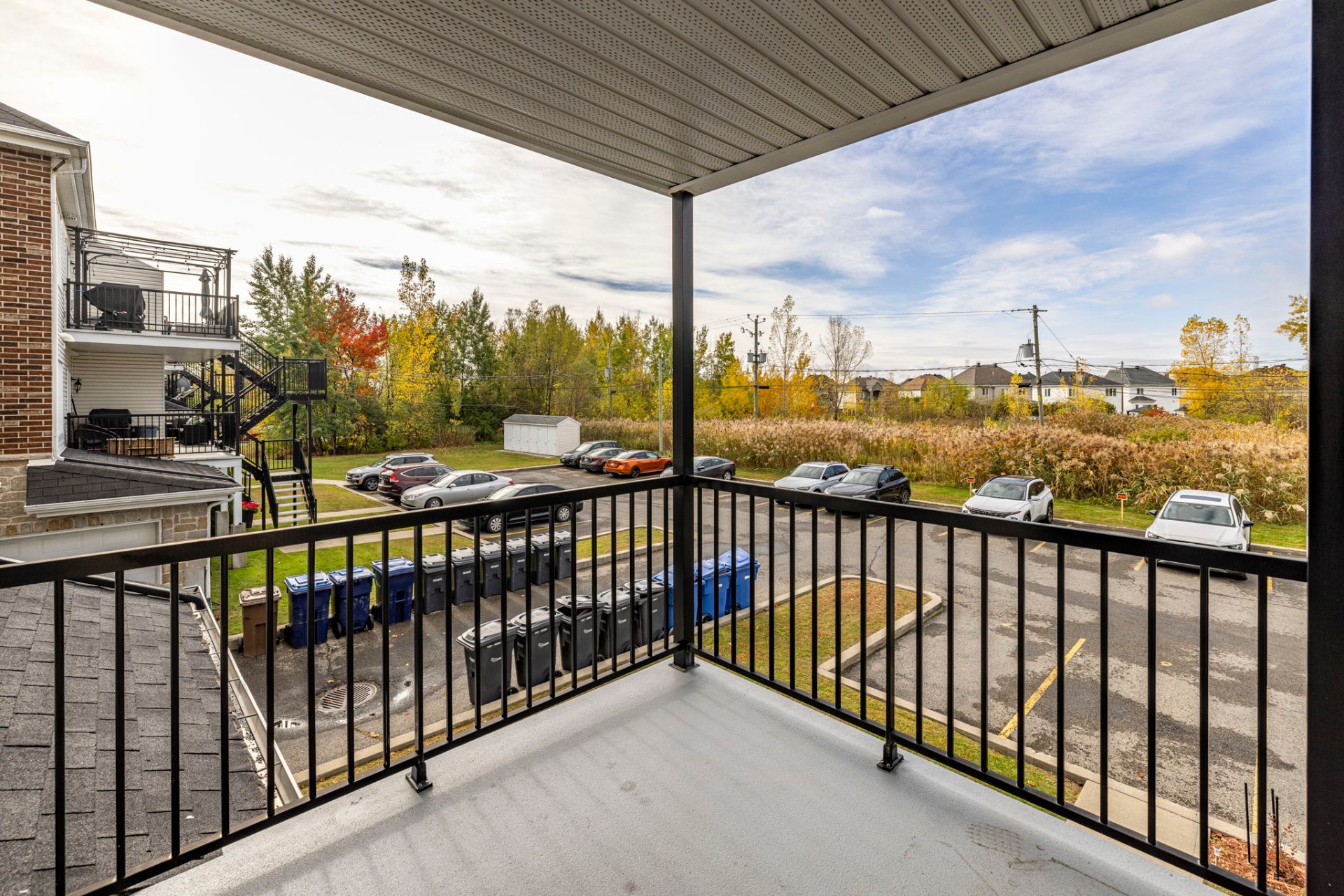 Superbe condo alliant confort, luminosité et tranquillité. Situé au 2e étage d'un immeuble élégant, il offre une aire ouverte avec salon doté d'un foyer au gaz, salle à manger spacieuse et cuisine moderne avec armoires pleine hauteur et grand comptoir-lunch. Deux chambres lumineuses, salle de bain complète avec douche et bain podium, balcon couvert, garage avec un stationnement. L'immeuble bénéficie d'un système de caméras de surveillance assurant sécurité et paix d'esprit. Près des parcs, écoles et autoroutes 13/440.