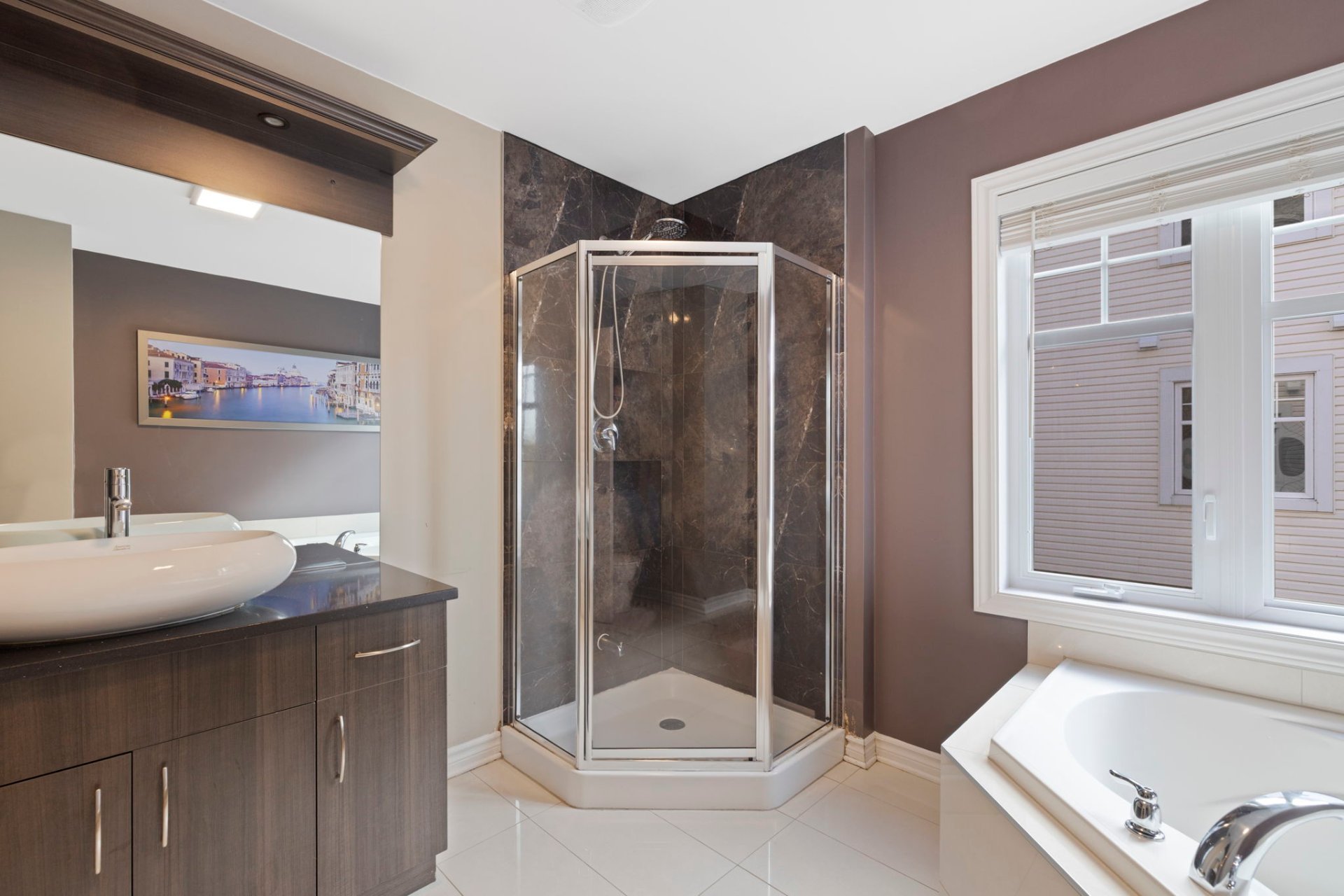 et douche séparée, espace laveuse-sécheuse fermé. Un