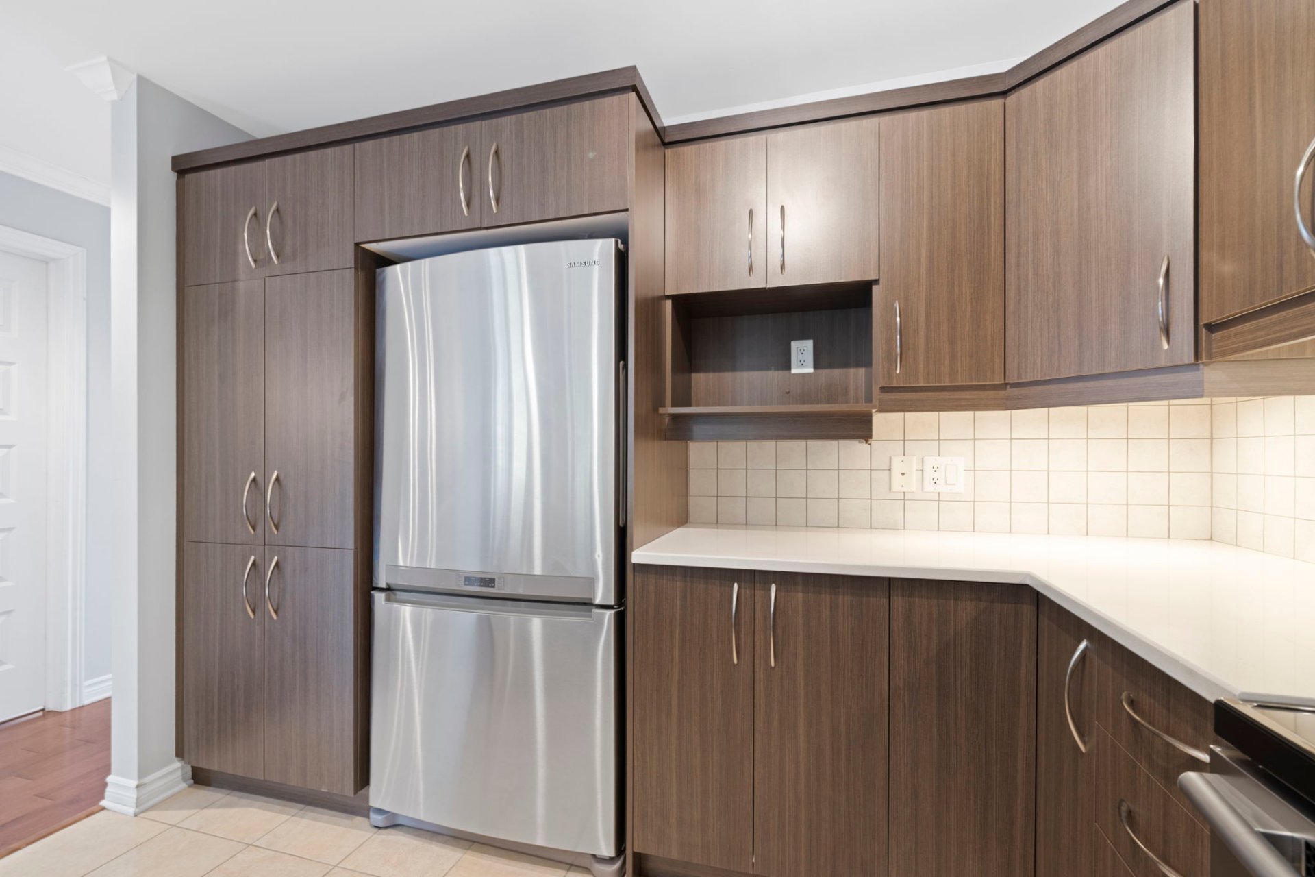 spacieuse et cuisine moderne à armoires pleine hauteur.