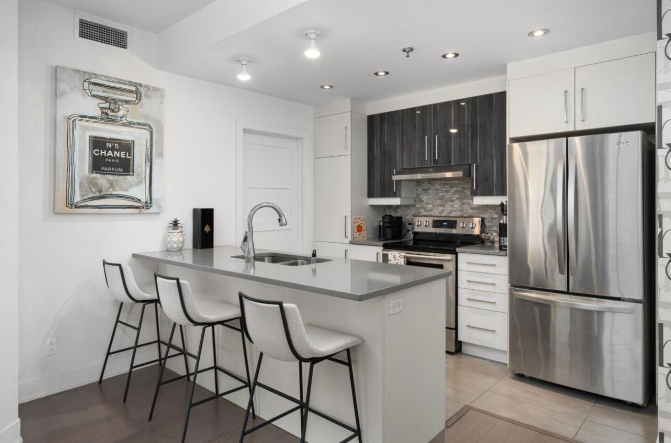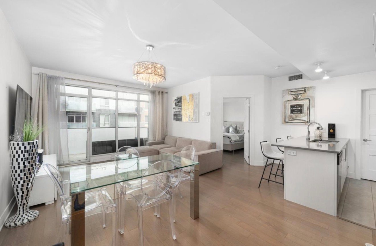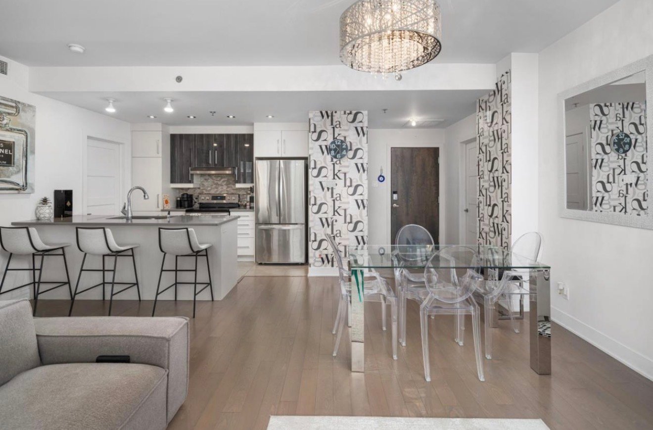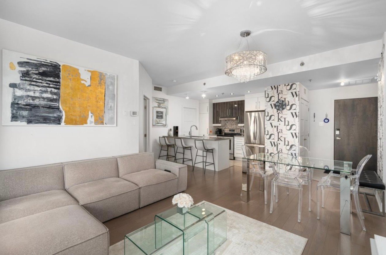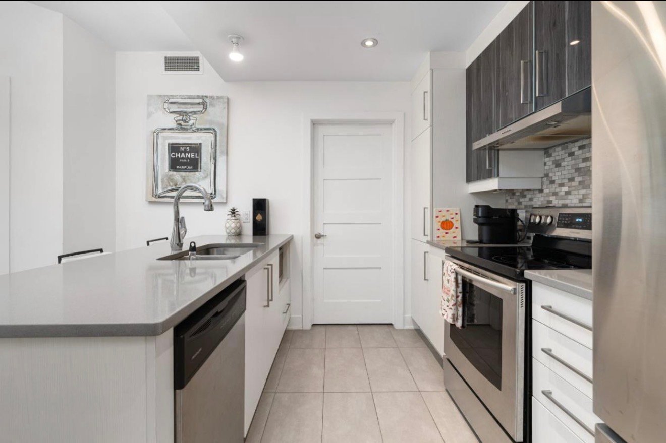 Bright 5th-floor condo ideally located in the heart of Laval, just steps from Centropolis and Carrefour Laval. Open-concept layout filled with natural light from large windows, cozy living room with private balcony, and modern kitchen with island. Spacious bedroom, sleek bathroom, and separate laundry room. Includes indoor parking, storage, and access to an outdoor in-ground pool. Prime location near major highways, transit, restaurants, and services. Urban living without compromising on comfort.