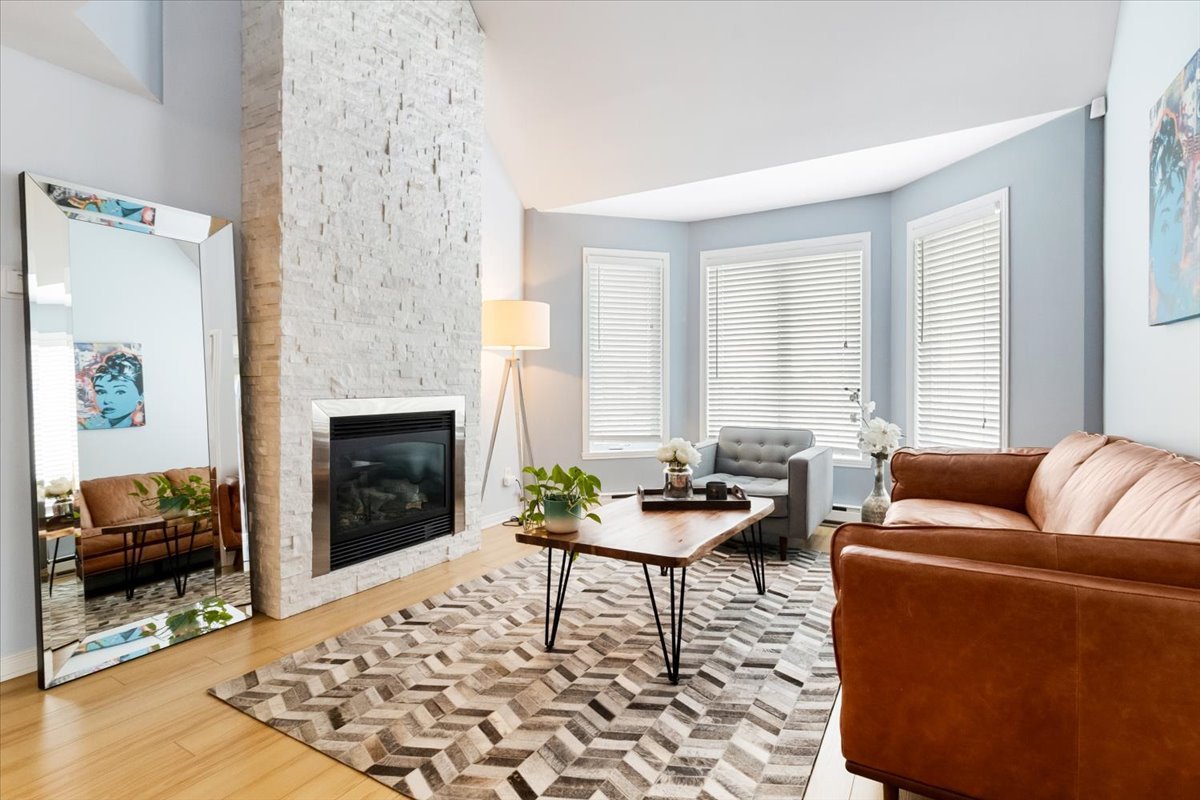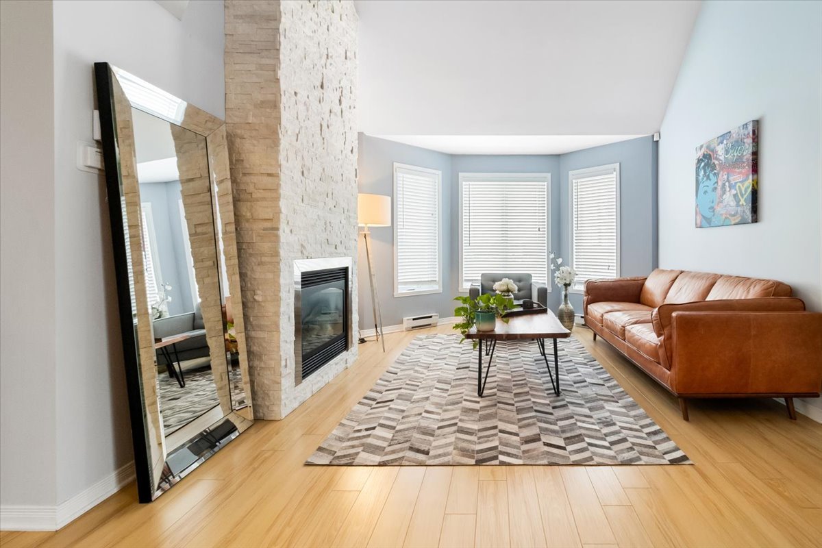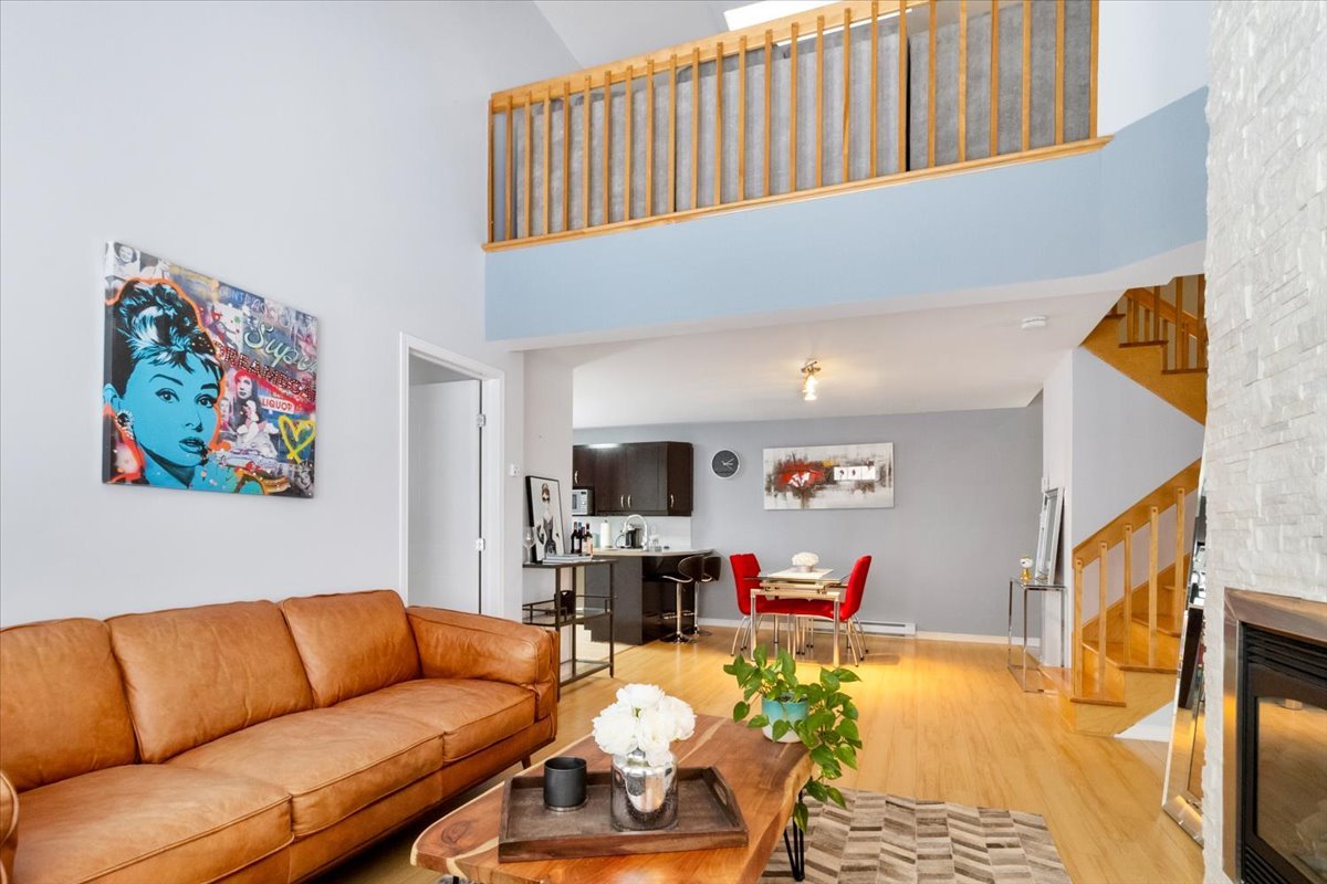 VILLAS SUR RIVE offers you this magnificent condo that will meet your expectations: 2 bedrooms, mezzanine, 1 bathroom & 1 powder room, living room with gas fireplace & cathedral ceiling, kitchen with ceramic backsplash & breakfast bar. Wall-mounted heat pump, two parking spaces (indoor + outdoor). Close to all amenities. Available April 1, 2026, non-smoking environment and no pets.