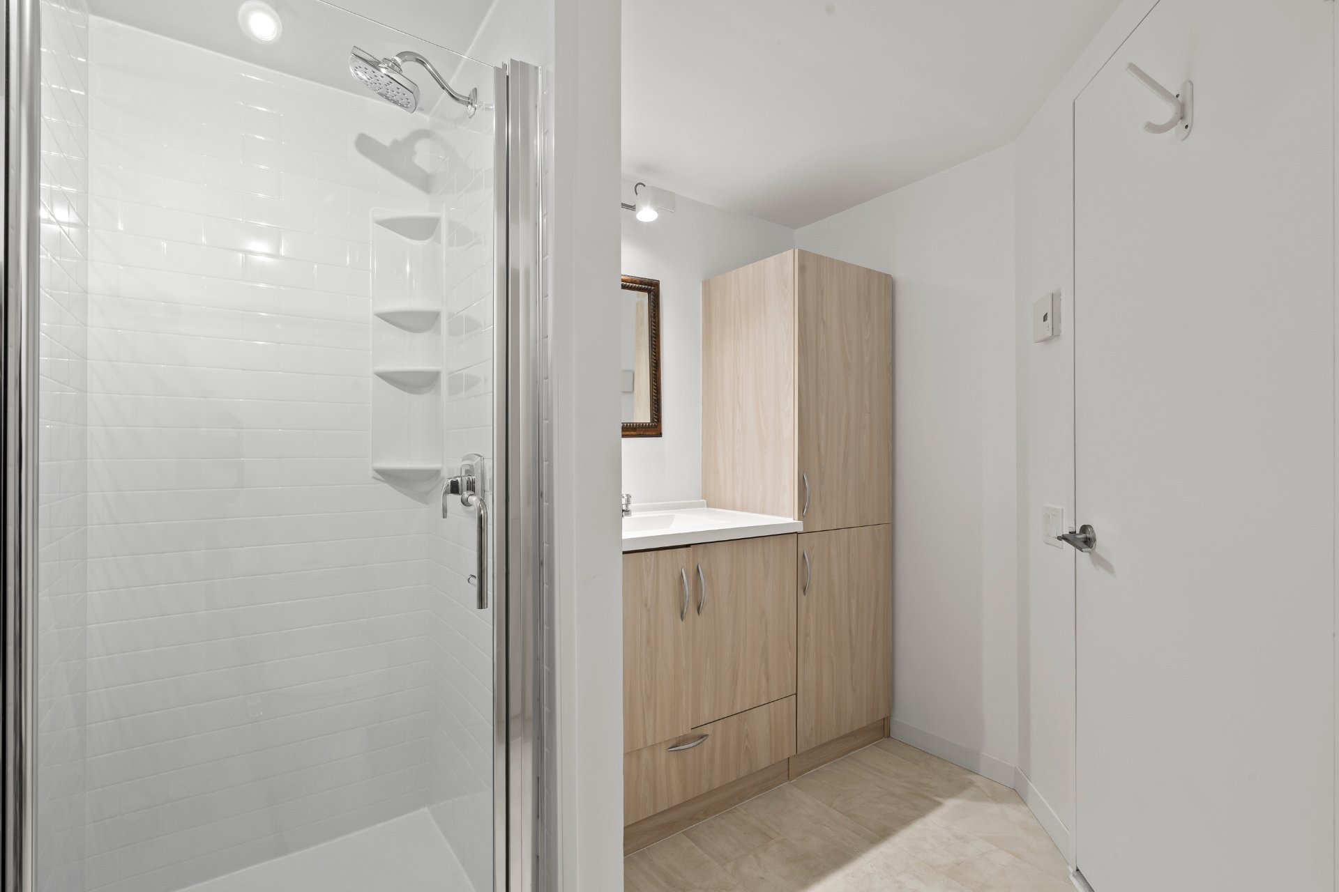 céramique et vanité avec beaucoup de rangement.