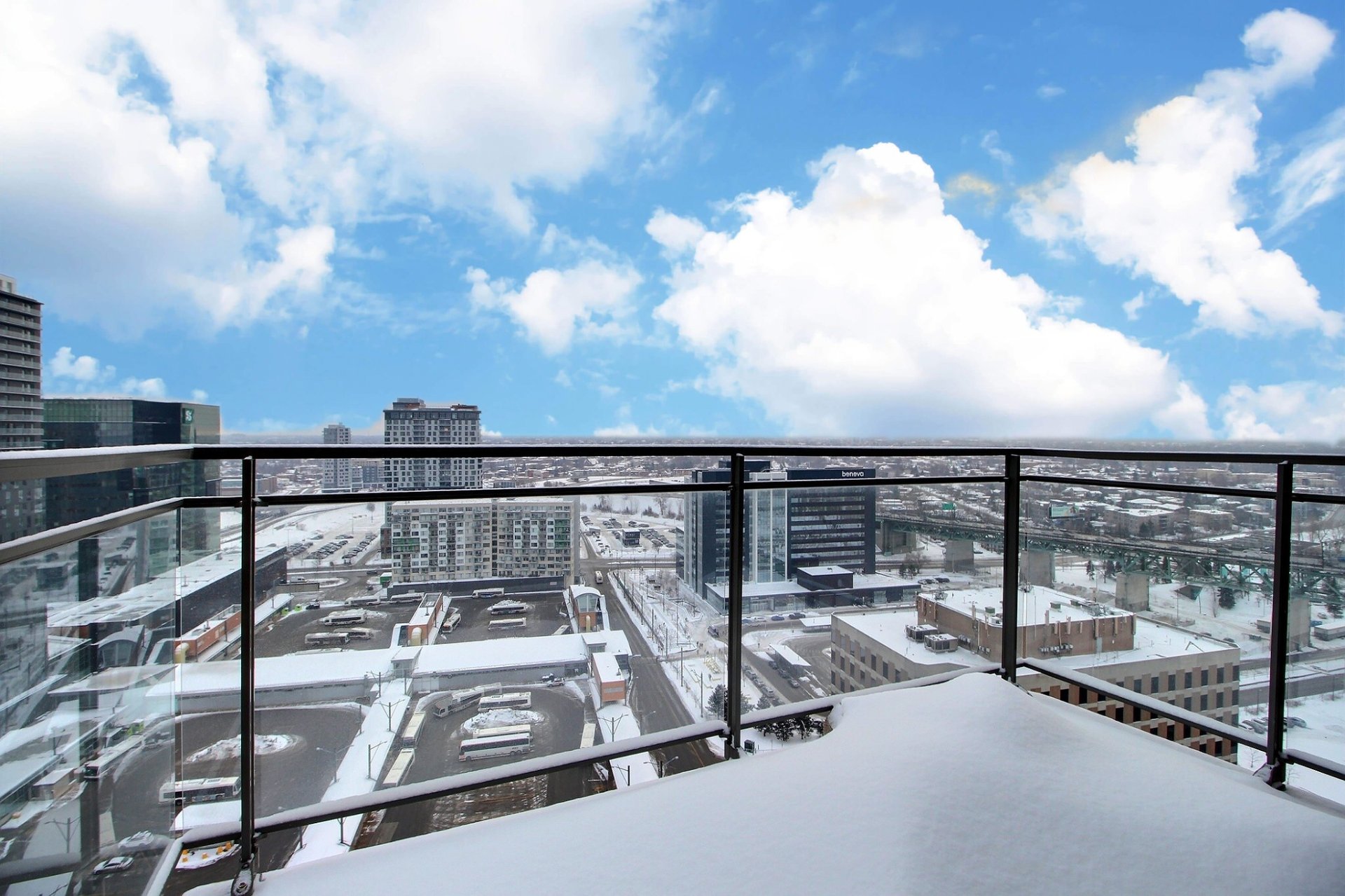 Unité nichée au 25e et dernier étage avec plafond de 9
