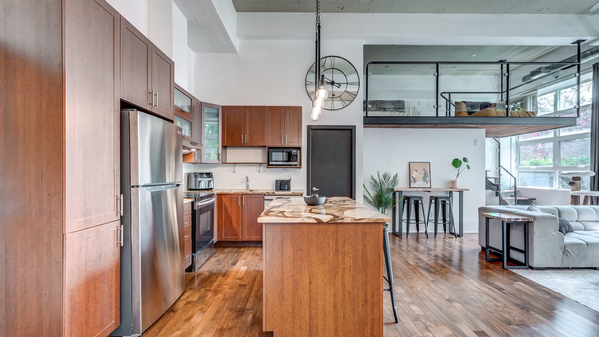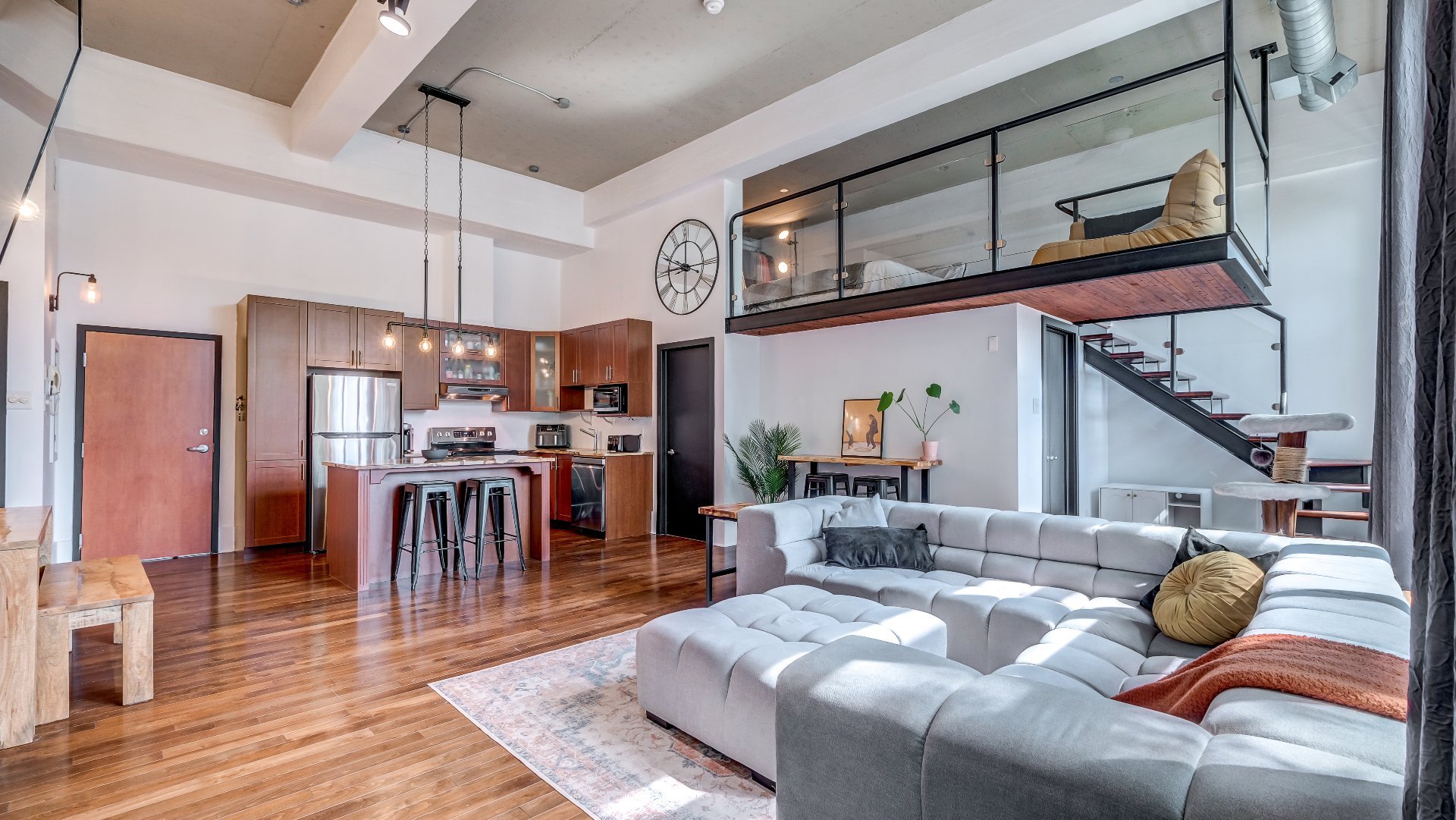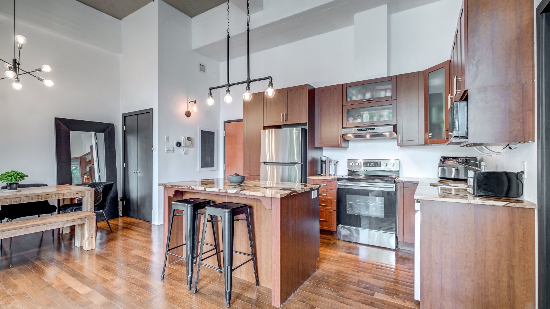 Magnifique condo de style loft dans un quartier tranquille et recherché de Longueuil! Sa belle luminosité et ses hauts plafonds vous charmeront à coup sûr. Profitez de la grande chambre mezzanine, d'une salle de bain avec plancher chauffant ainsi que son système de chauffage et climatisation centrale. Occasion rare sur le marché! N'attendez plus et demandez votre visite!
