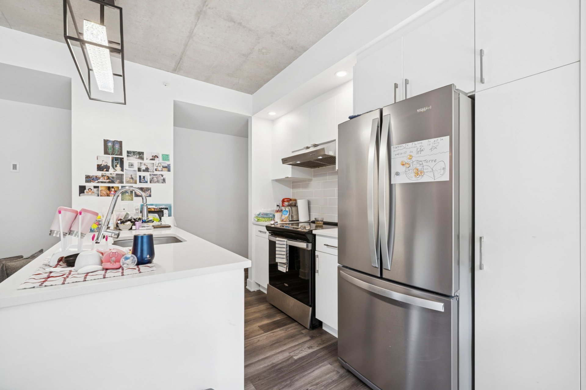 Modern and bright condo located at 1431 Avenue de la Gare, unit #404 in Mascouche. Featuring two bedrooms, a stylish bathroom and an open-concept living area, this home is filled with natural light thanks to its large windows. The modern kitchen with island flows into a welcoming living space, while a private balcony offers extra comfort. An indoor garage space is included. Ideally located near the train station, shops, schools and services, this condo combines comfort, convenience and location.