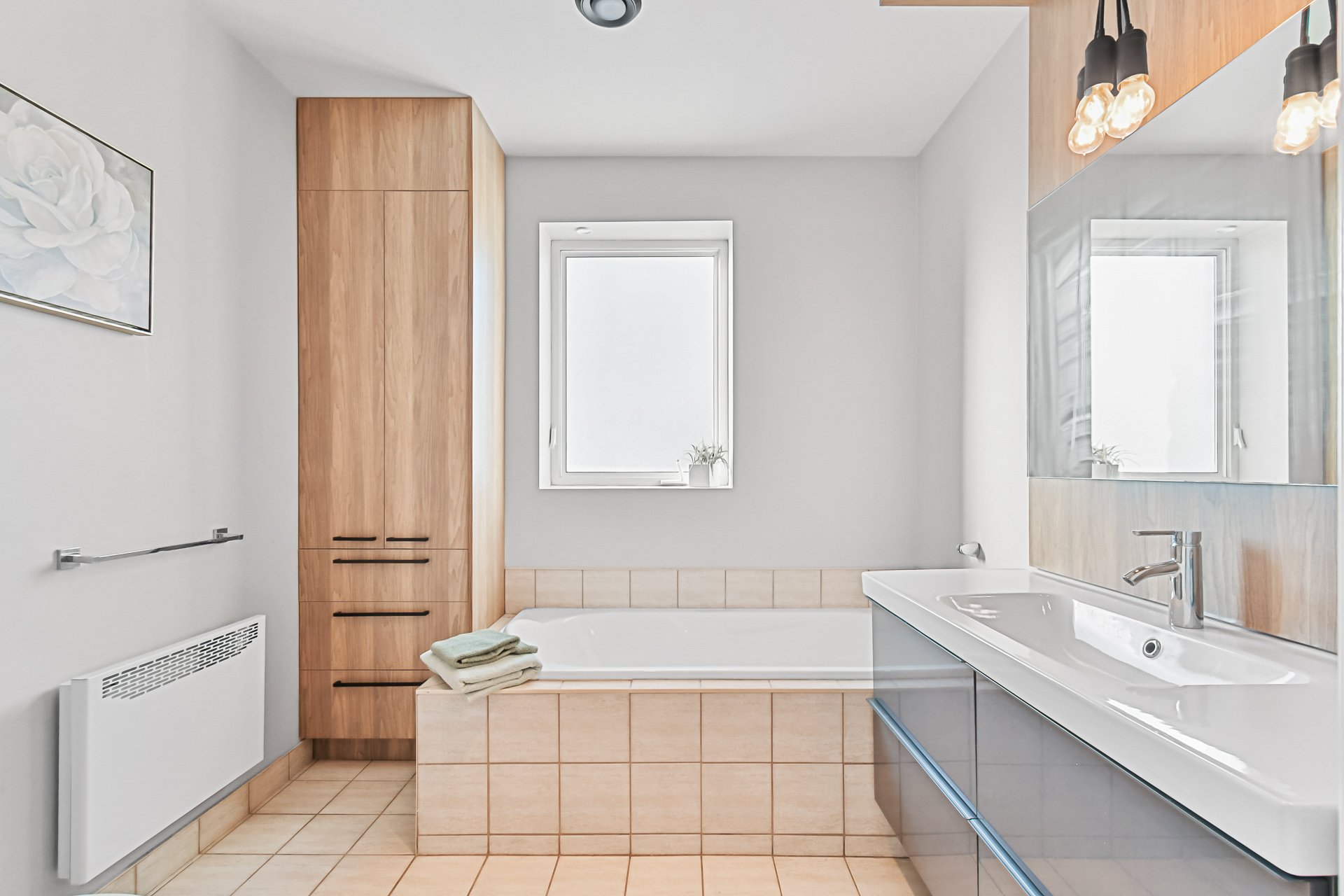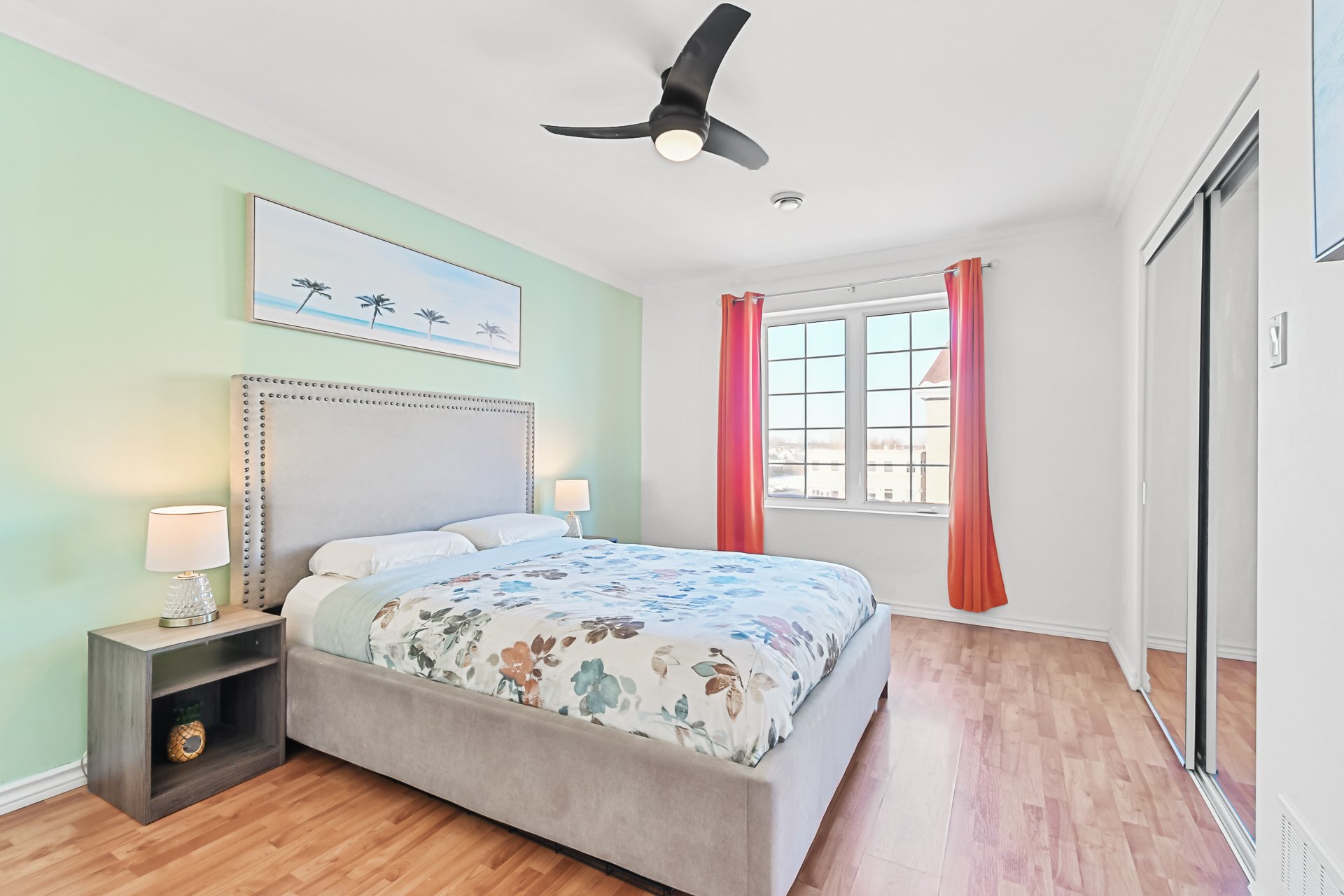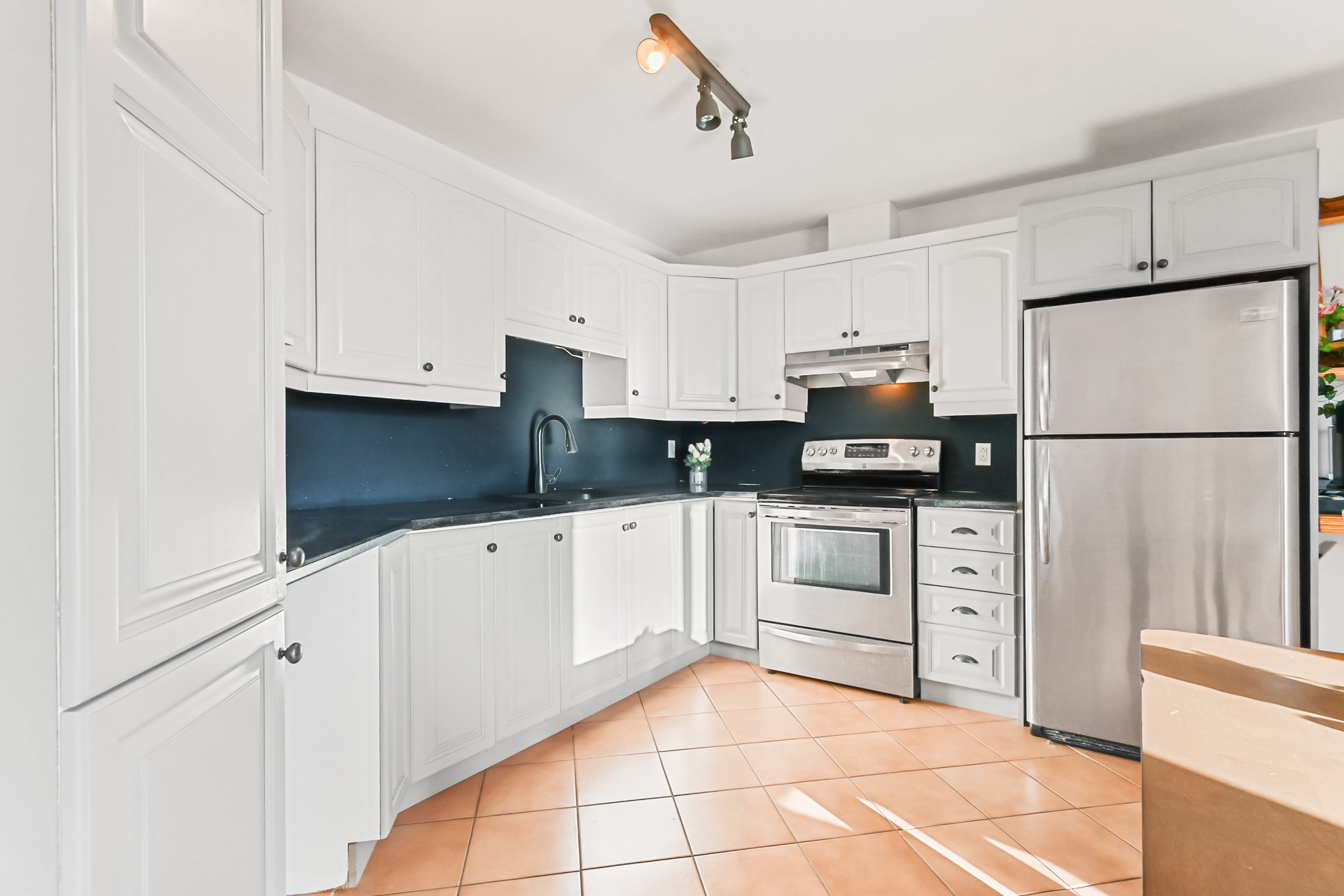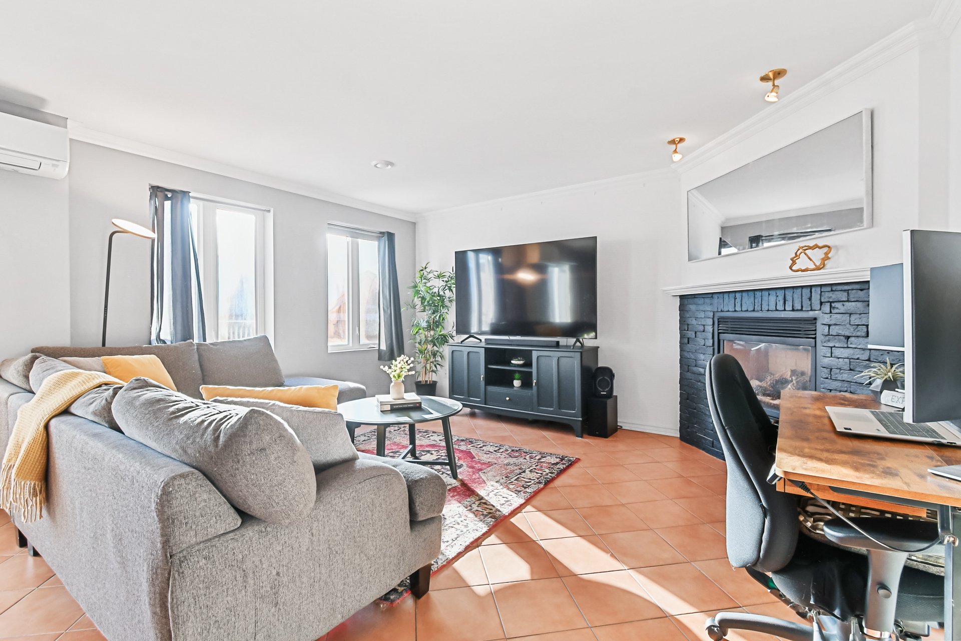 Située au 4e étage sur la montée Masson, cette copropriété offre une aire de vie ouverte regroupant salon et salle à manger, agrémentée d'un foyer au gaz et de planchers de céramique. La cuisine propose beaucoup de rangement et un comptoir de service. L'unité comprend deux chambres avec garde-robes doubles, une salle de bain moderne avec vanité flottante et douche en coin, ainsi qu'un espace laveuse-sécheuse. Deux stationnements inclus. Secteur très recherché, à proximité des commerces, écoles, parcs et restaurants.