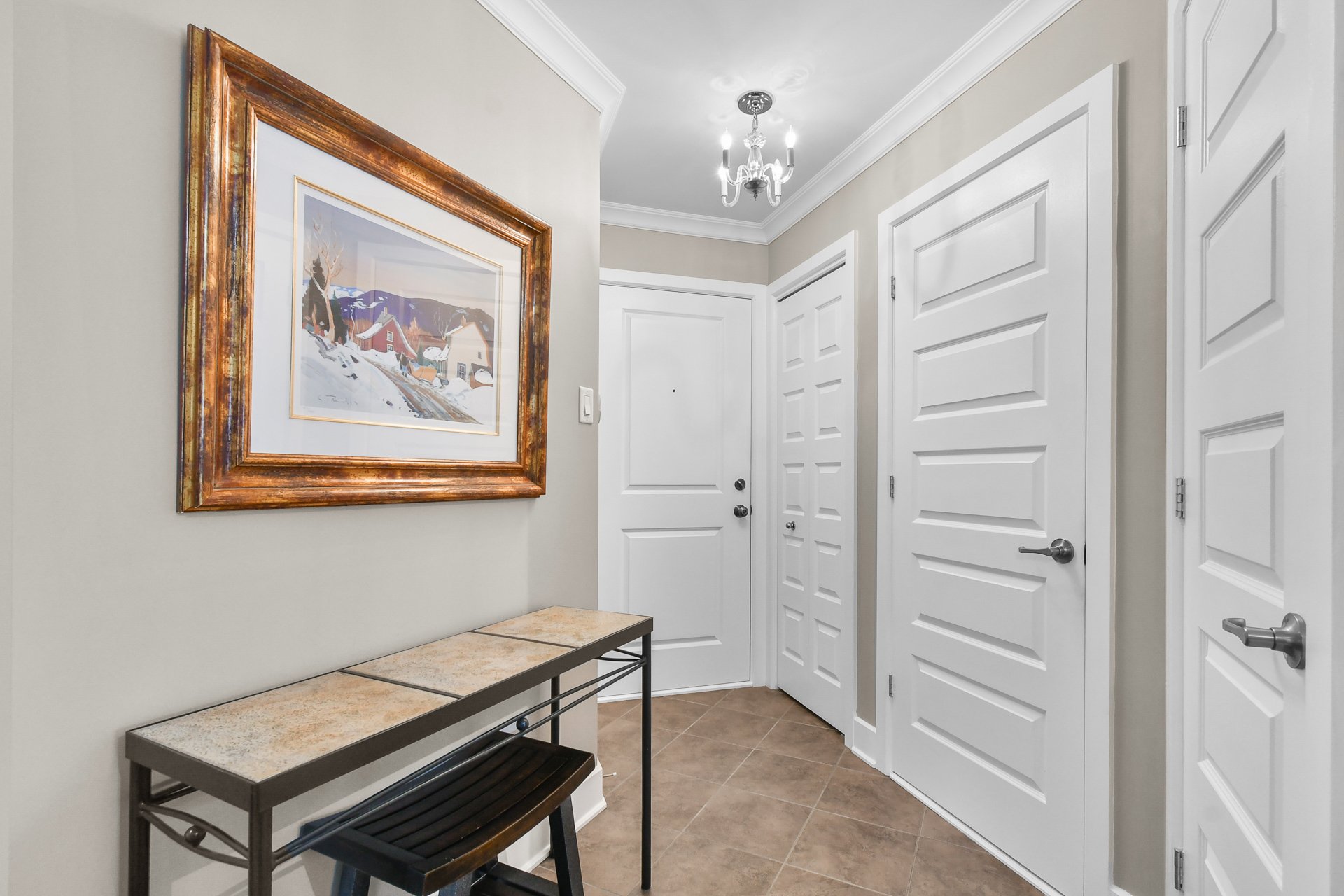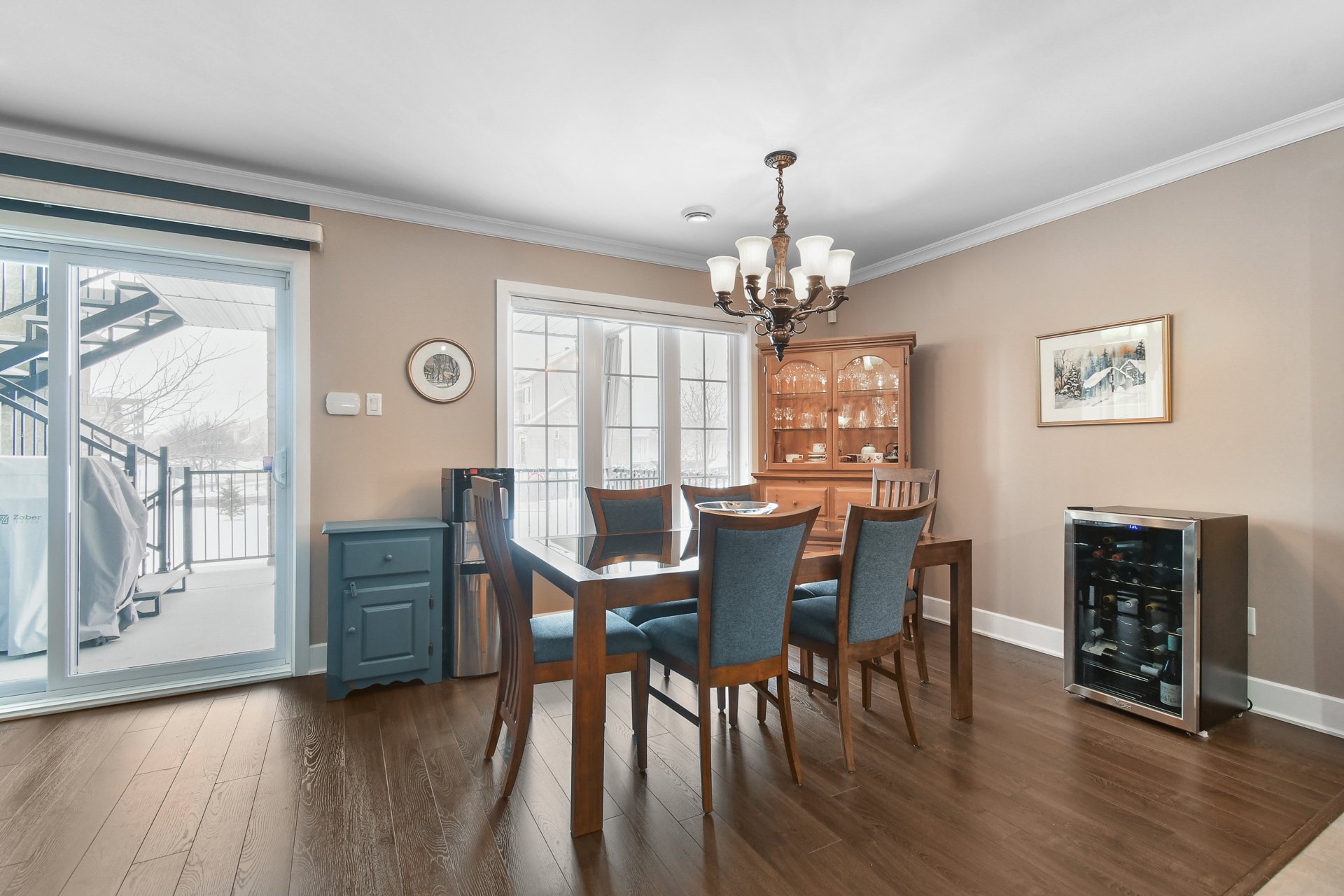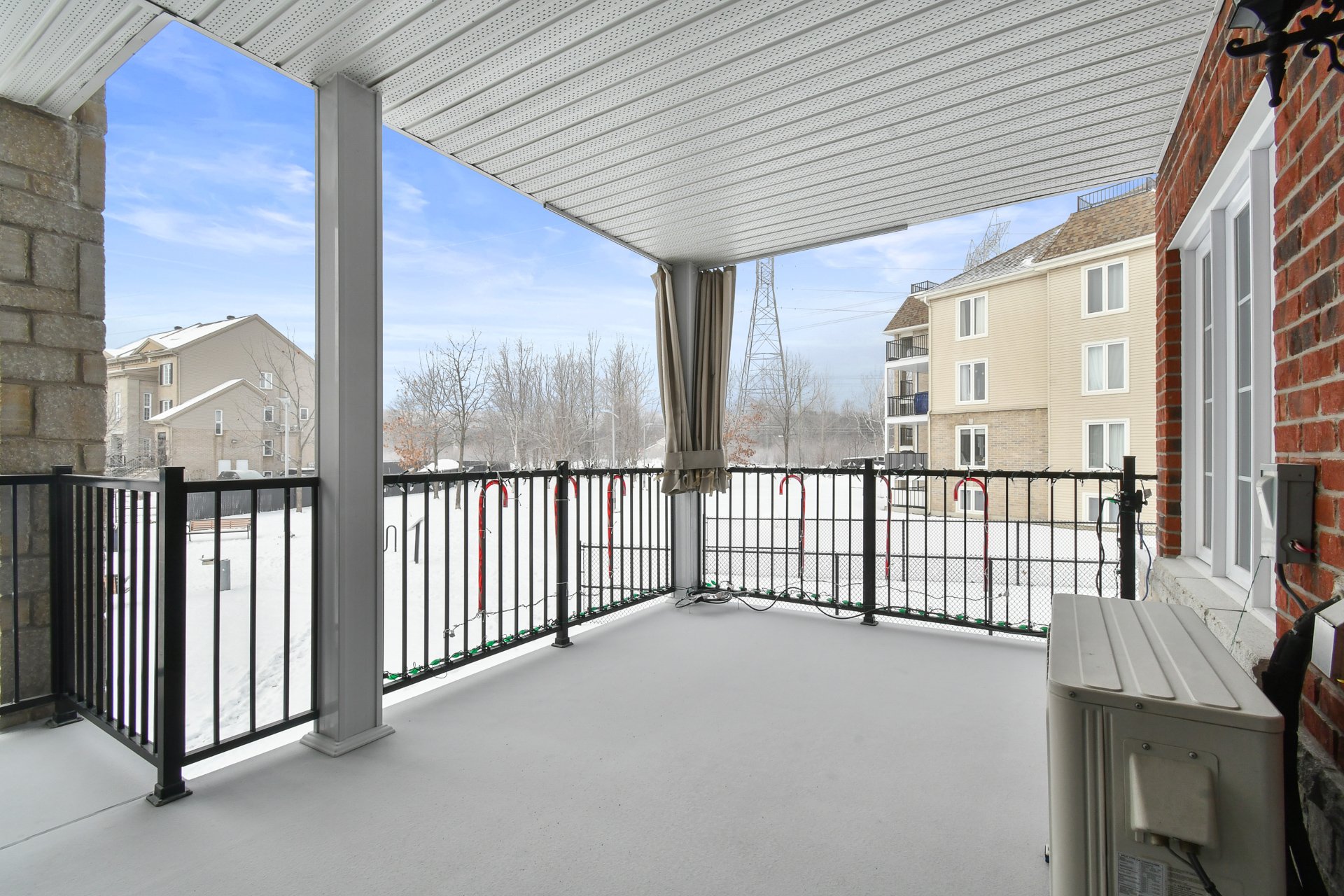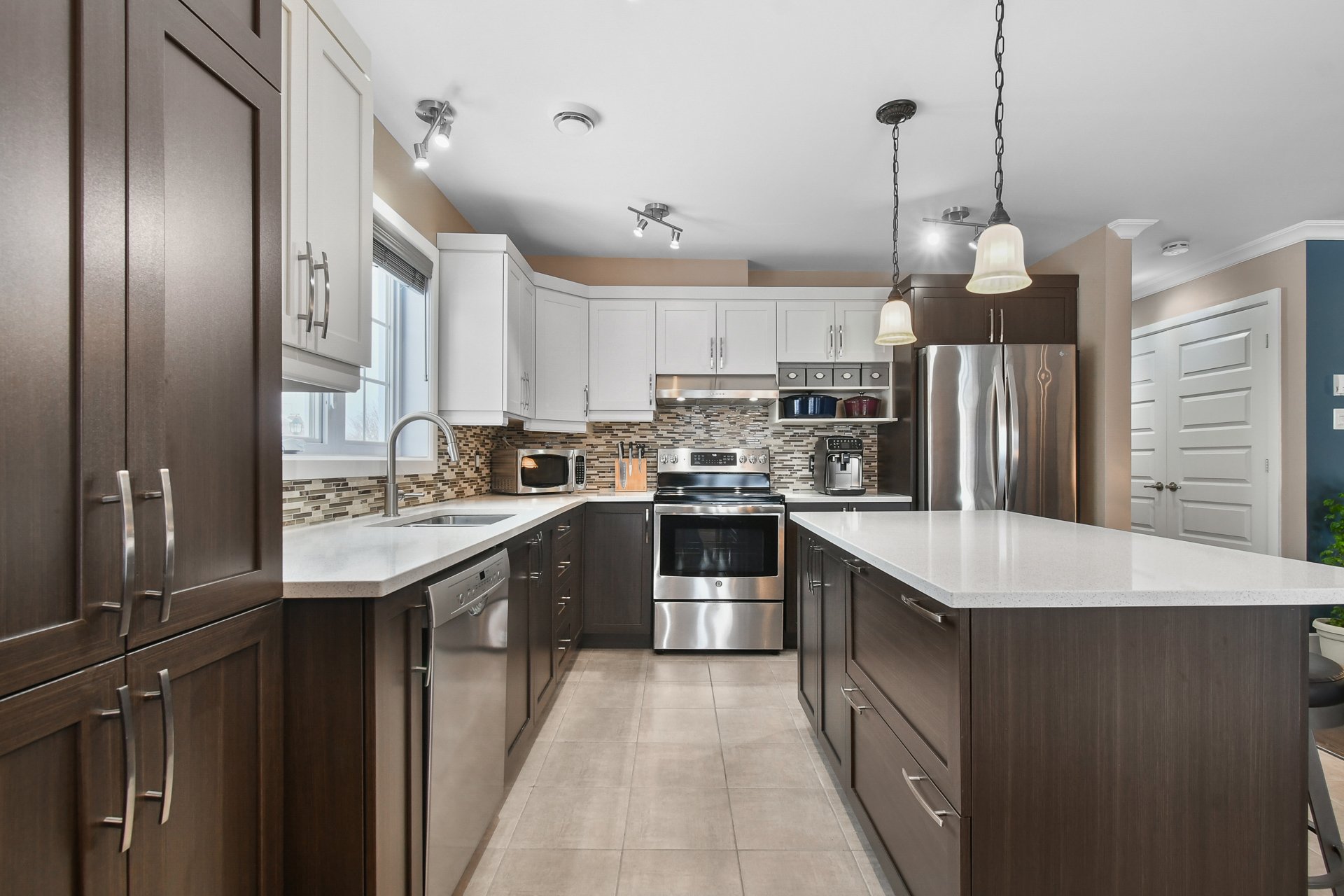 Beau condo situé au premier étage, adossé au parc de la Seigneurie et à son étang, avec garage et stationnement extérieur. Cuisine avec îlot et comptoirs de quartz, salon doté d'un foyer au gaz naturel, système central de chauffage avec climatiseur. Deux chambres, dont la chambre des maîtres avec walk-in. Grand balcon muni de toiles solaires, prise de gaz pour BBQ, vue arrière dégagée. Accès rapide aux autoroutes 25 et 640, près de tous les services et sentiers pesdestres du parc du grand Coteau. Libre le 21 février. Bienvenue!