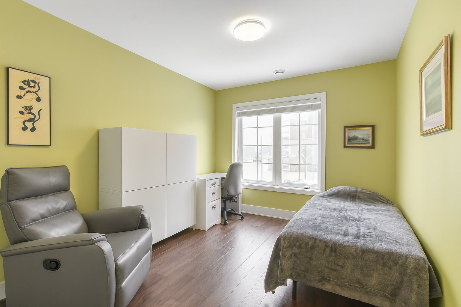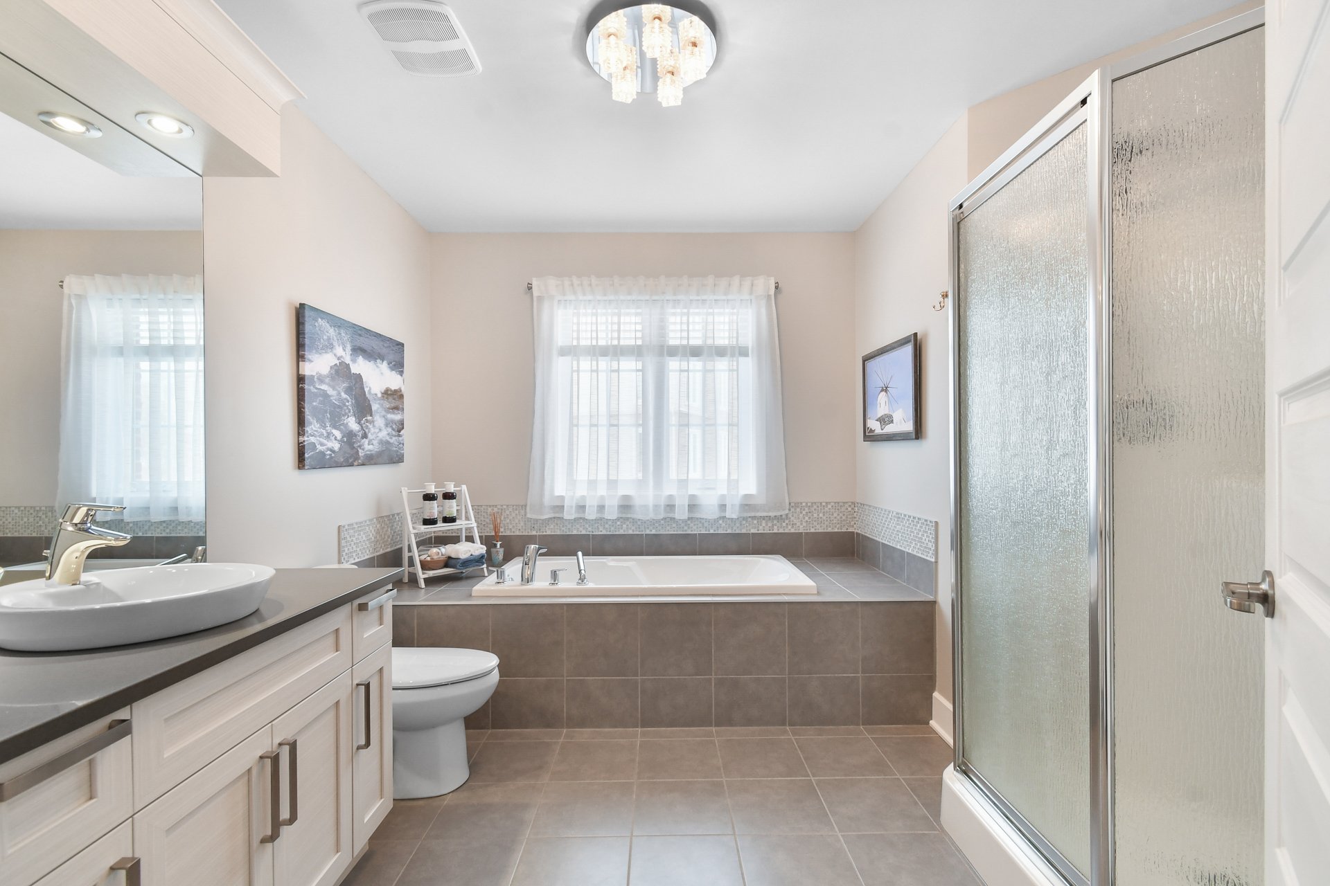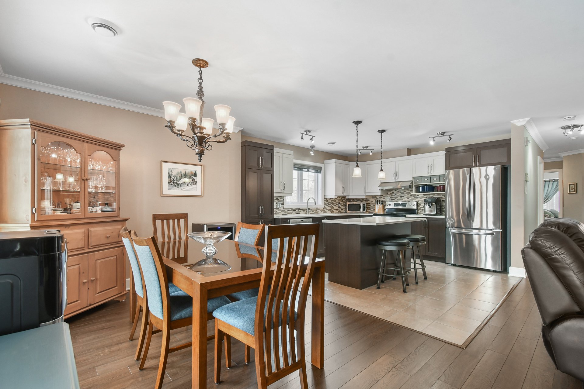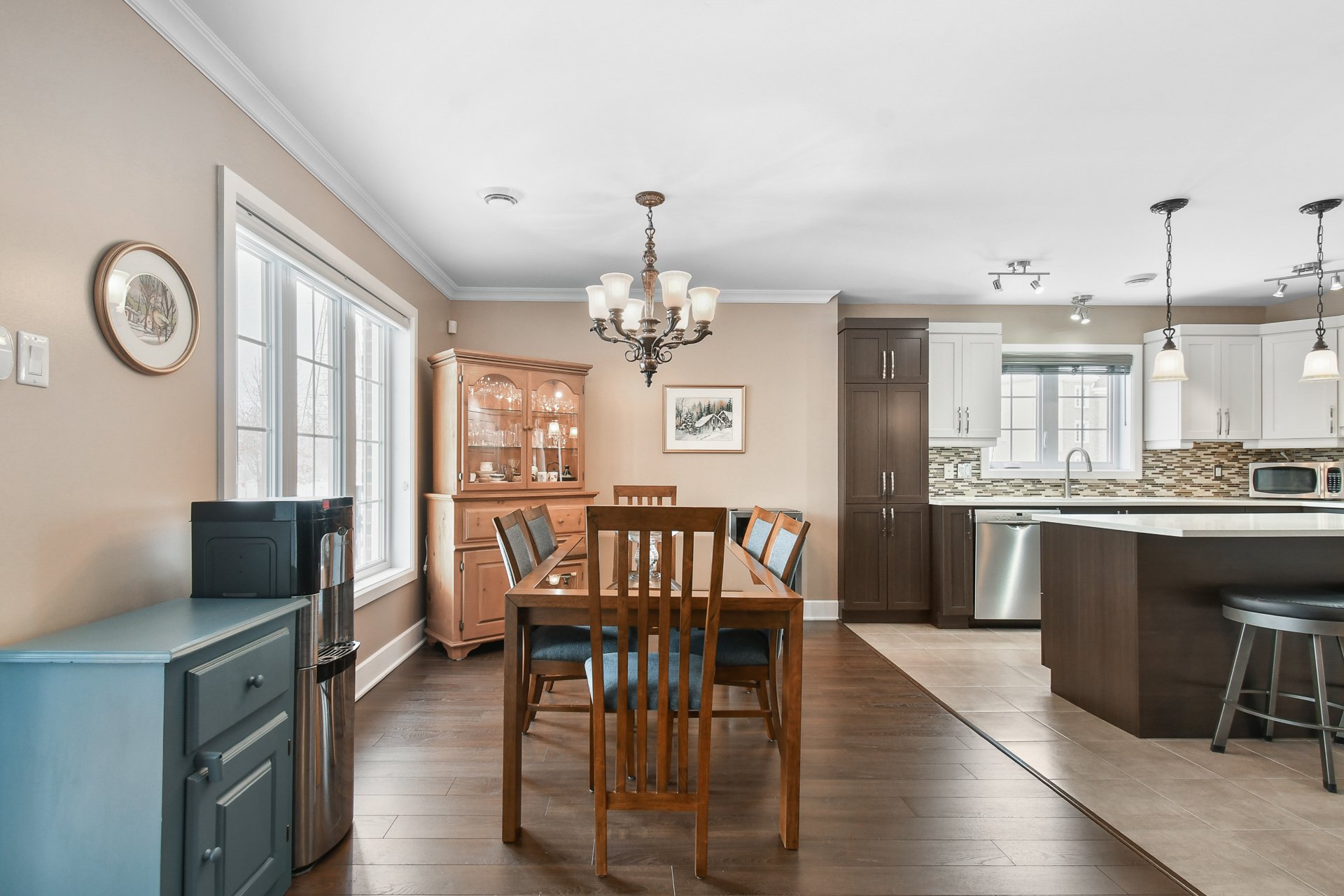 Beau condo situé au premier étage, adossé au parc de la Seigneurie et à son étang, avec garage et stationnement extérieur. Cuisine avec îlot et comptoirs de quartz, salon doté d'un foyer au gaz naturel, système central de chauffage avec climatiseur. Deux chambres, dont la chambre des maîtres avec walk-in. Grand balcon muni de toiles solaires, prise de gaz pour BBQ, vue arrière dégagée. Accès rapide aux autoroutes 25 et 640, près de tous les services et sentiers pesdestres du parc du grand Coteau. Libre le 21 février. Bienvenue!