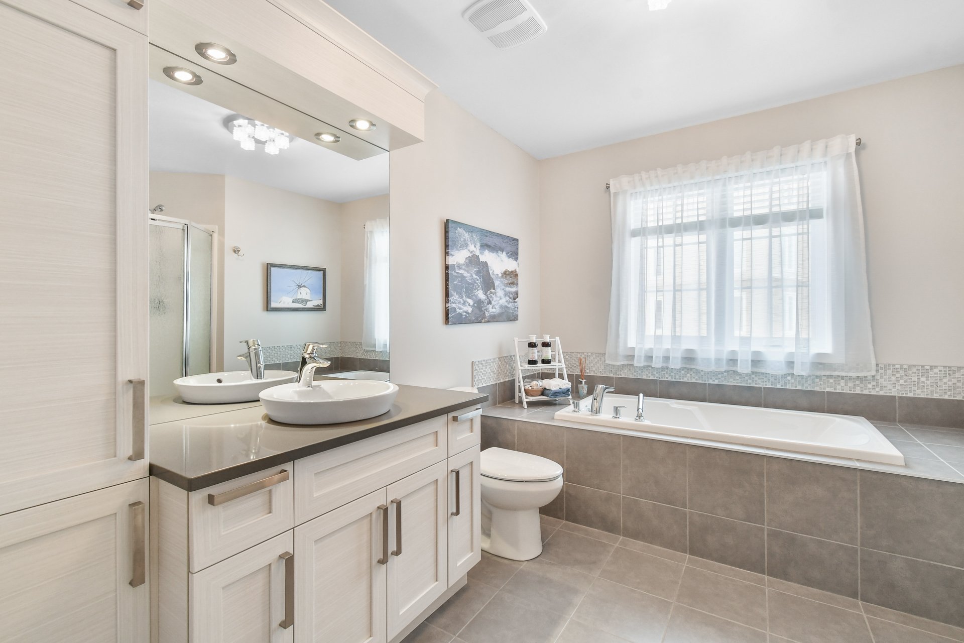 Stores, luminaires, hotte de cuisine, lave-vaisselle, climatiseur central, rangements des garde-robes, 2 places de stationnement (1 au garage et 1 extérieur -- G5), manette de porte de garage, réservoir d'eau chaude a...
