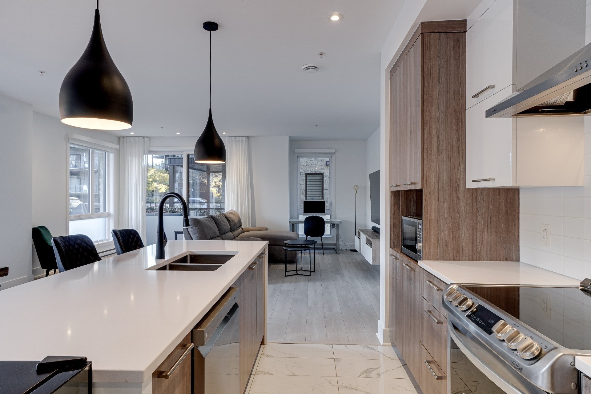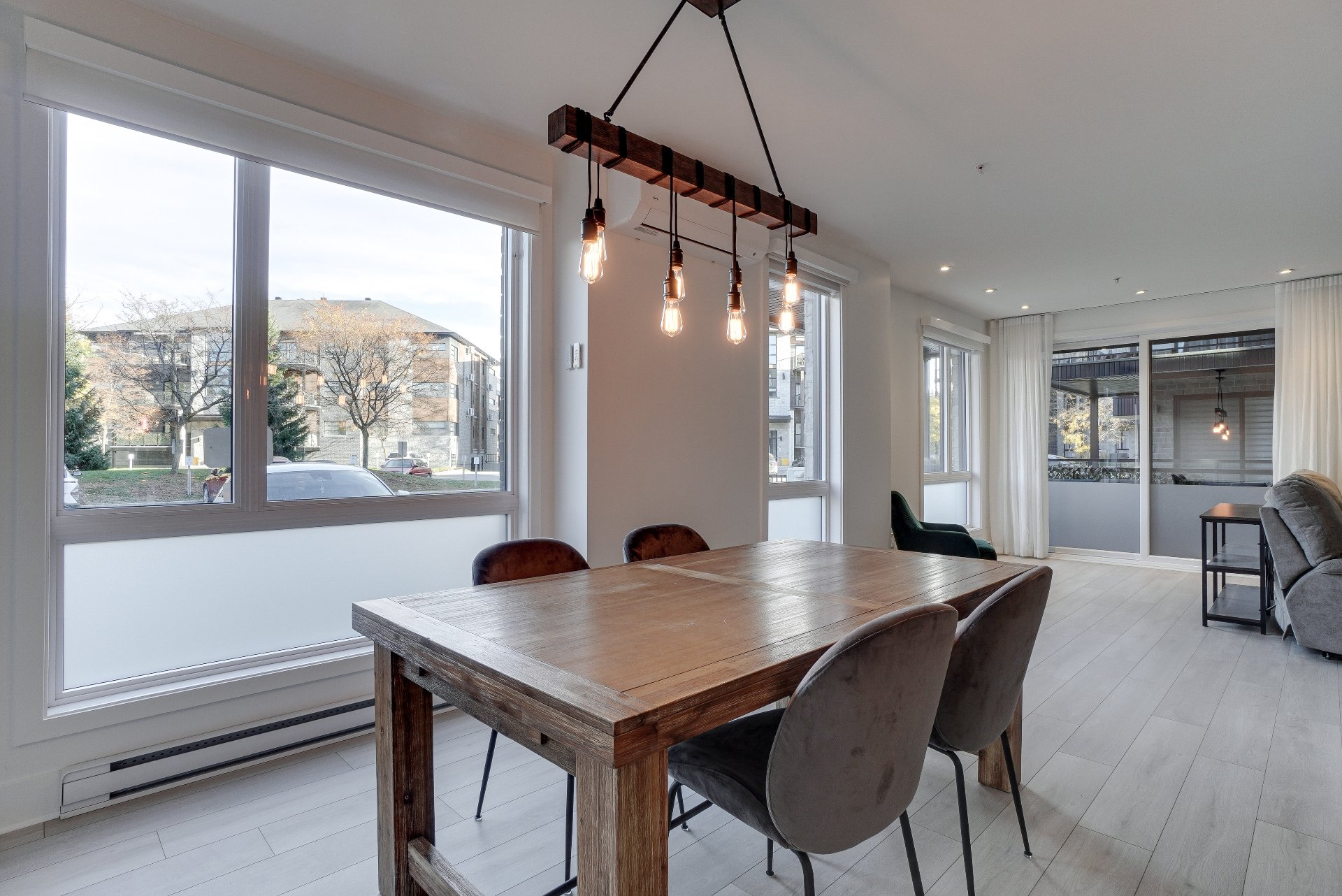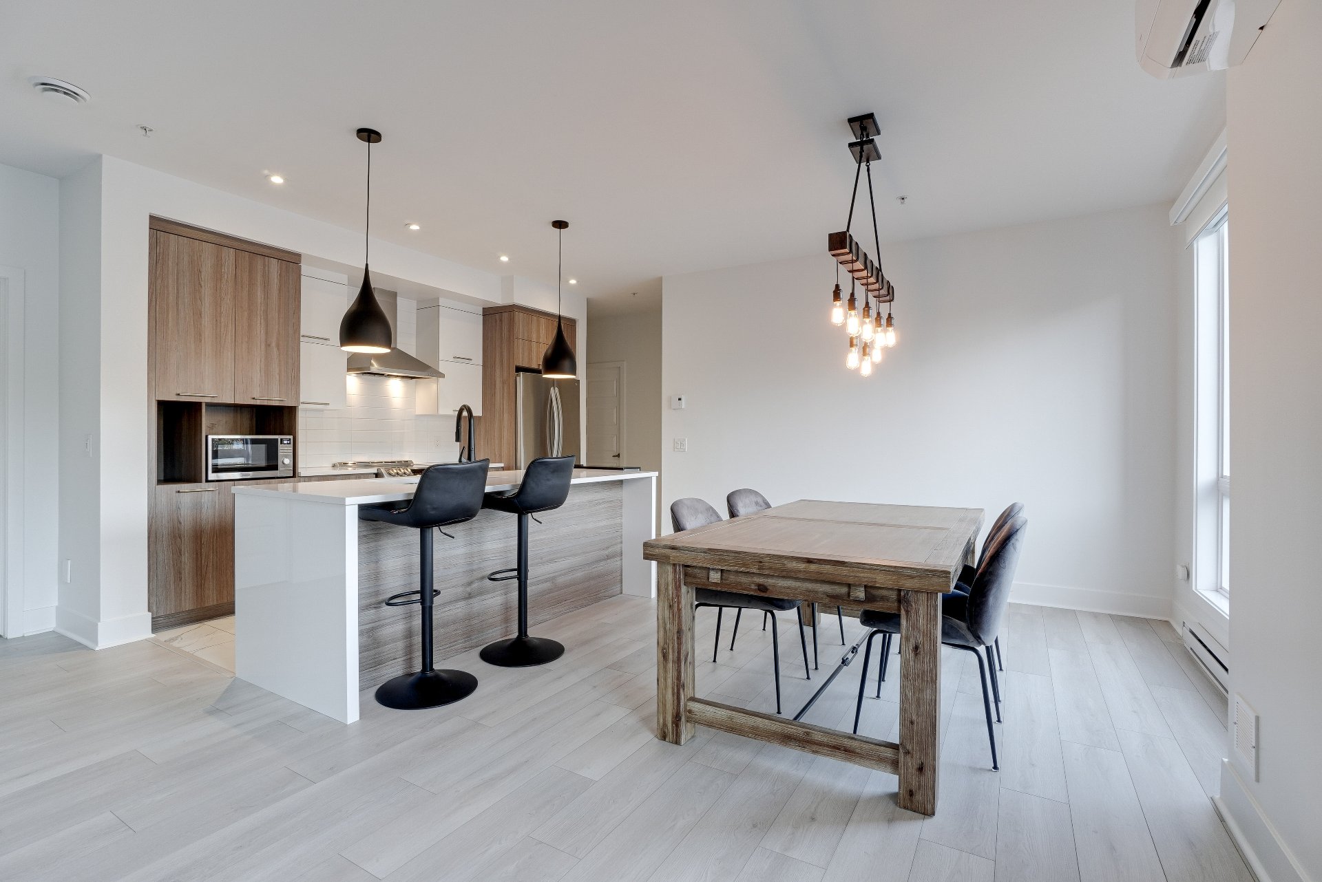 Magnifique condo comprenant 2 chambres et 2 salles de bain complètes, dont une attenante à la chambre principale avec walk-in. Vous serez charmés par la luminosité abondante, la salle de lavage indépendante, les stores motorisés jour et nuit ainsi que la thermopompe murale. Une terrasse vient compléter l'espace de vie, idéale pour profiter des beaux jours d'été. L'unité comprend un stationnement intérieur avec rangement et un espace extérieur. Les résidents bénéficient d'un accès privilégié au chalet urbain, piscine creusée chauffée, gym et une salle de réception. Le tout à proximité de tous les services et accès rapide à la A15, A640 et A13.