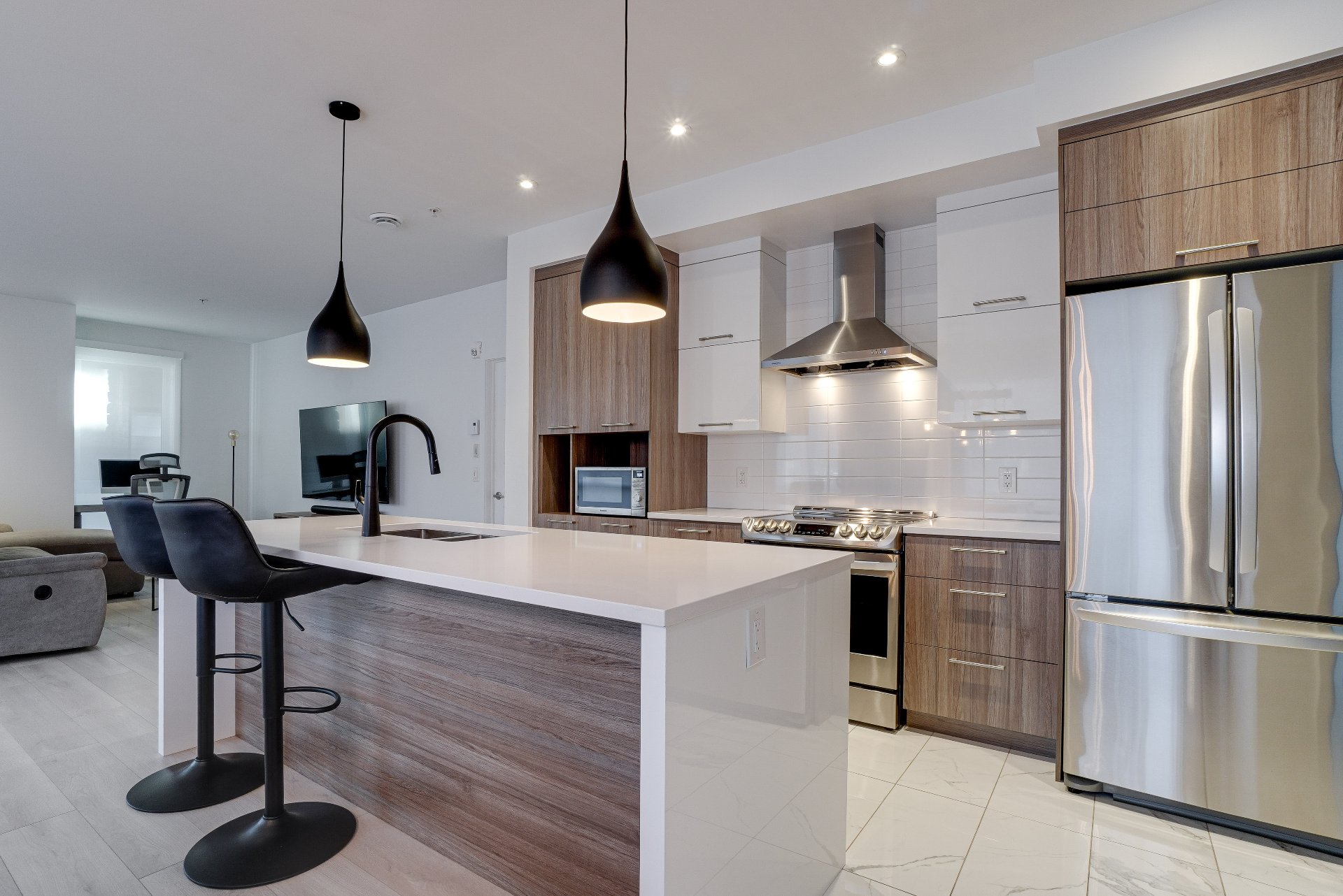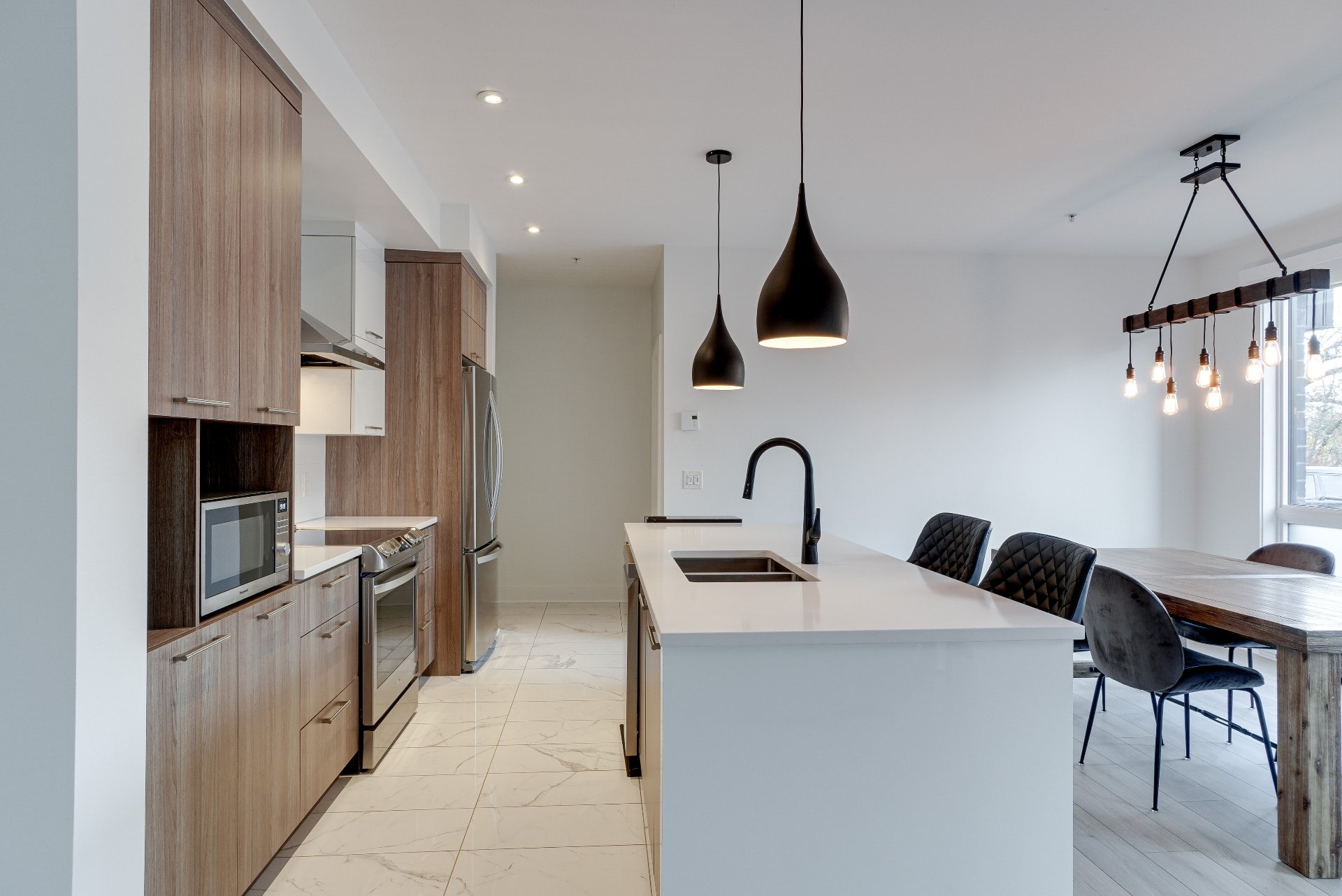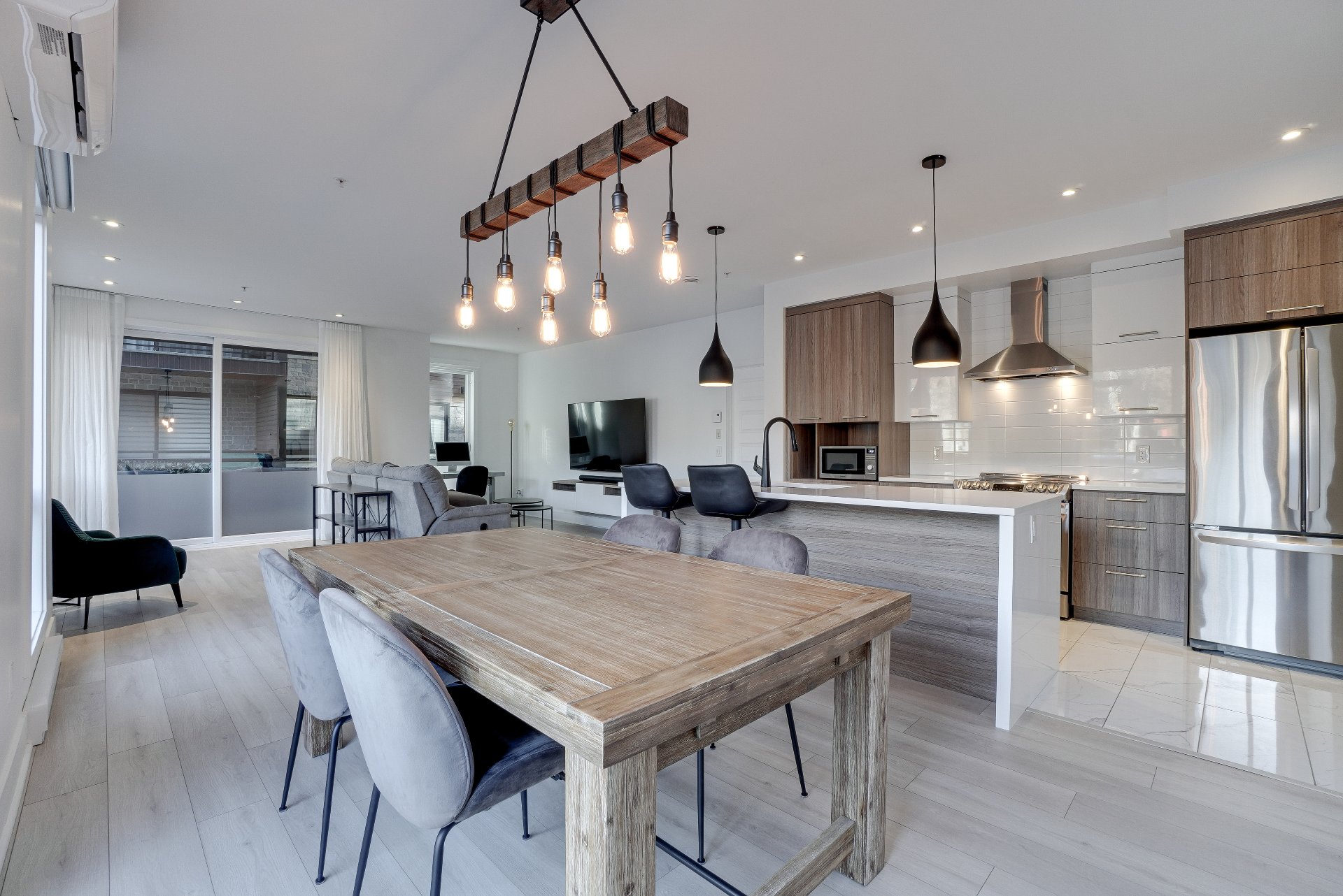 Magnifique condo comprenant 2 chambres et 2 salles de bain complètes, dont une attenante à la chambre principale avec walk-in. Vous serez charmés par la luminosité abondante, la salle de lavage indépendante, les stores motorisés jour et nuit ainsi que la thermopompe murale. Une terrasse vient compléter l'espace de vie, idéale pour profiter des beaux jours d'été. L'unité comprend un stationnement intérieur avec rangement et un espace extérieur. Les résidents bénéficient d'un accès privilégié au chalet urbain, piscine creusée chauffée, gym et une salle de réception. Le tout à proximité de tous les services et accès rapide à la A15, A640 et A13.
