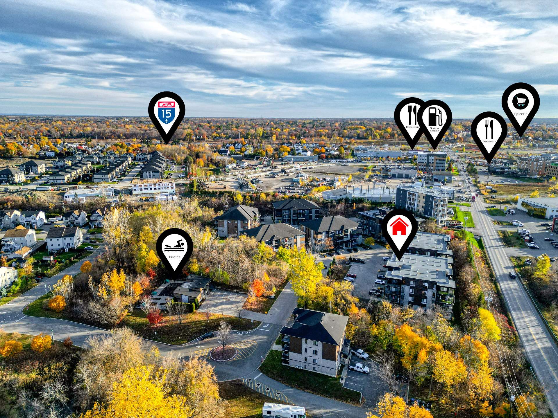 Transport en commun, Sentier de VTT, Ski de fond, École secondaire, École primaire, Piste cyclable, Parc-espace vert, Hôpital, Golf, Garderie/CPE, Cegep, Autoroute/Voie rapide