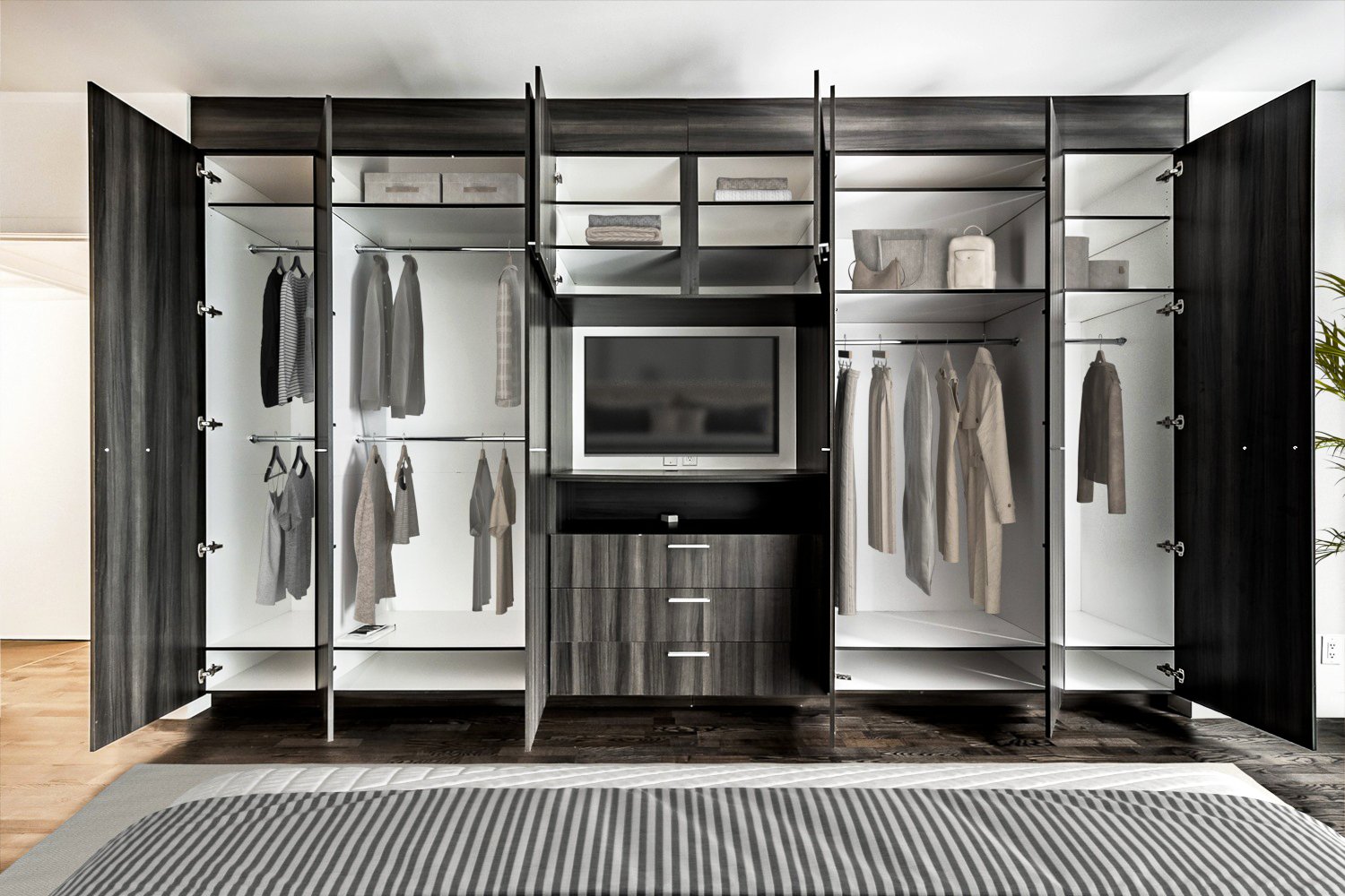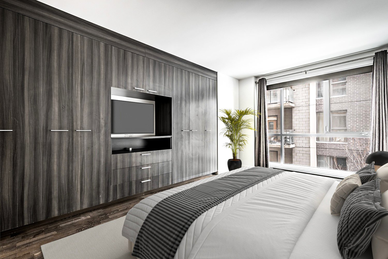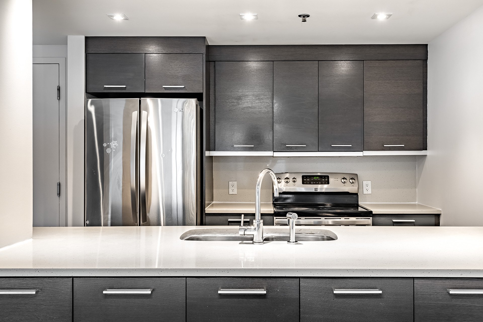 Cuisinière, réfrigérateur, lave-vaisselle, laveuse, sécheuse.