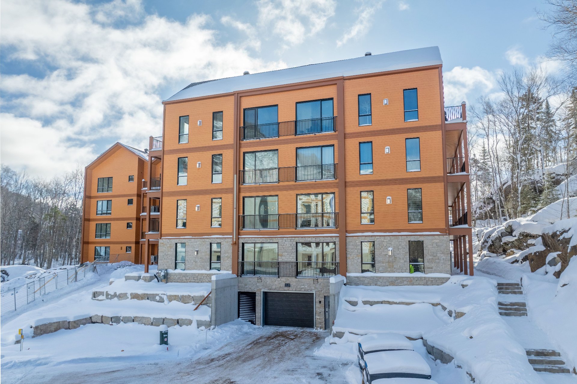DELIVERY IN APRIL 2026! Located in the heart of the prestigious Versant Soleil sector, this luxury unit in the Ostrya Tremblant project will offer an unparalleled experience thanks to its ski-in/ski-out location. This new condo will combine high-end finishes, modern design, and exceptional brightness. Large windows, a private balcony, a gas fireplace, and refined materials will create an elegant space ideal for the ski season. You will experience the perfect balance between luxury and nature in Tremblant. Short-term rentals permitted, limited units available!