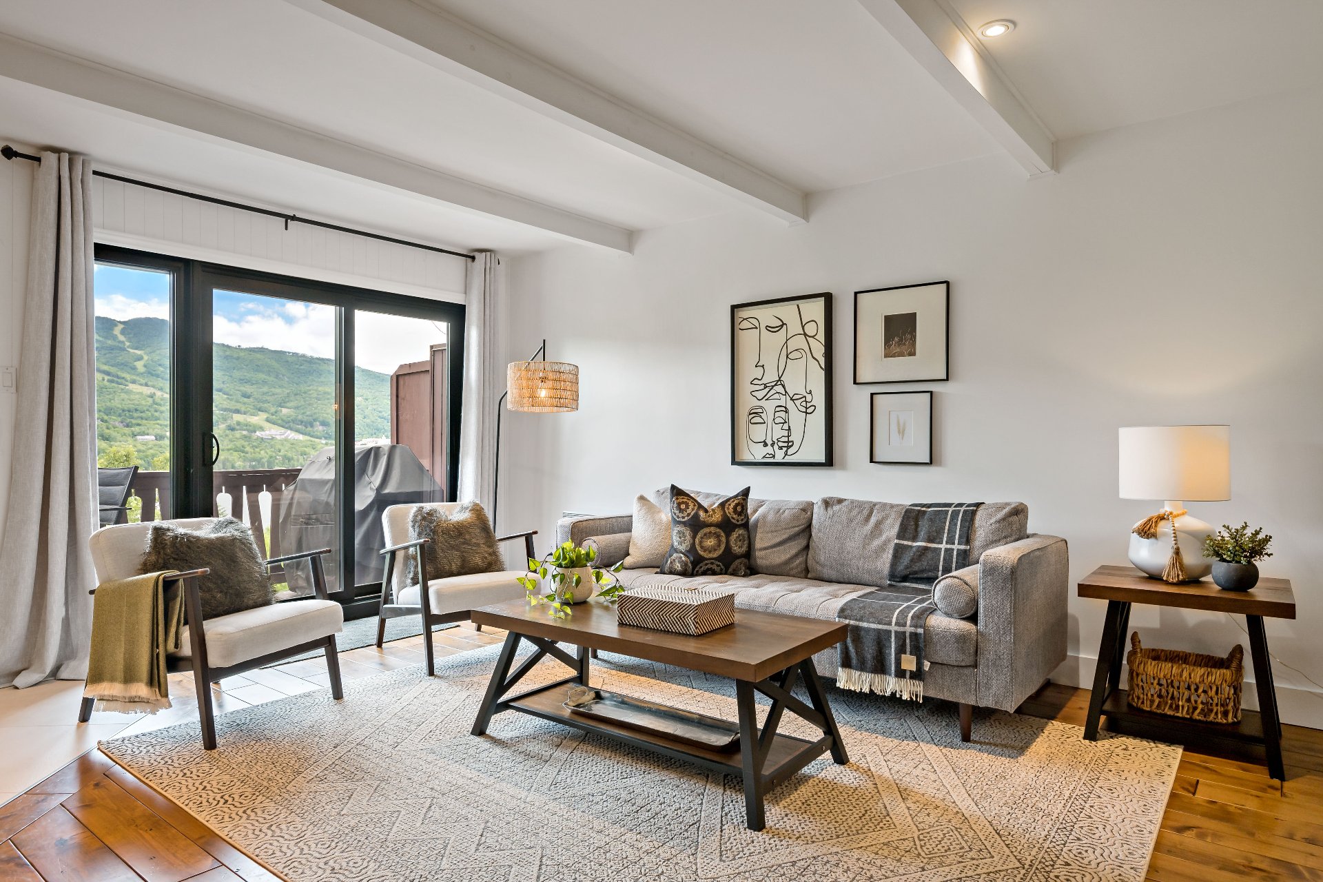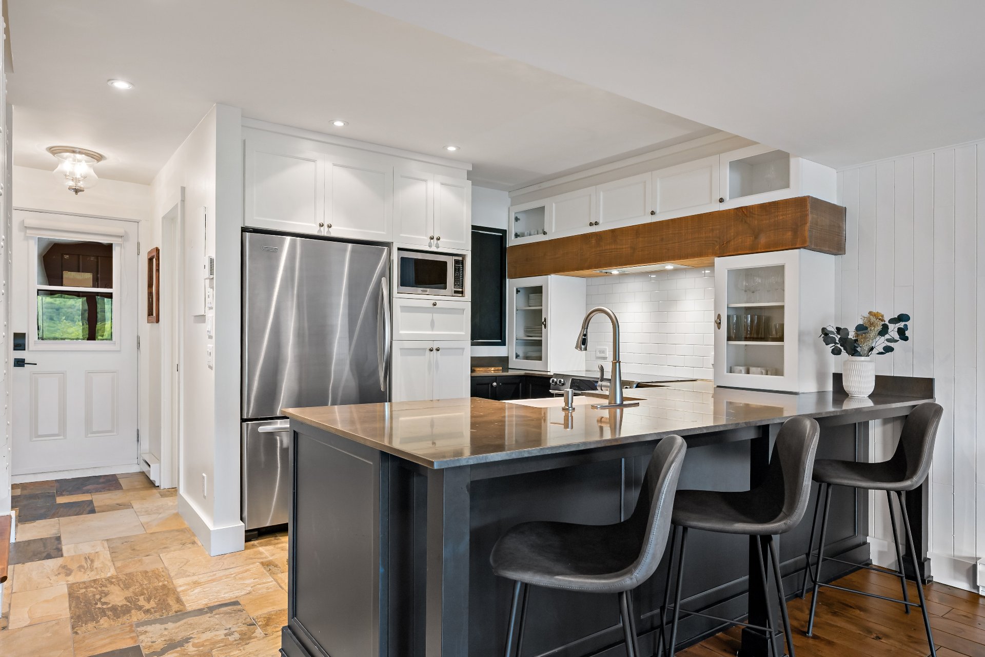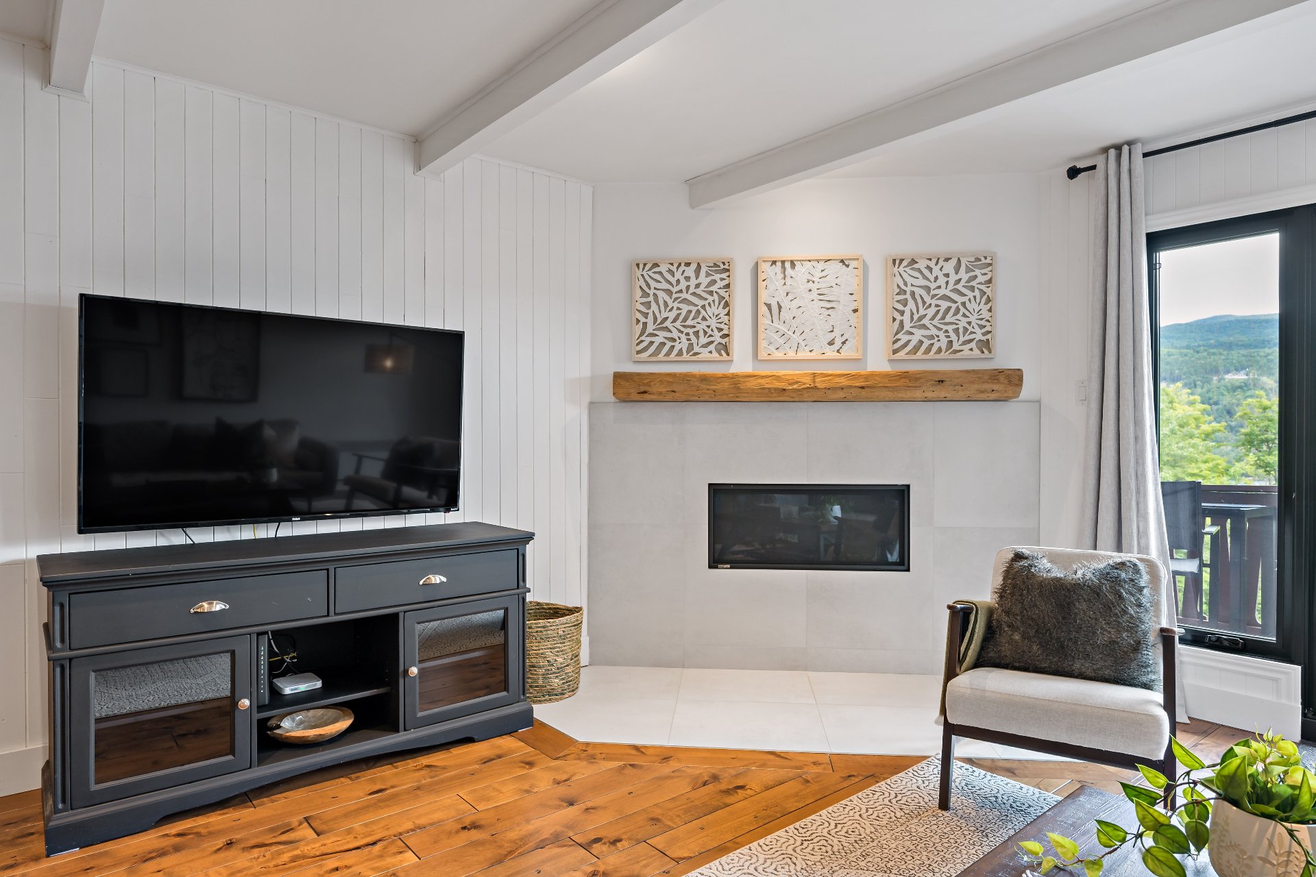 HOTEL DU LAC | Profitez d'un accès exceptionnel au lac Tremblant avec ce condo complètement rénové. Vous serez séduit par sa vue imprenable sur le lac et la montagne, offrant un spectacle magnifique en toute saison. L'intérieur est impeccable, utilisant des matériaux de qualité. Les espaces du premier étage, chaleureux avec foyer et poutres en bois, ajoutent du charme. À l'étage supérieur, découvrez deux chambres et deux salles de bains. Idéalement situé à quelques minutes de la station Mont-Tremblant, ce complexe autorise la location à court terme.