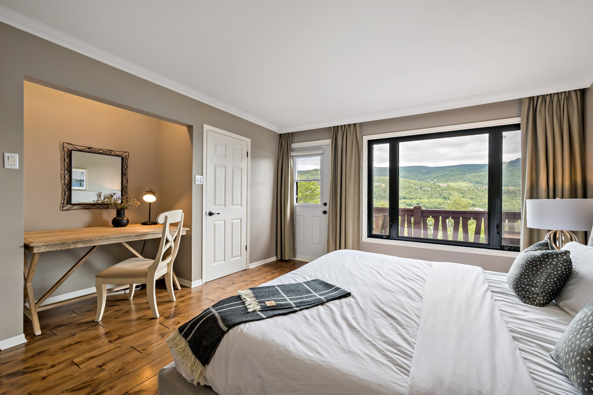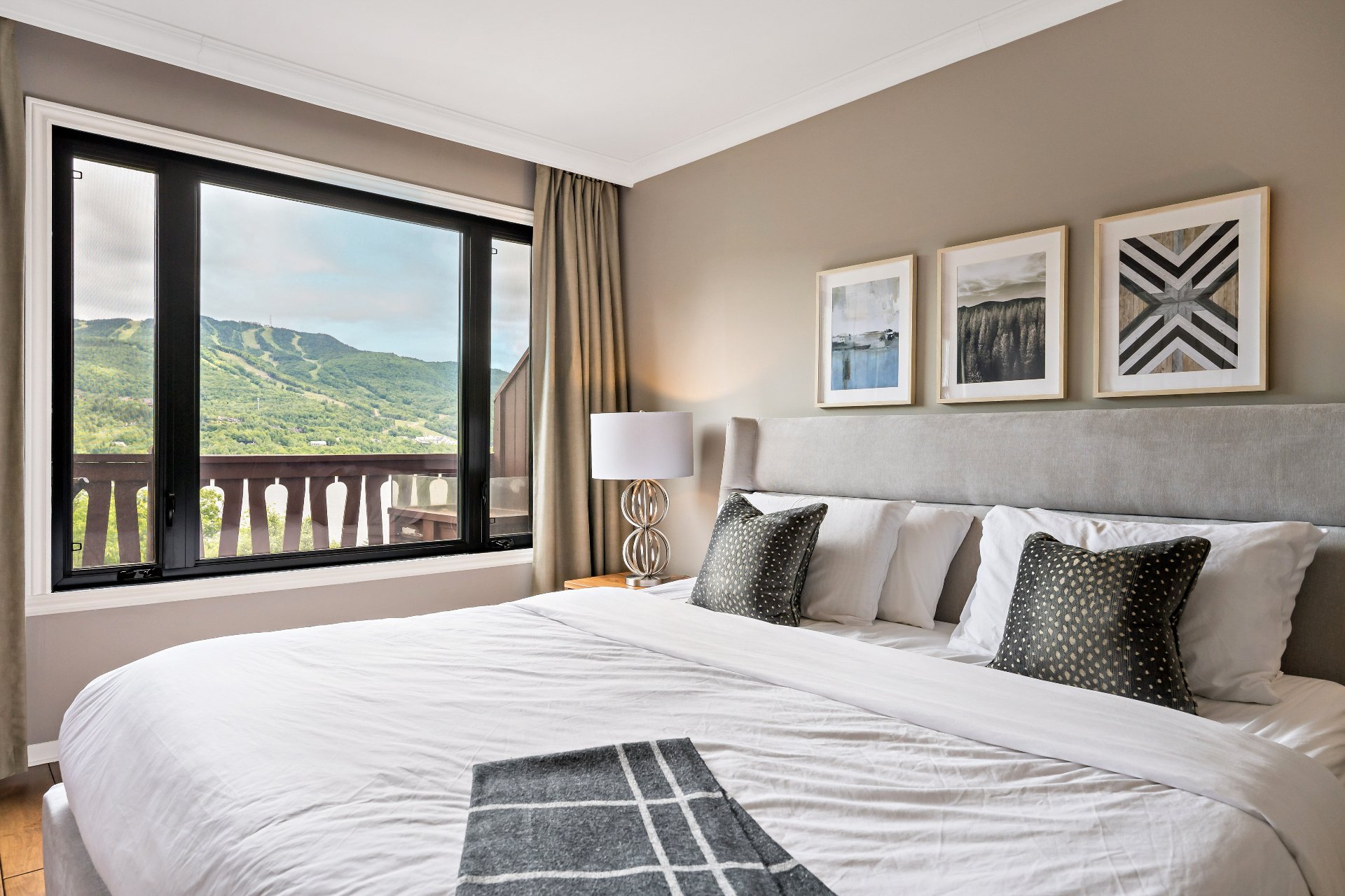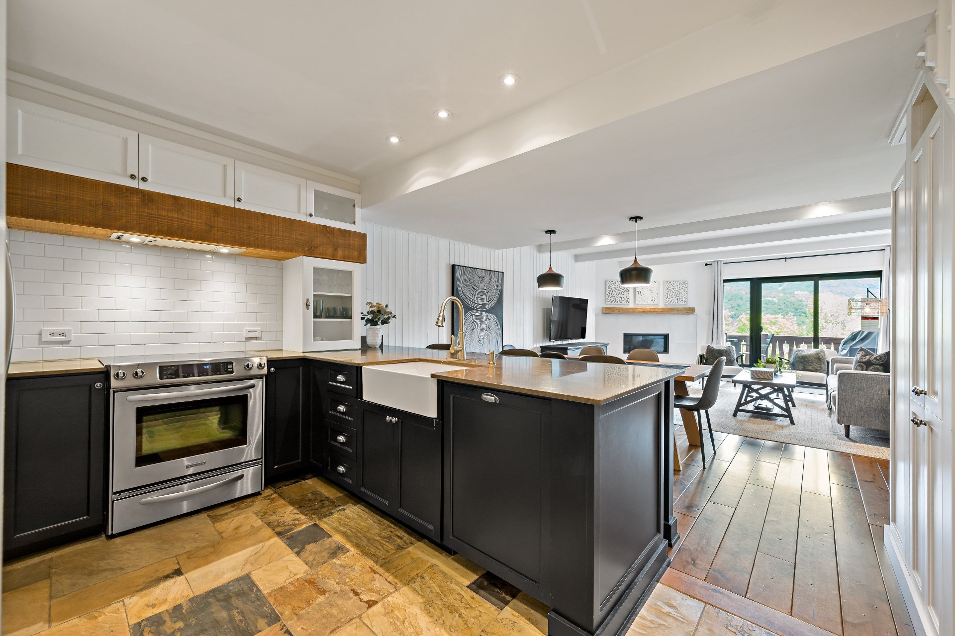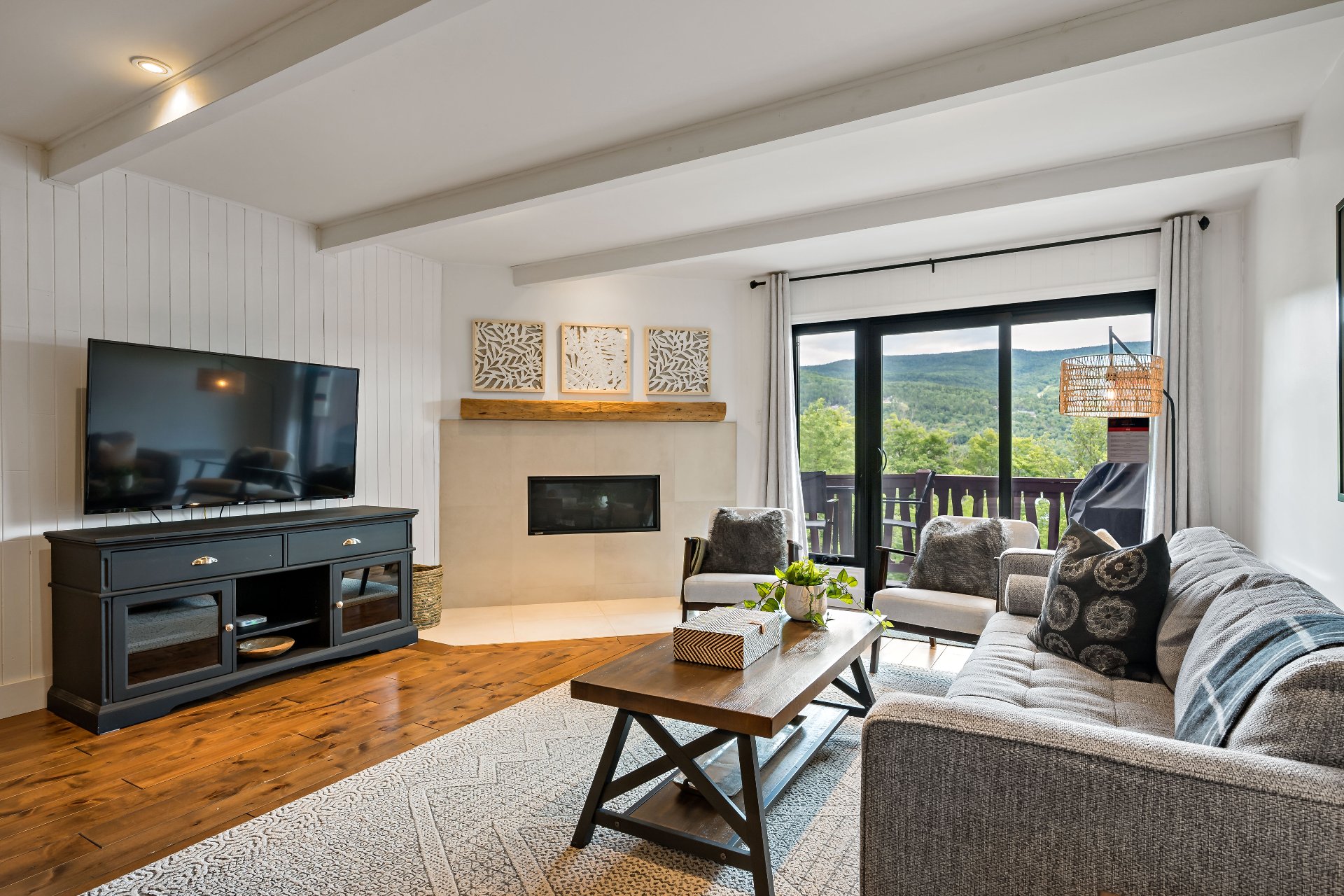 HOTEL DU LAC | Profitez d'un accès exceptionnel au lac Tremblant avec ce condo complètement rénové. Vous serez séduit par sa vue imprenable sur le lac et la montagne, offrant un spectacle magnifique en toute saison. L'intérieur est impeccable, utilisant des matériaux de qualité. Les espaces du premier étage, chaleureux avec foyer et poutres en bois, ajoutent du charme. À l'étage supérieur, découvrez deux chambres et deux salles de bains. Idéalement situé à quelques minutes de la station Mont-Tremblant, ce complexe autorise la location à court terme.