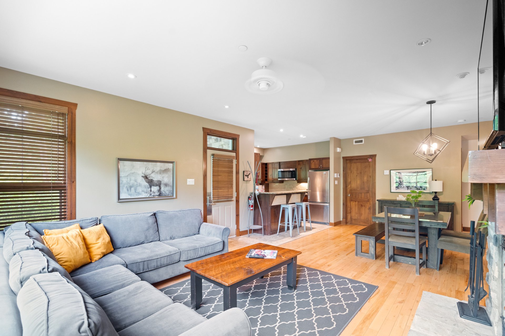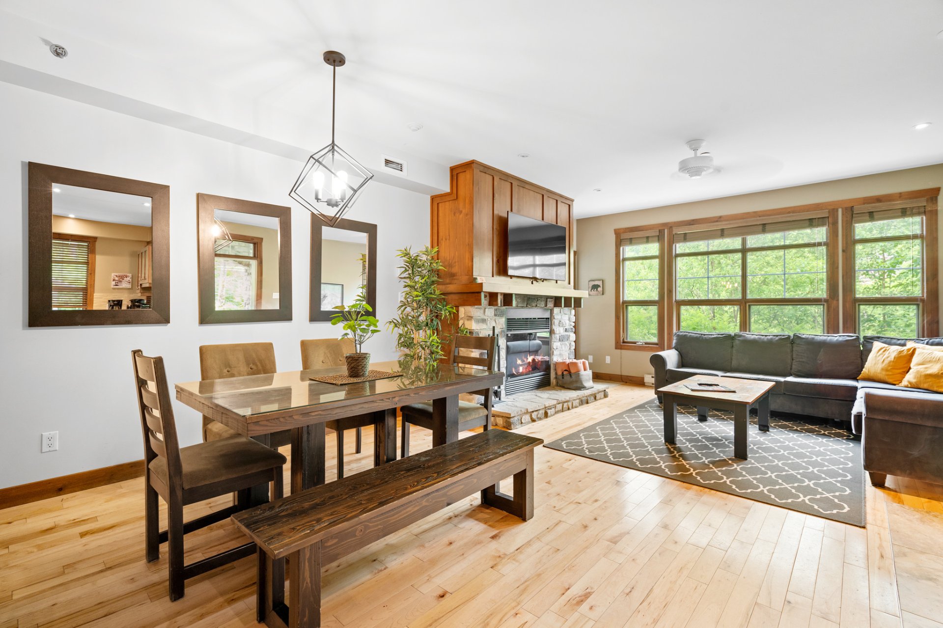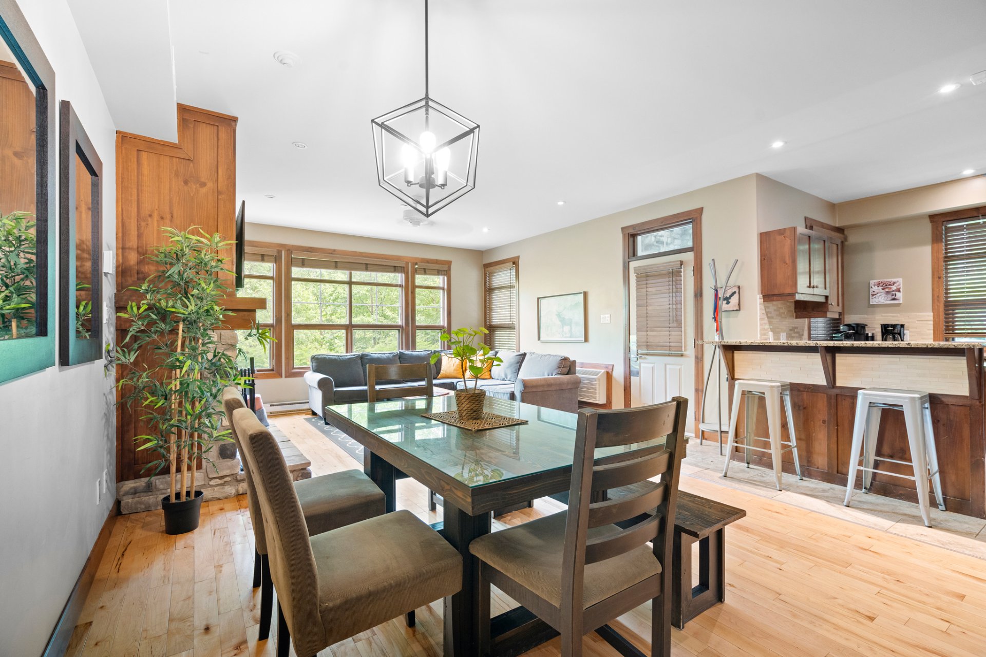 LOCATION COURT TERME AUTORISÉE. Tremblant les eaux ! Condo champêtre offrant confort et élégance ! Terrasse privée, foyer au bois, ambiance chaleureuse, boiseries, concept à aire ouverte, pièces lumineuses, chambre avec porte patio avec vue sur les montagnes, + un DEN avec deux lit double, cuisine raffinée et fonctionnelle. Projet sur Golf le Géant avec piscines creusées, couloirs de nage, bains tourbillons, sauna et plus encore ! Service de navette et à quelques pas de la station et village piétonnier.