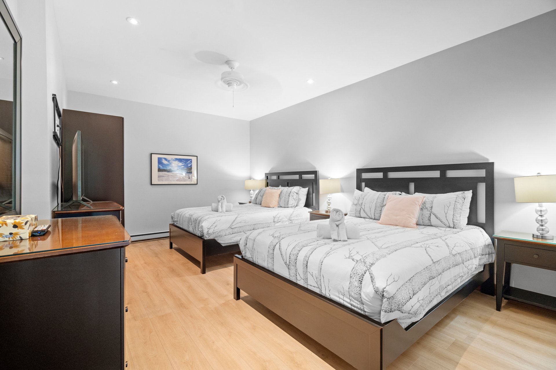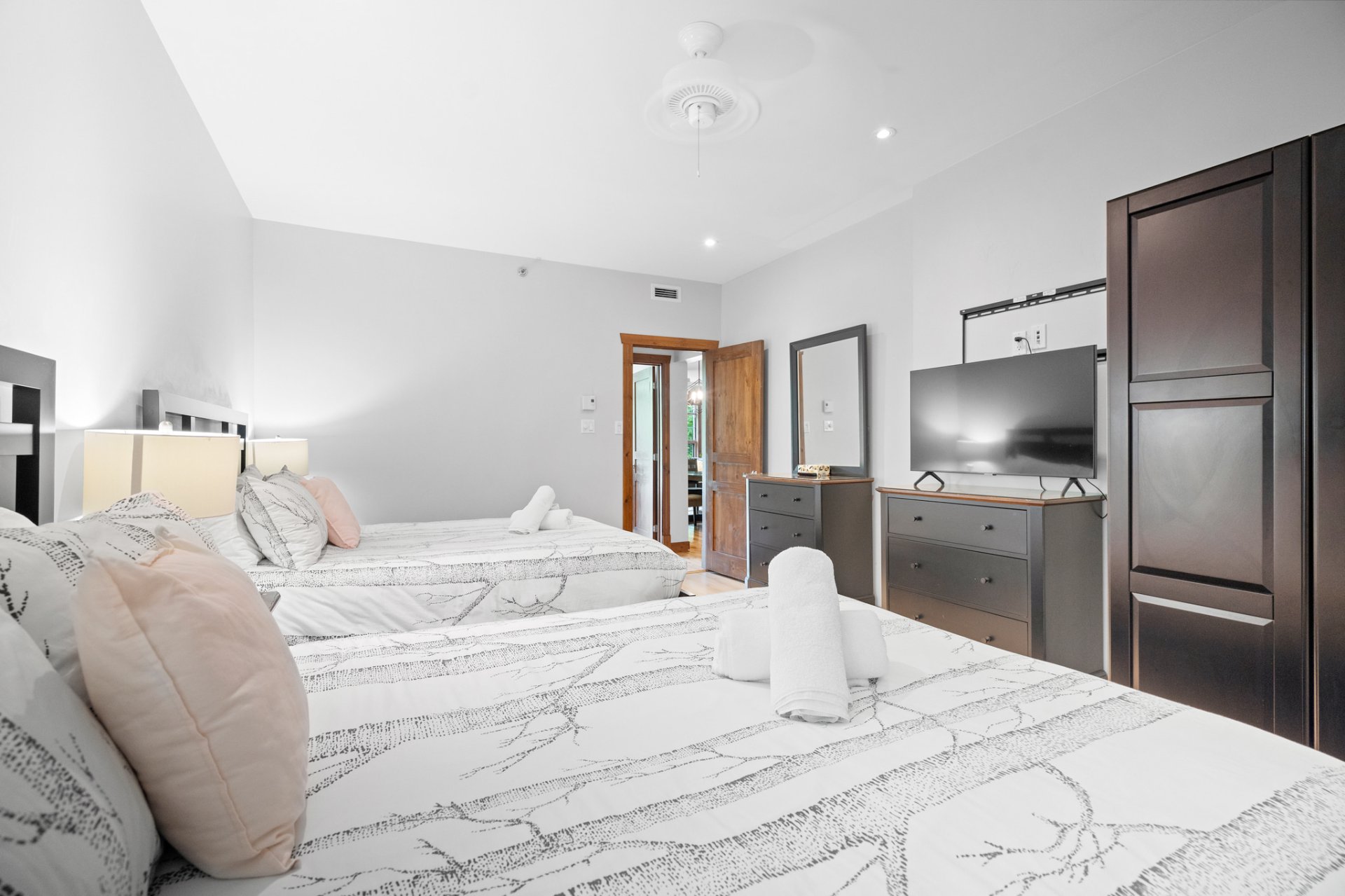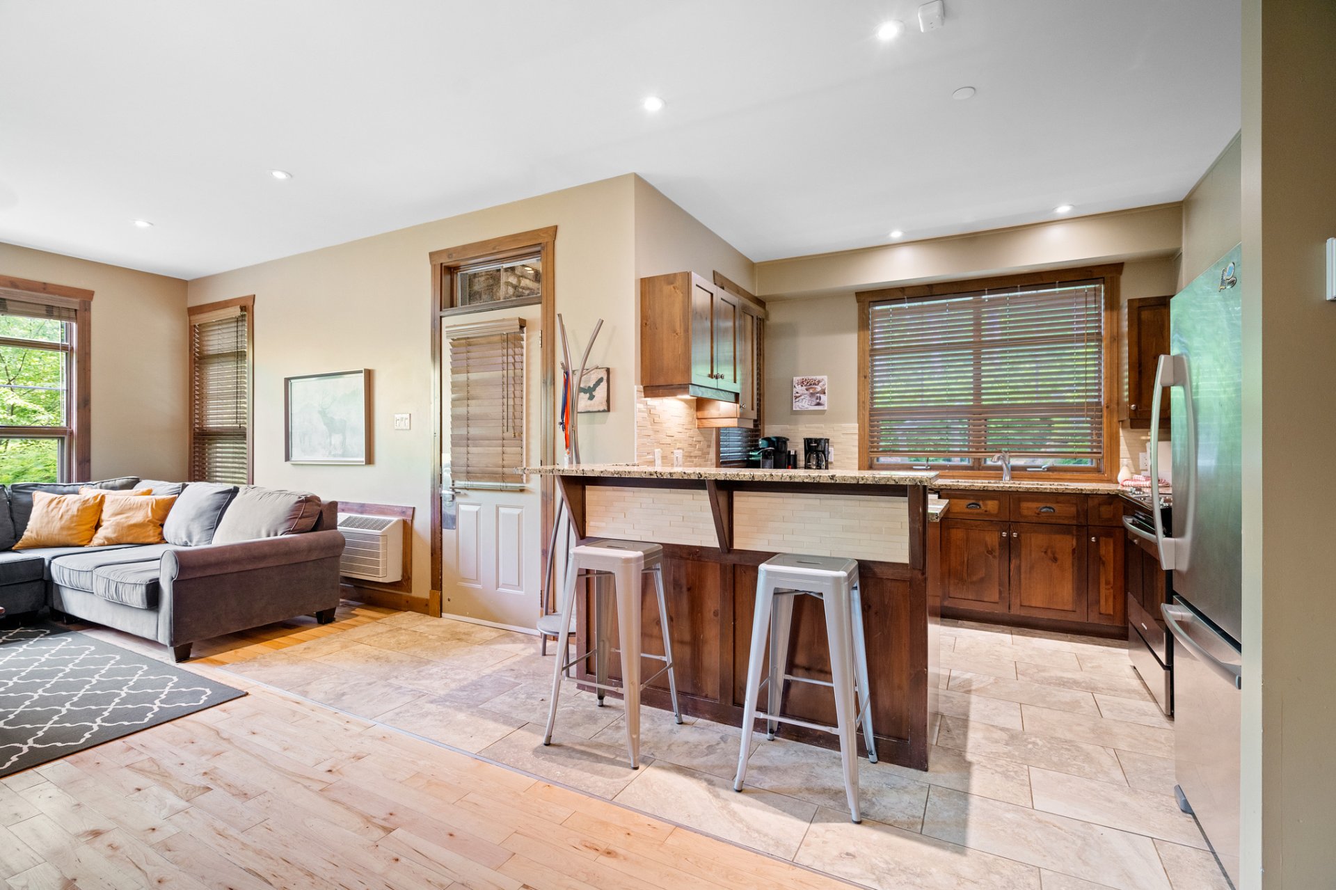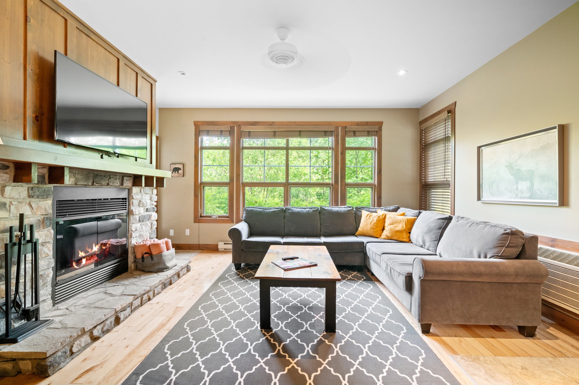 LOCATION COURT TERME AUTORISÉE. Tremblant les eaux ! Condo champêtre offrant confort et élégance ! Terrasse privée, foyer au bois, ambiance chaleureuse, boiseries, concept à aire ouverte, pièces lumineuses, chambre avec porte patio avec vue sur les montagnes, + un DEN avec deux lit double, cuisine raffinée et fonctionnelle. Projet sur Golf le Géant avec piscines creusées, couloirs de nage, bains tourbillons, sauna et plus encore ! Service de navette et à quelques pas de la station et village piétonnier.