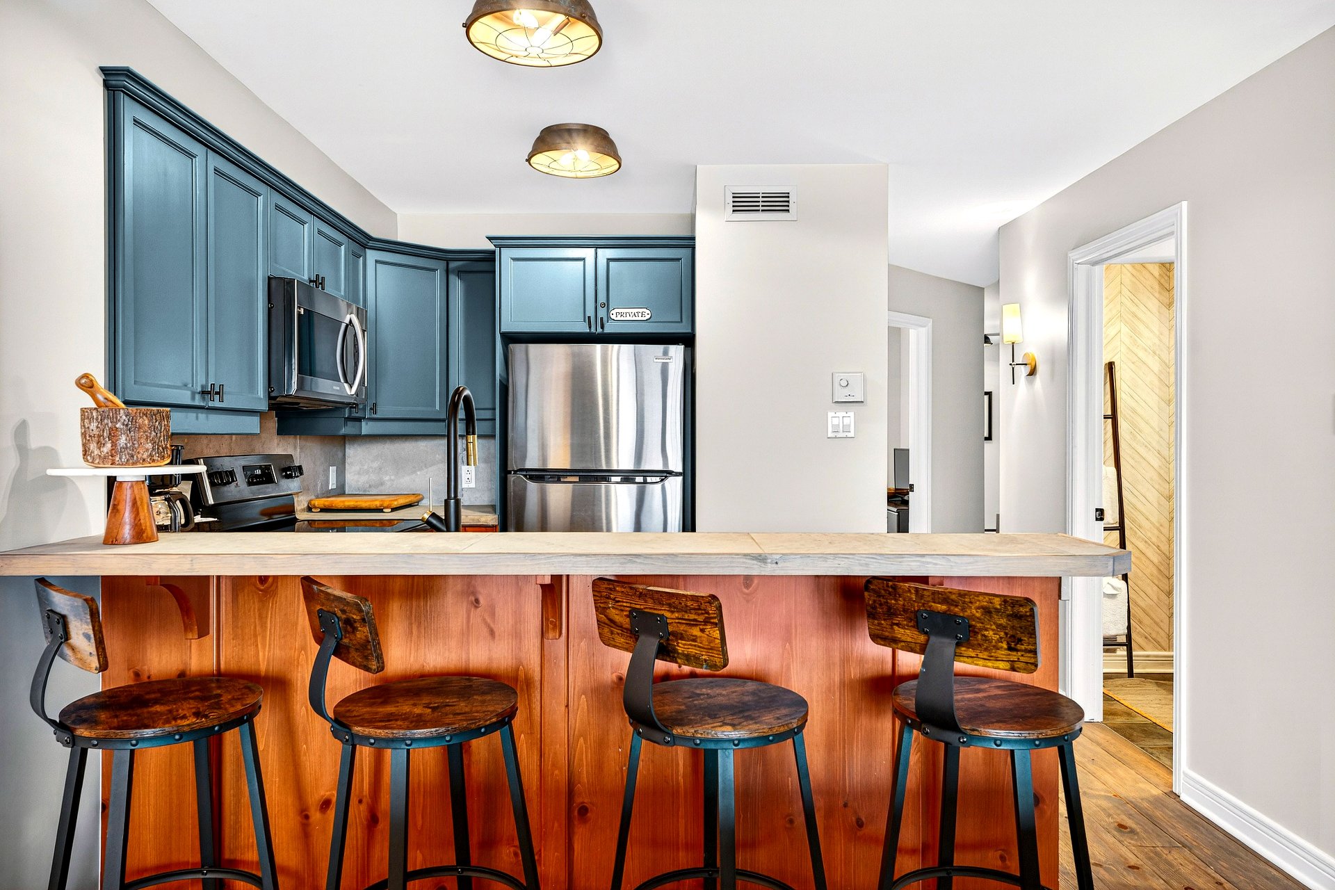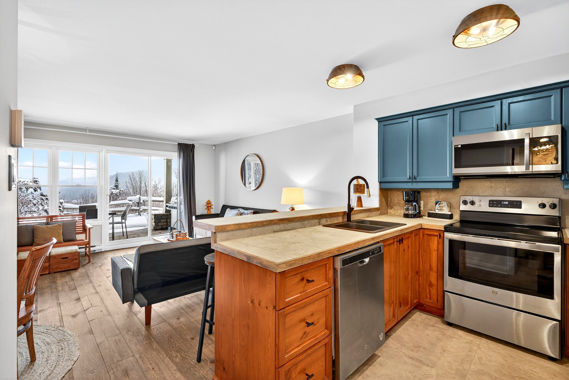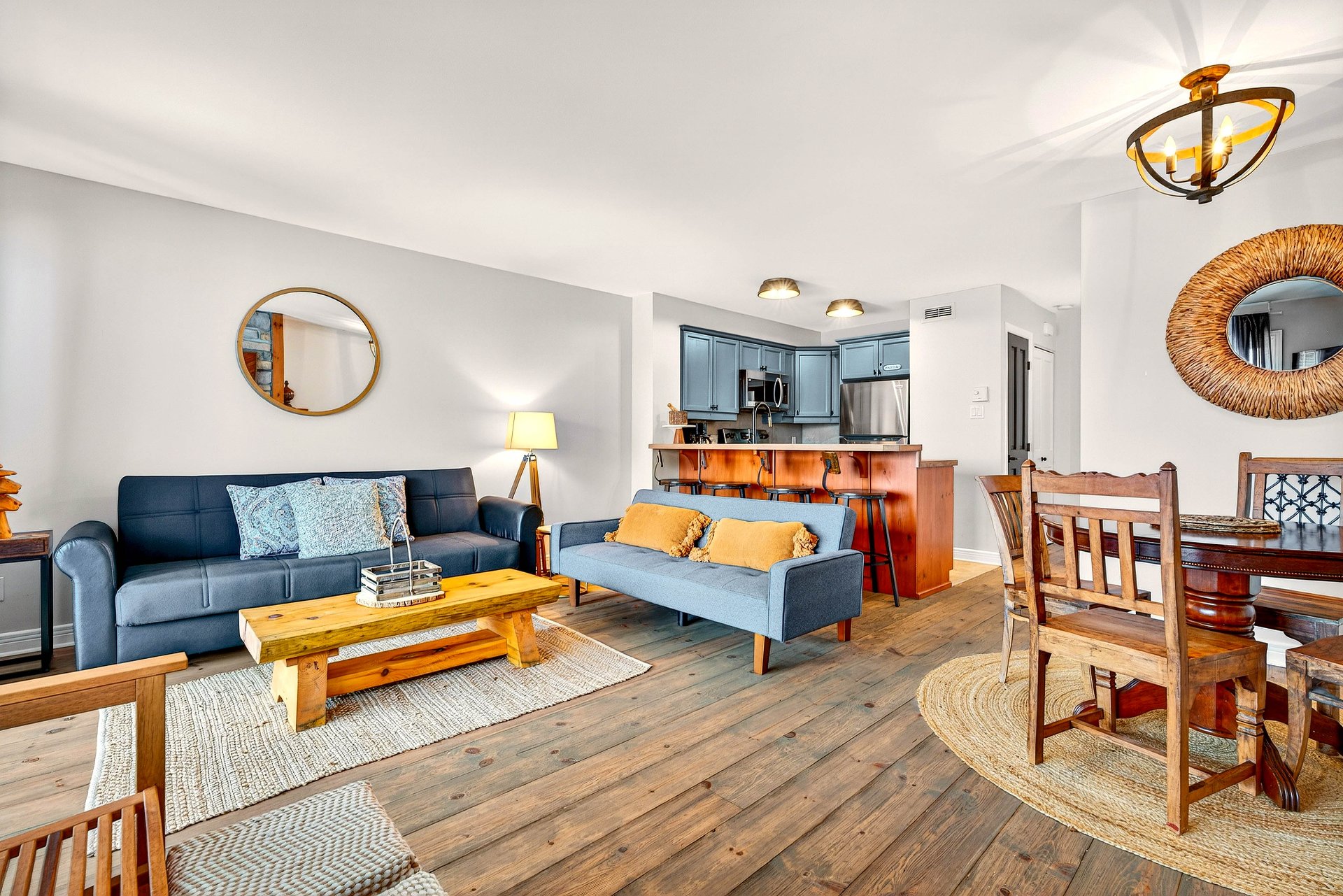The ideal pied-à-terre for making the most of the ski season! This charming apartment, located in the heart of Mont-Tremblant, boasts a warm atmosphere and a superb outdoor terrace. You also have access to swimming pools, a well-equipped gym, a dry sauna and magnificent hiking trails nearby. Short-term rentals are permitted, making this an excellent investment opportunity.