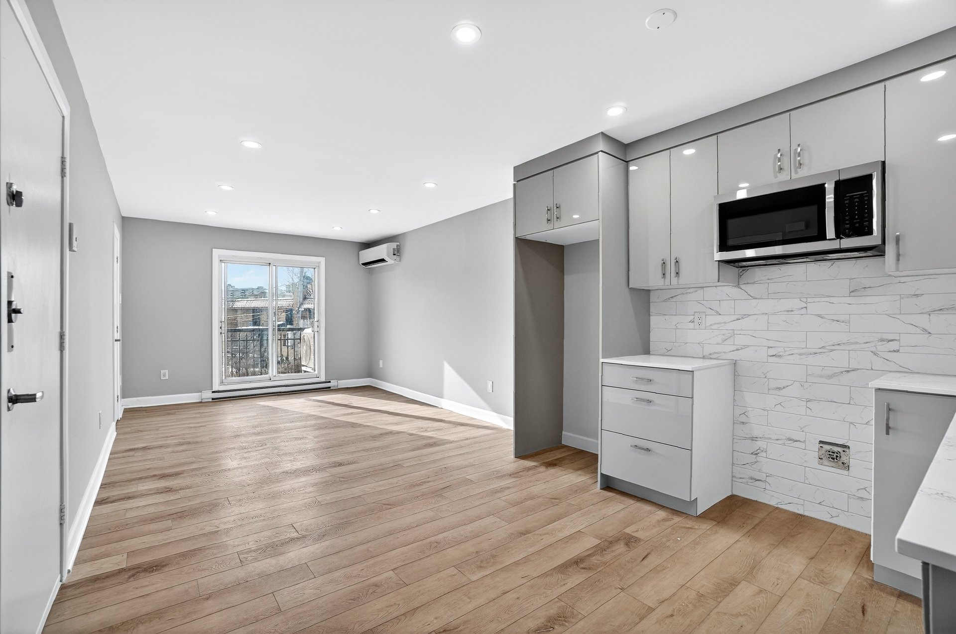 bright unit features 2 closed bedrooms and a living room