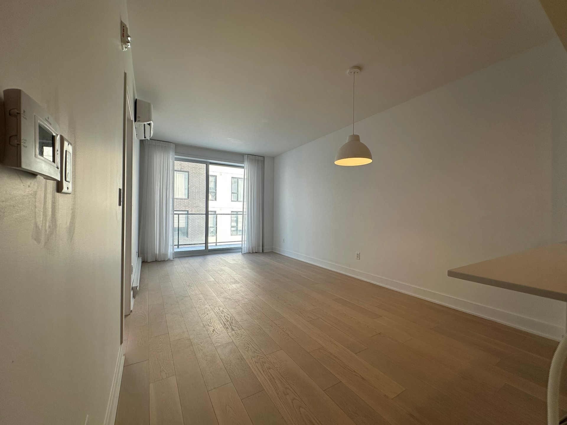 Condominium Crown nouvelle construction. Proche de toutes les commodités. Situé au troisième étage avec garage. ce condo à aire ouverte possède une grande fenestration pour maximum luminosité, balcon privé, ascenseur et A/C. localisation parfaite proche de tous les transports, Metro et a 5 min du marché central Adonis et autres. Immeuble complètement neuf avec GYM et terrasse sur le toit. Dossier de crédit, preuve de Revenu seront requis, pas d'animaux et non-fumeur. Électroménagers inclus.