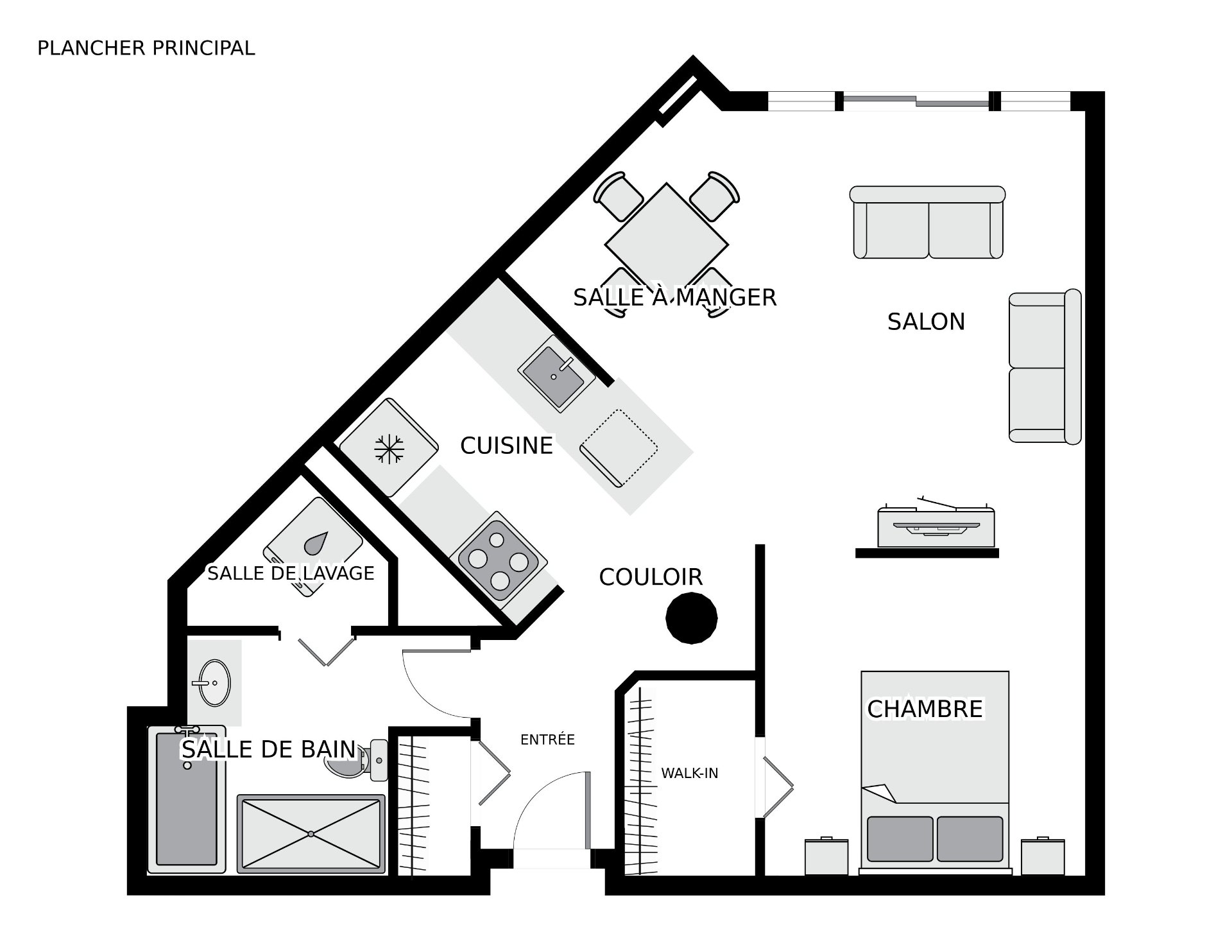 Luminaires, rideaux, lave-vaisselle, cuisinière, réfrigérateur, laveuse et sécheuse