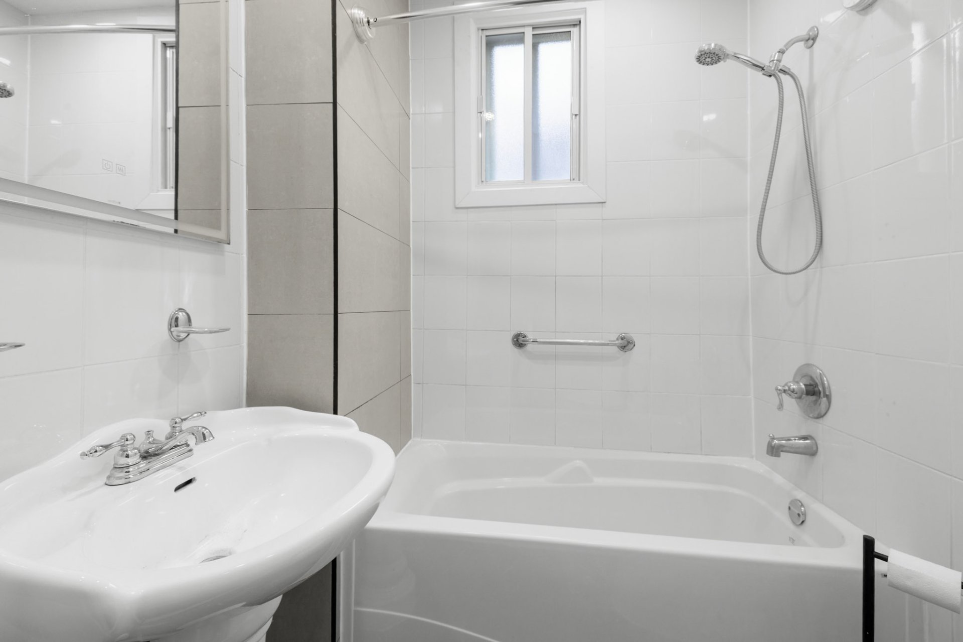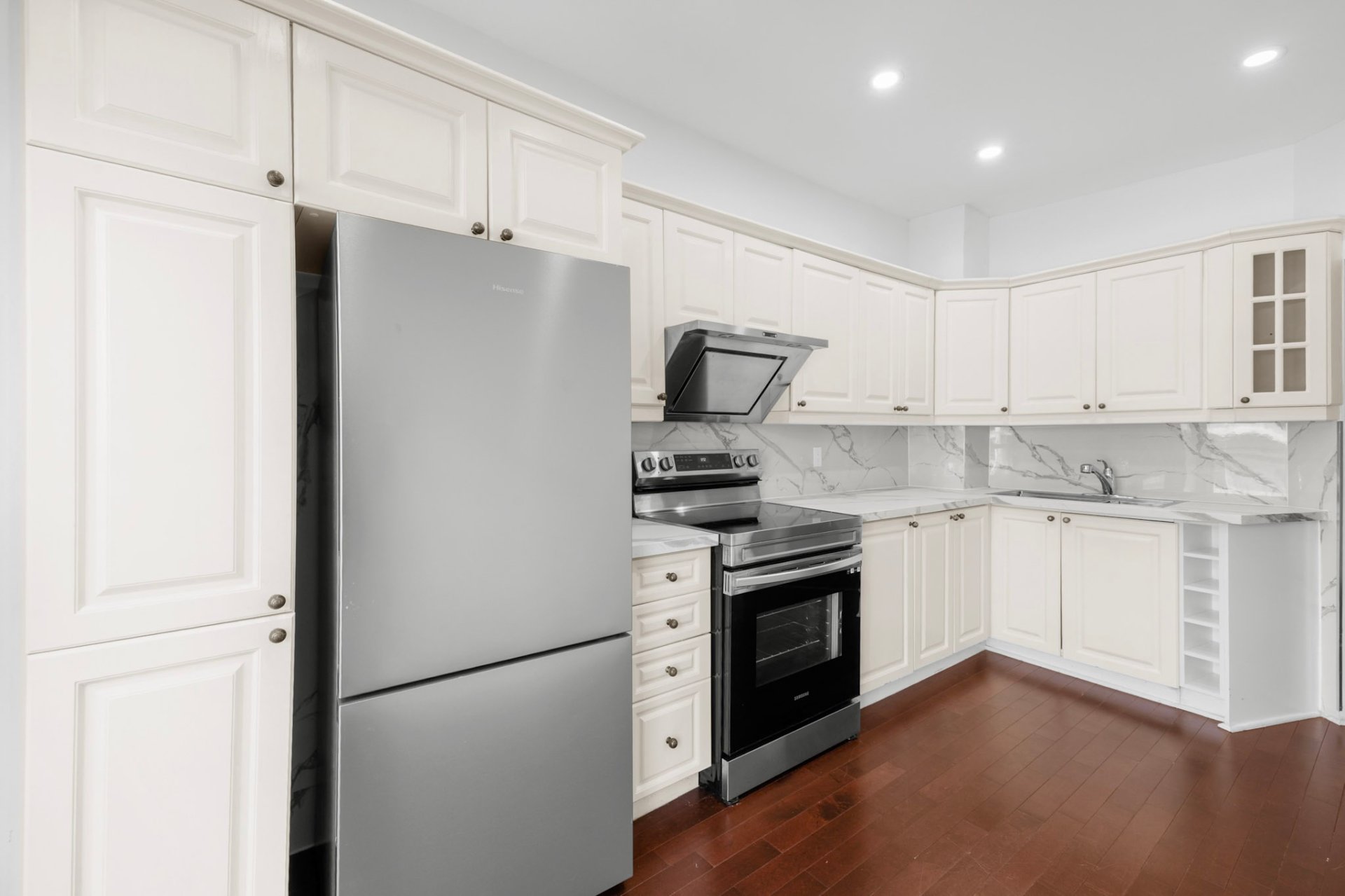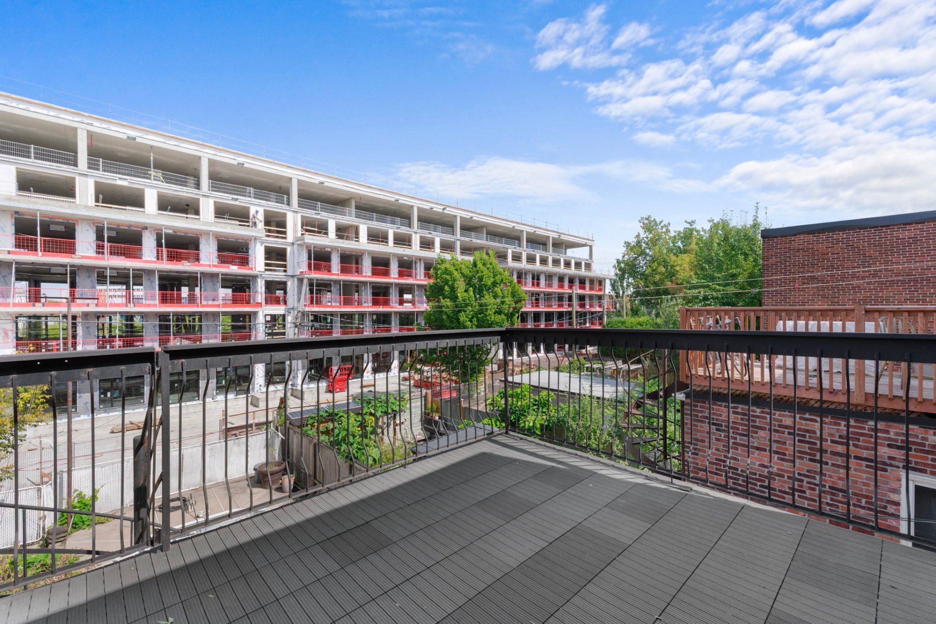 2 bedroom + office recently renovated upper duplex! From the entrance, the living room welcomes you at the front of the apartment. The beautiful up-to-date kitchen is on the opposite side and even gives you access to a large sunny terrace! The kitchen is a good size and allows for a dining area. The master bedroom has a walk-in closet as well as an adjoining bathroom with a shower. The second bedroom has no wardrobe but it is possible to install PAX storage units and the third closed room is very practical as a home office. The family bathroom has a combined bath/shower.