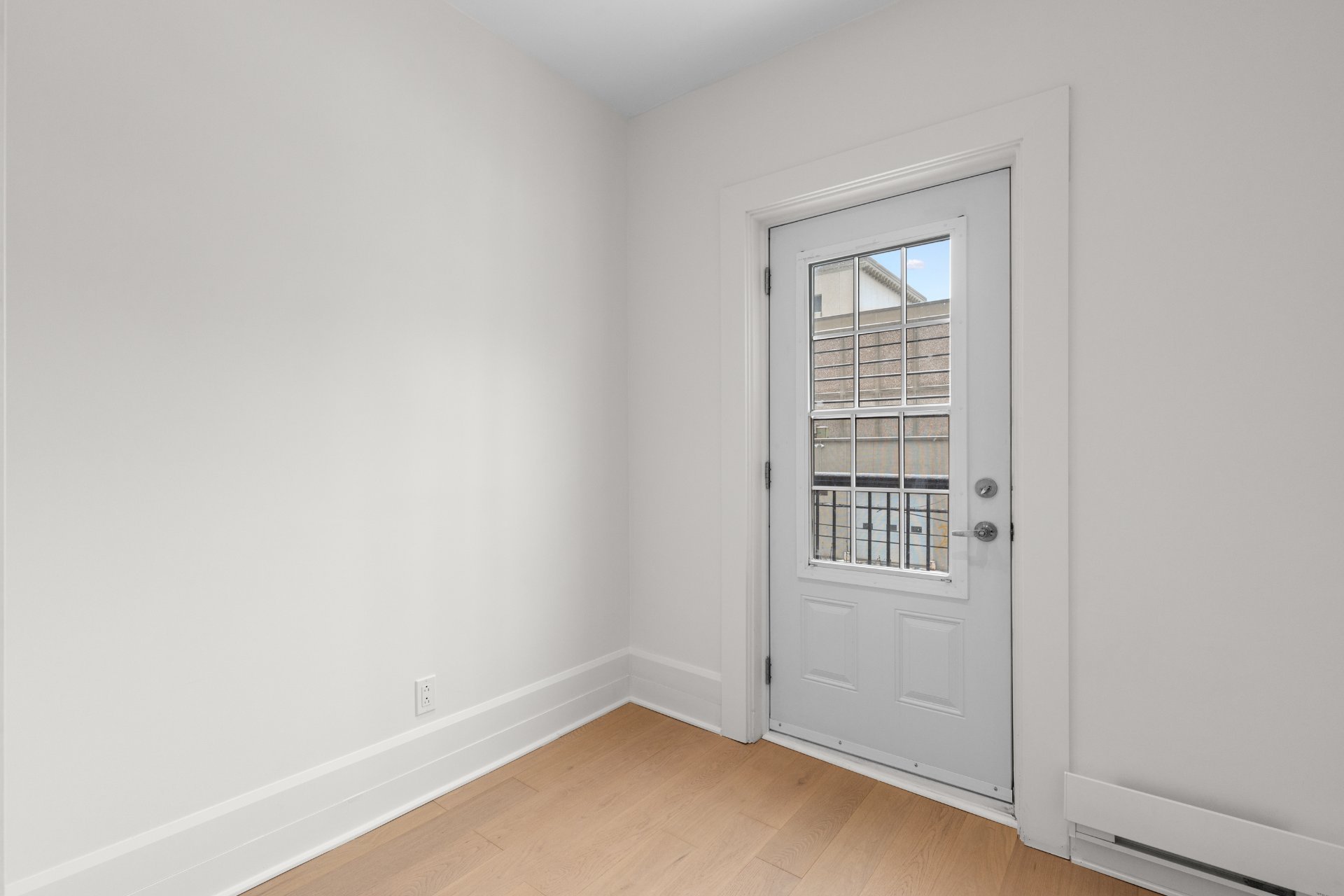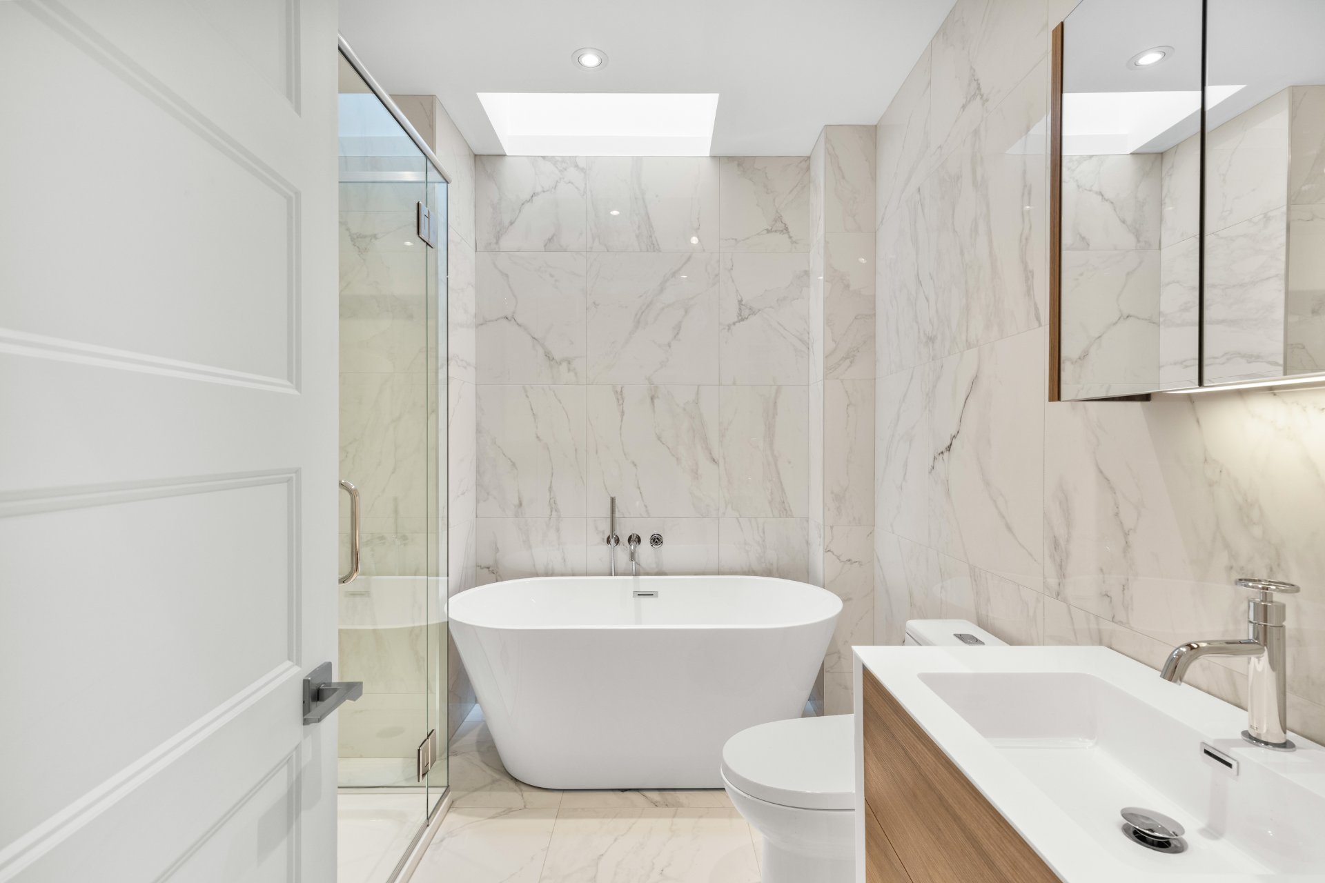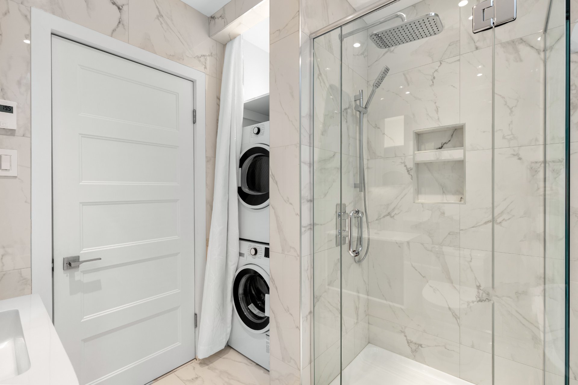 Magnificent undivided condo that blends modern luxury with timeless charm. Throughout the space, beautiful oak engineered floors add warmth and character, complementing the high 9' ceilings and abundance of natural light for an inviting atmosphere. The luxury bathroom is a sanctuary, featuring heated floors and refined finishes that exude elegance. With two bedrooms, the primary bedroom offers a powder room ensuite, full height closet to provide convenience and privacy. With two balconies and one (1) outdoor private parking space you have all the amenities that are so rare to find in one complete package. One look will have you charmed!