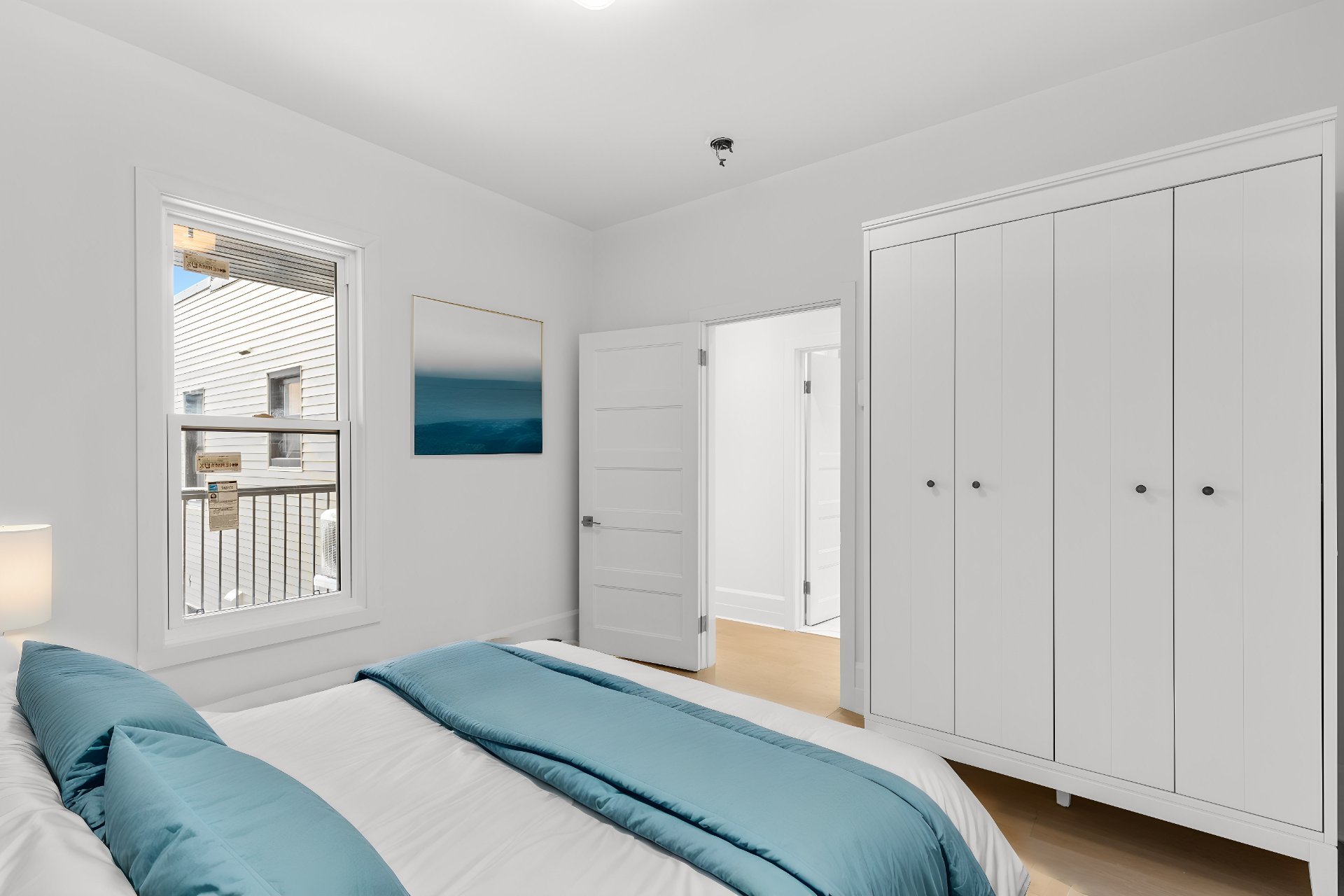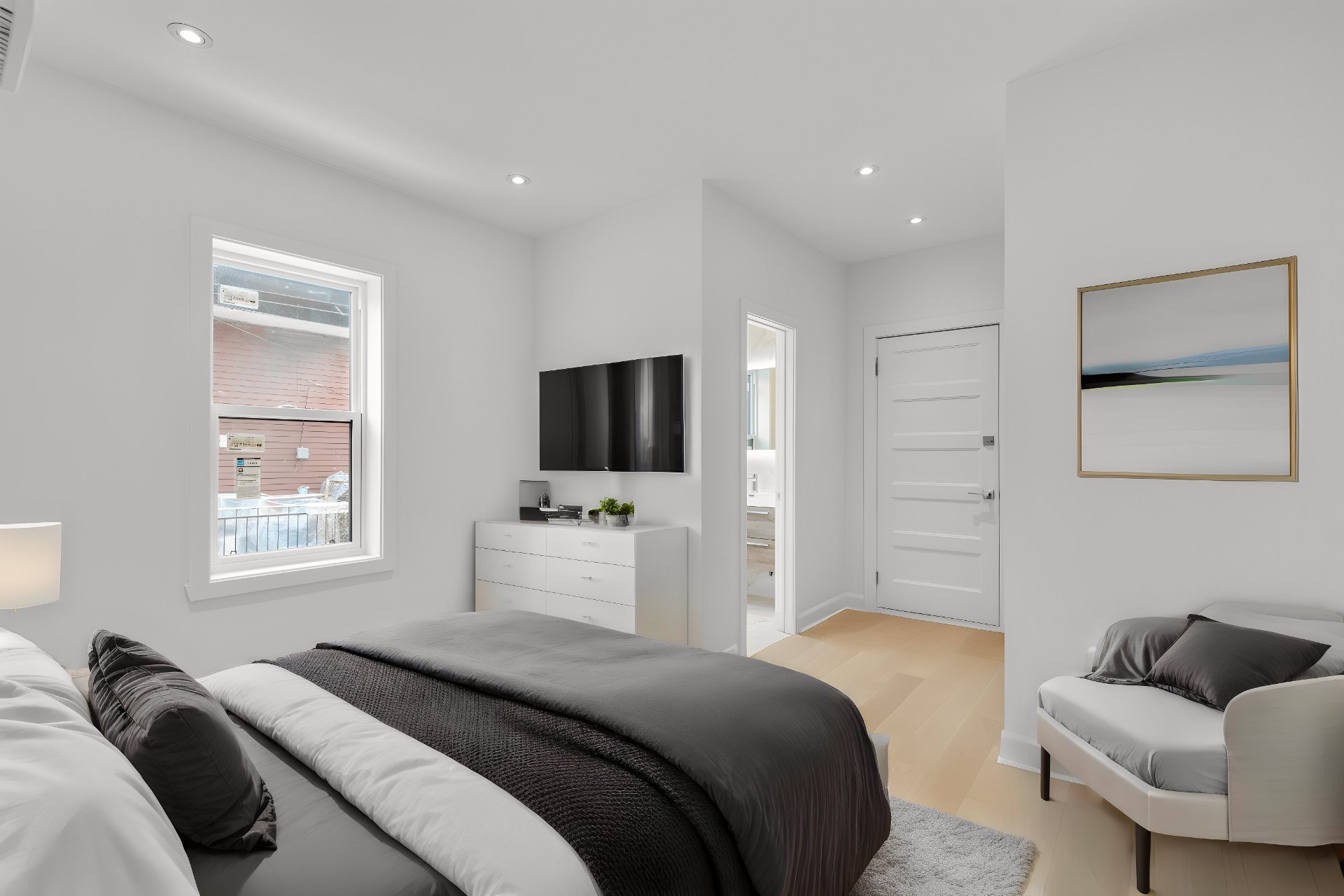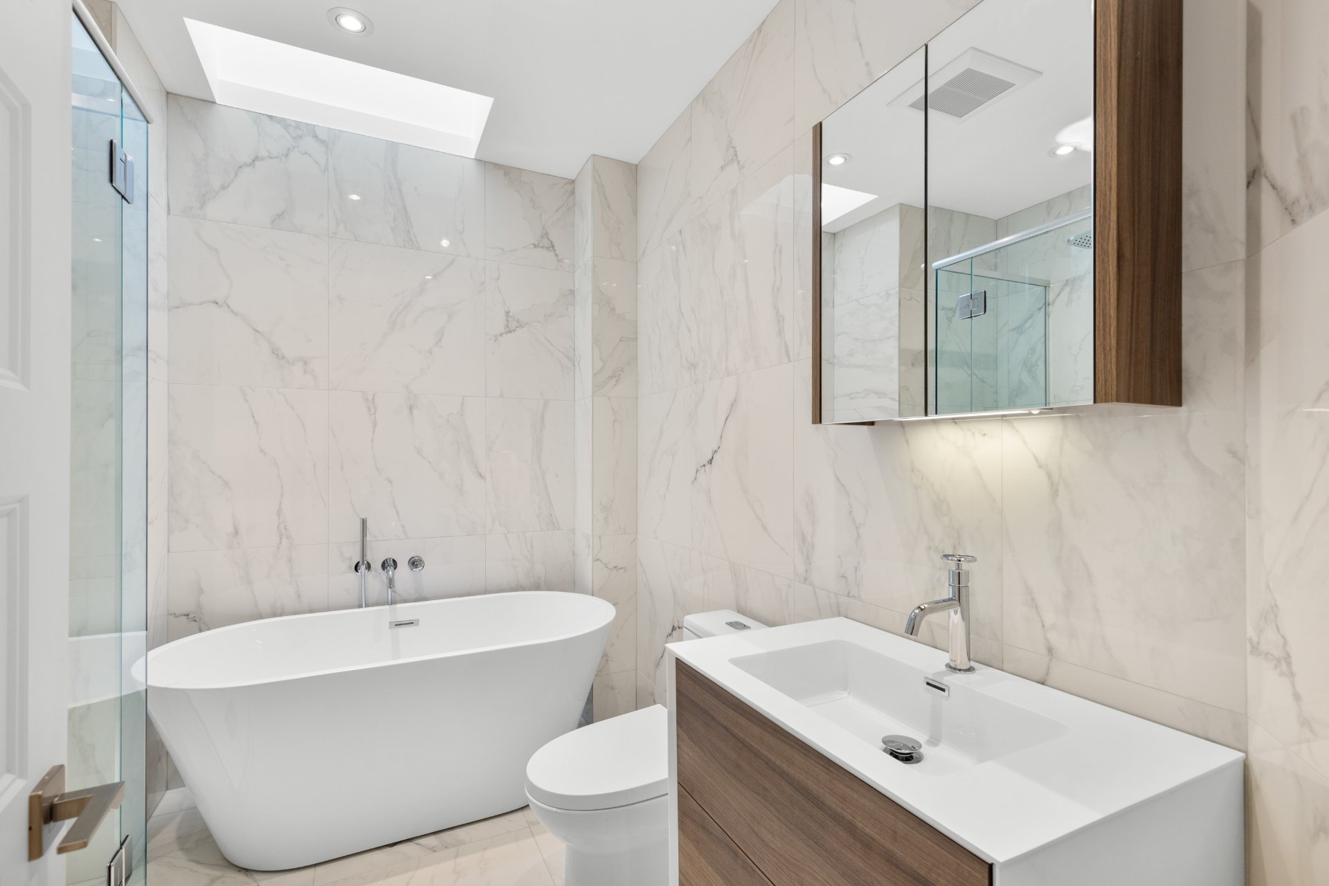 Magnificent undivided condo that blends modern luxury with timeless charm. Throughout the space, beautiful oak engineered floors add warmth and character, complementing the high 9' ceilings and abundance of natural light for an inviting atmosphere. The luxury bathroom is a sanctuary, featuring heated floors and refined finishes that exude elegance. With two bedrooms, the primary bedroom offers a powder room ensuite, full height closet to provide convenience and privacy. With two balconies and one (1) outdoor private parking space you have all the amenities that are so rare to find in one complete package. One look will have you charmed!