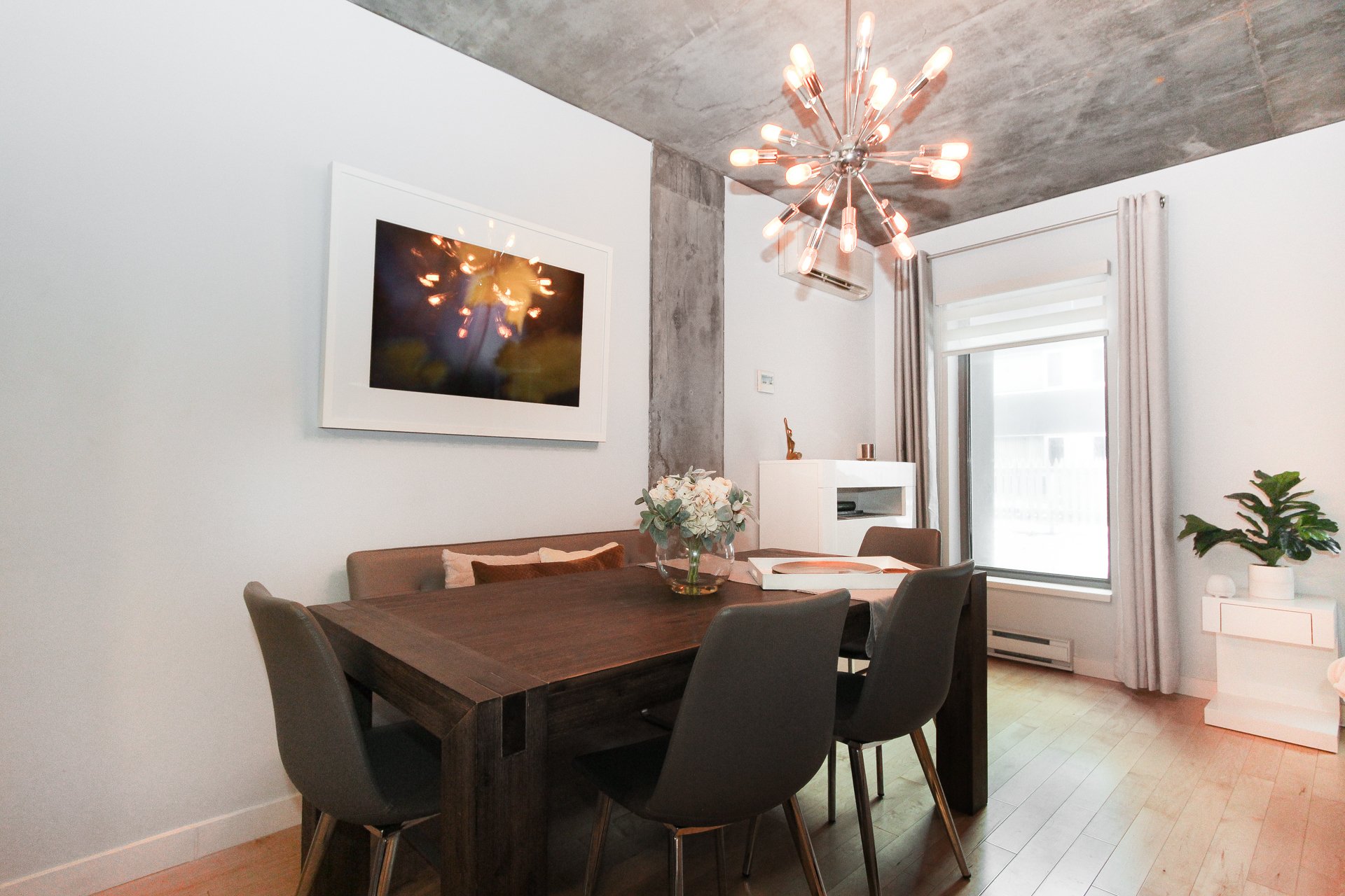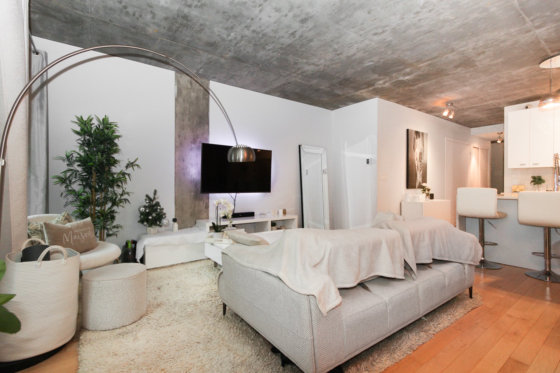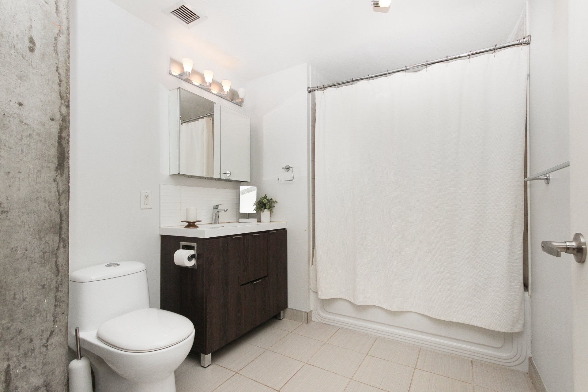 Exquisitely furnished large 1 bedroom apartment equipped with: ** Private entrance. ** Heating and air conditioning by geothermal energy included in the rent. ** Concrete structure, superior soundproofing. **WIFI ** 2 facades; windows at the front and rear. ** 1 INDOOR PARKING PLACE INCLUDED. ** Large terrace with furniture, with lovely view over the landscaped garden. ** Very low electricity costs! Conditional to satisfactory proof of employment and credit check by Oligny & Thibodeau. Tenant must comply to the building bylaws and maintain civil liability insurance up to $2M for the duration of the lease. No smokers, small dogs accepted.