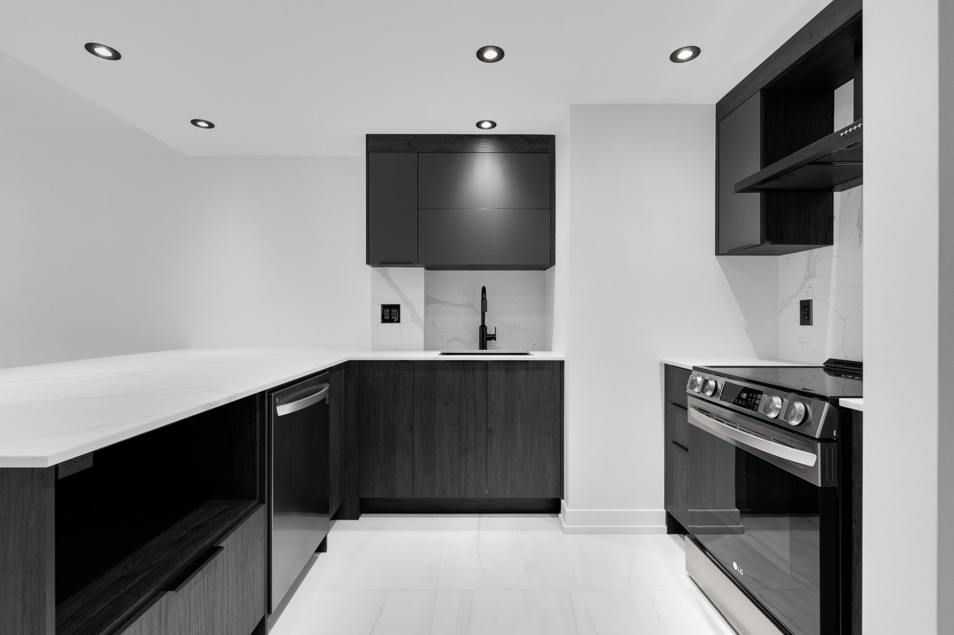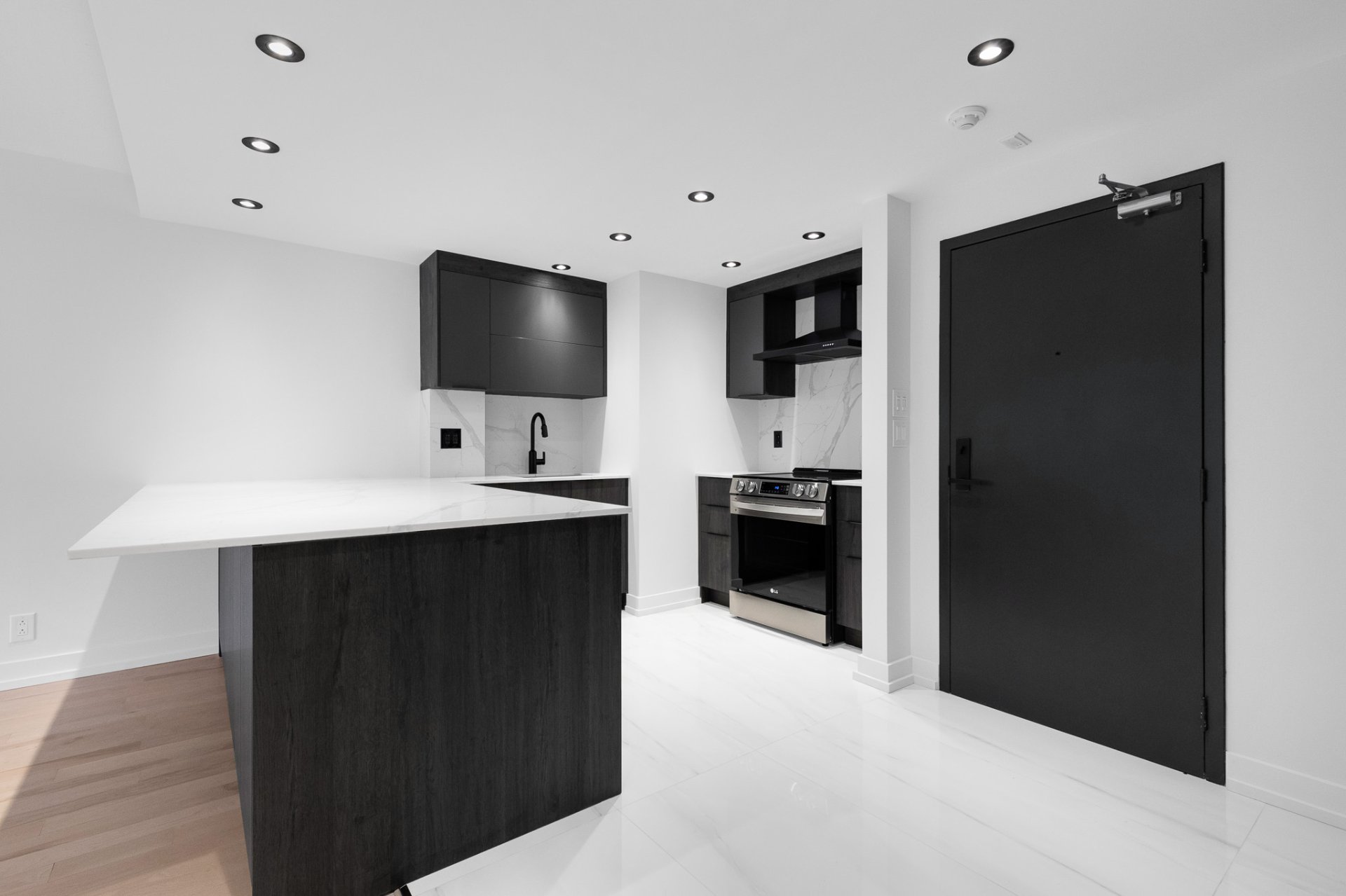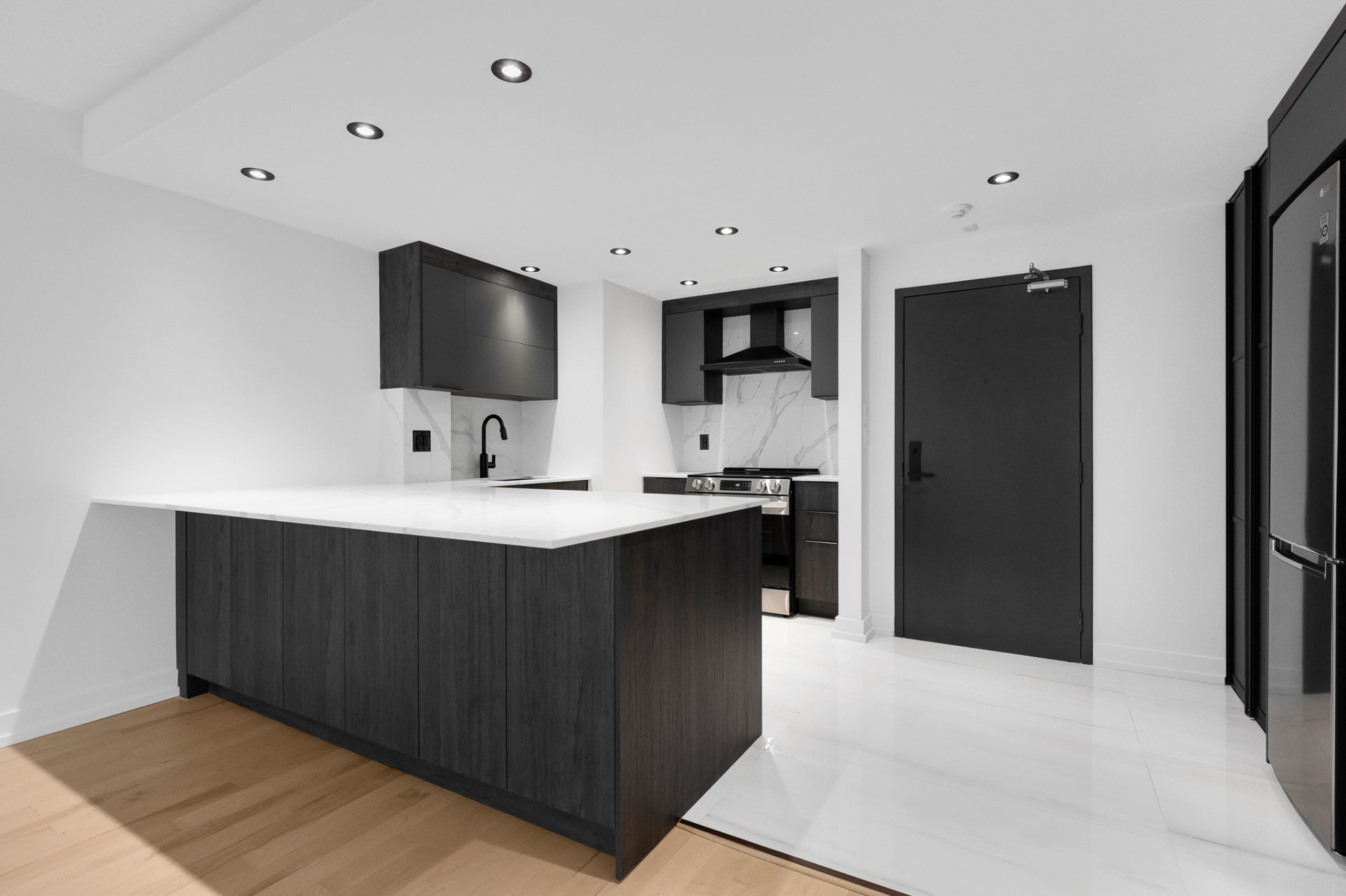 Charming, recently renovated one-bedroom, one-bathroom rental unit equipped with high-end appliances. Heating and hot water are included in the rent for optimal comfort. Bright and elegant, the unit is distinguished by its meticulous finishes and warm ambiance. Located on a private cul-de-sac, it offers a peaceful and verdant setting. The open-concept kitchen with quartz countertops will delight cooking enthusiasts. A beautiful terrace surrounded by mature trees and an indoor parking complete the package.
