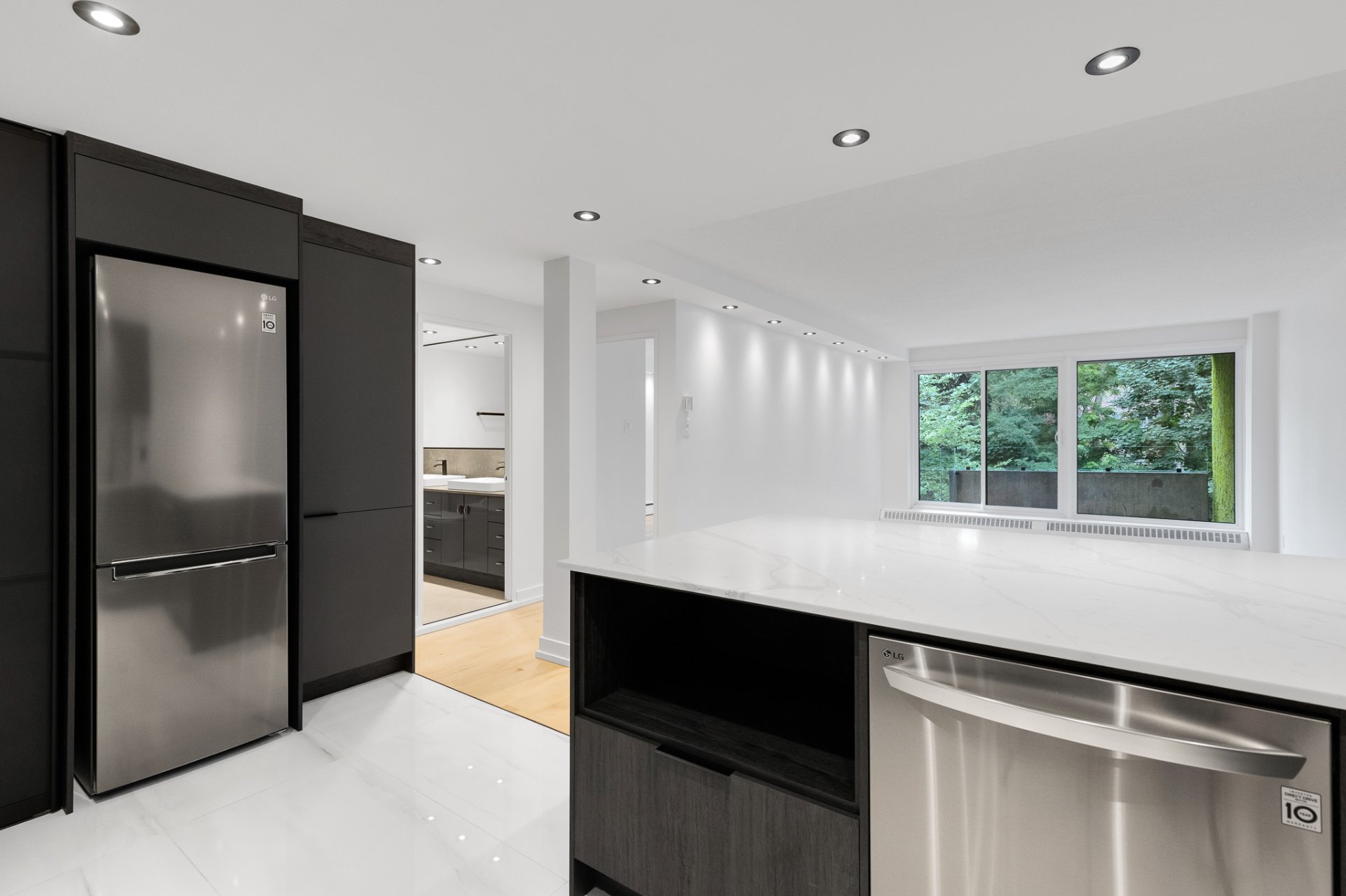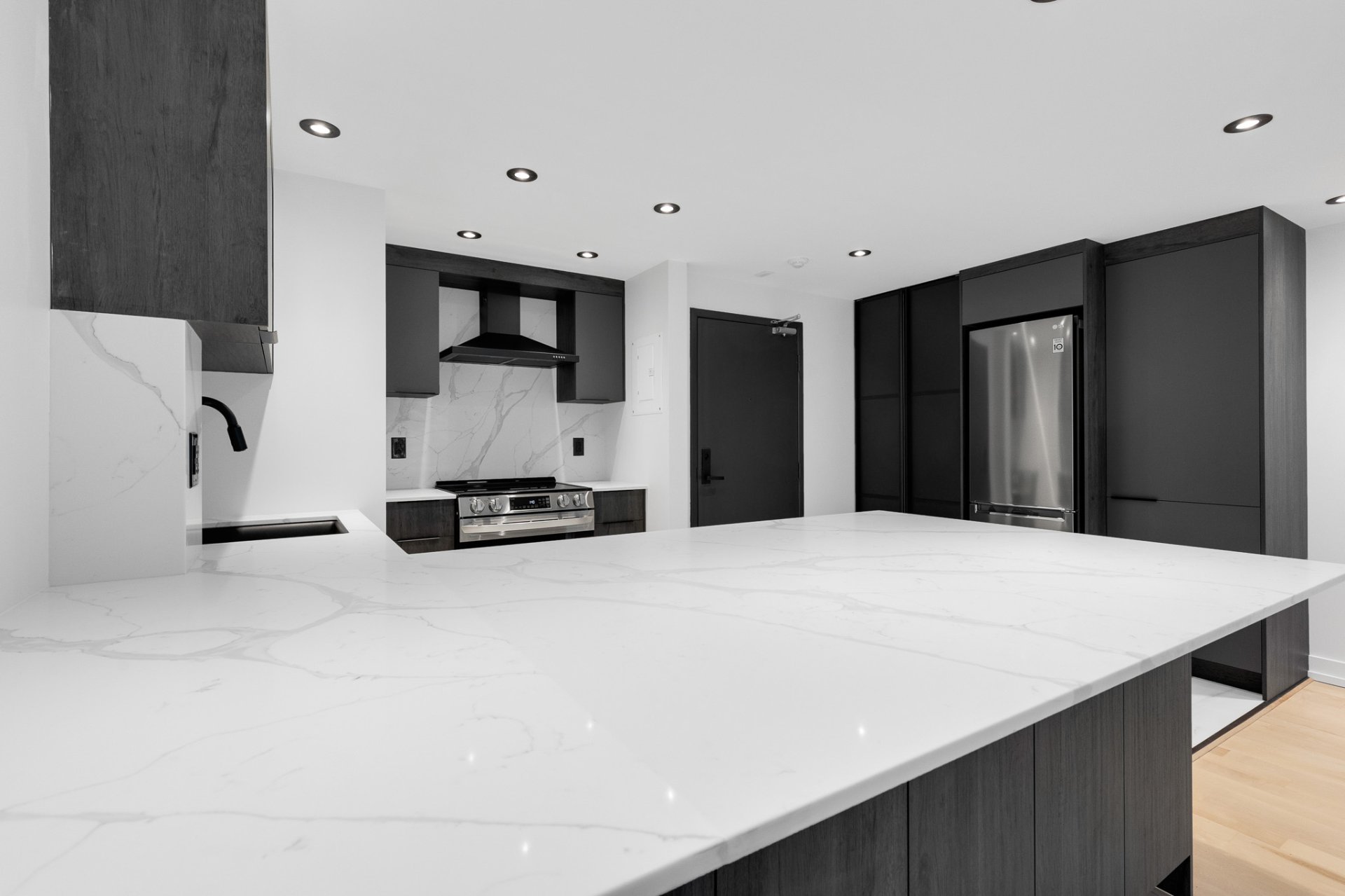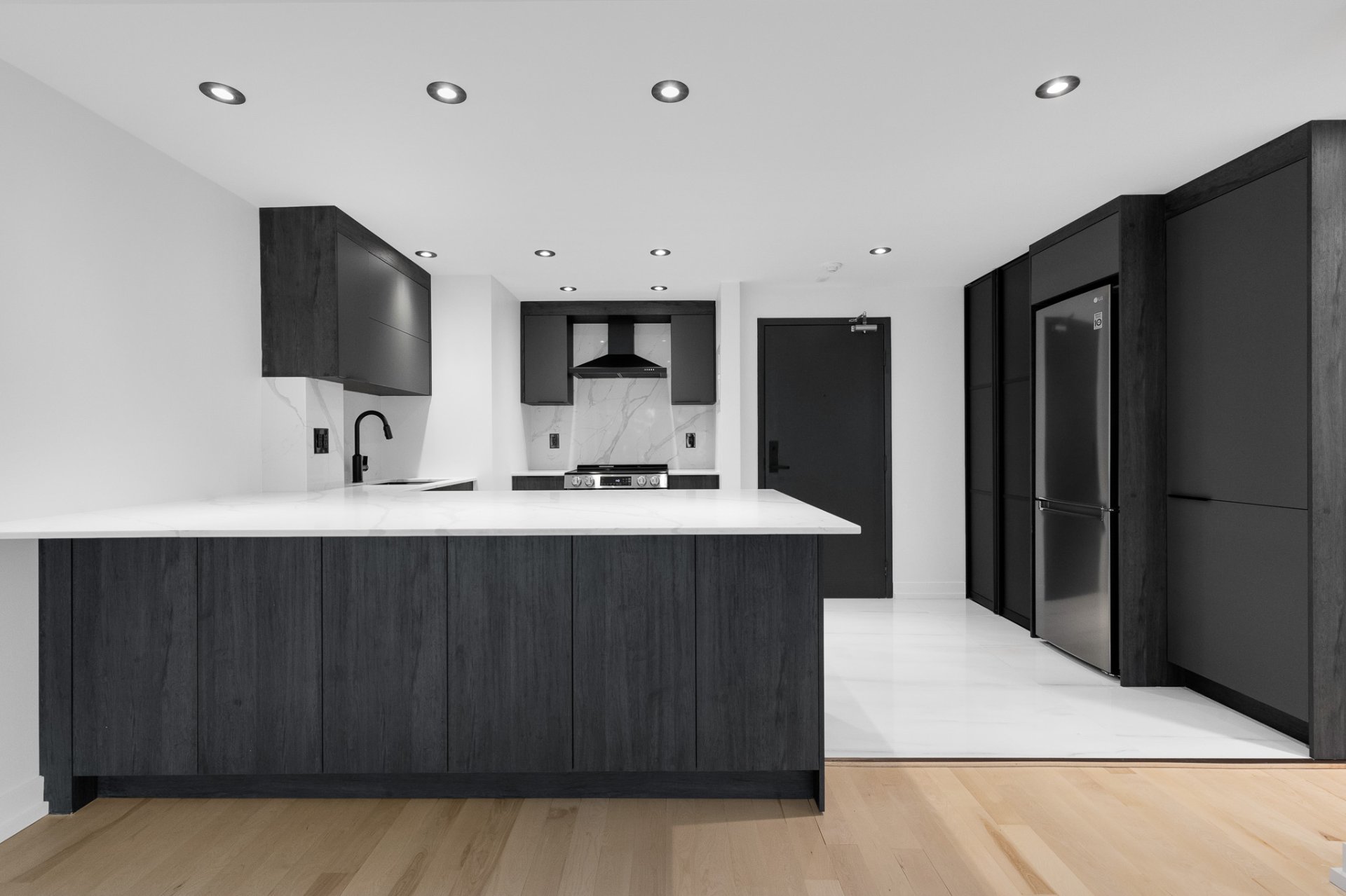 Charming, recently renovated one-bedroom, one-bathroom rental unit equipped with high-end appliances. Heating and hot water are included in the rent for optimal comfort. Bright and elegant, the unit is distinguished by its meticulous finishes and warm ambiance. Located on a private cul-de-sac, it offers a peaceful and verdant setting. The open-concept kitchen with quartz countertops will delight cooking enthusiasts. A beautiful terrace surrounded by mature trees and an indoor parking complete the package.