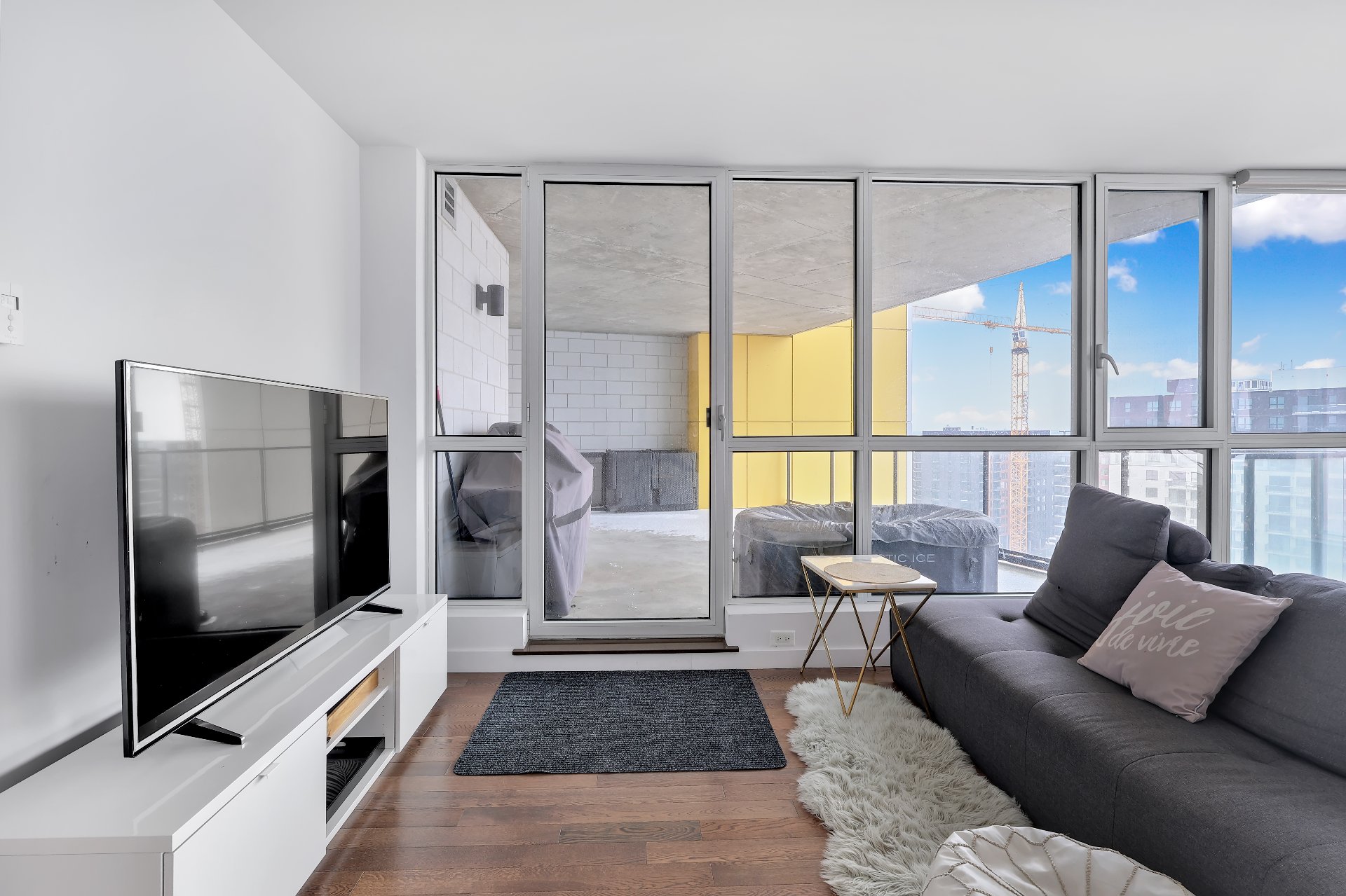 *Furnished or semi-furnished* Located on the 14th floor of the prestigious EQ8 project, just a short walk from all services & amenities, Park Angrignon, Carrefour Angrignon, and the metro. This superb condo offers breathtaking panoramic views and magnificent sunsets. Fully furnished and bathed in light, it offers two bedrooms, two full bathrooms, and a modern open-concept living space. Its huge balcony offers privacy and comfort. Parking and indoor storage complete the package. Quick occupancy!