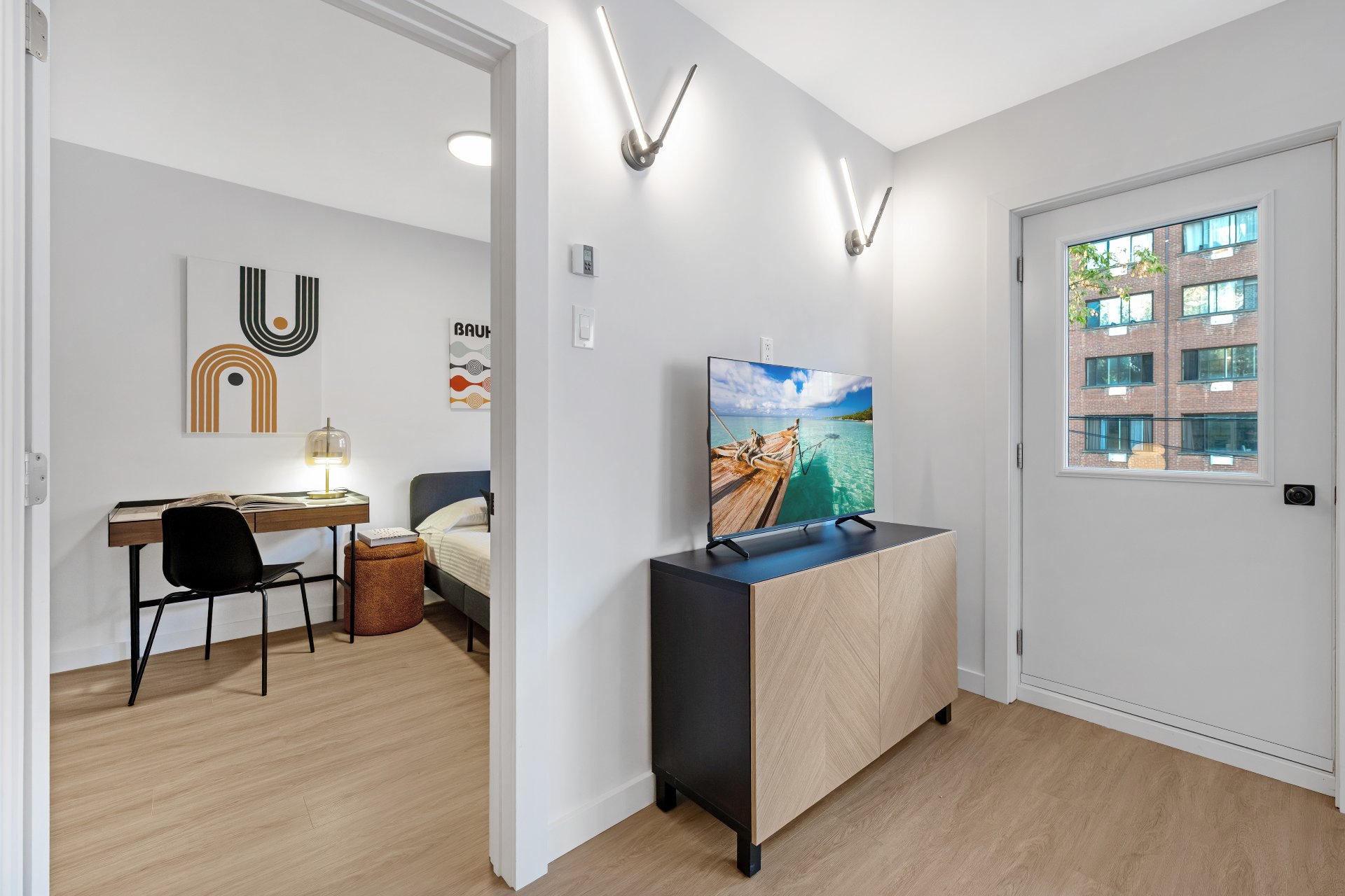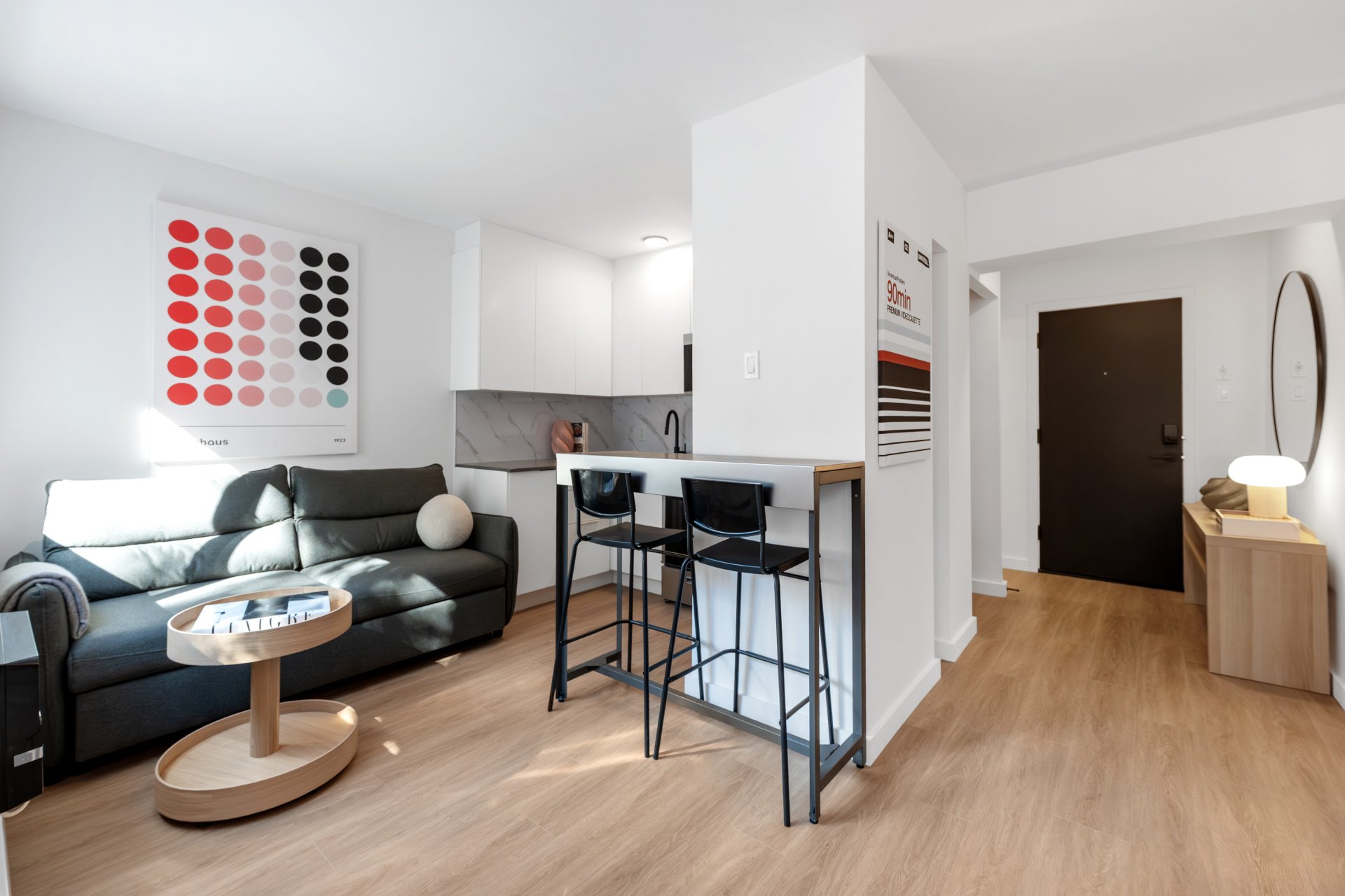 Électricité, chauffage, eau chaude, électroménagers et climatisation -- inclus sans frais pour**** PÉRIODE PROMOTIONNELLE NOVEMBRE ET DÉCEMBRE 2025**** Chaque unité comprend : Sofa-lit ou lit escamotable intelligent, téléviseur intelligent, coin repas intelligent, garde-robe intelligent, cuisine entièrement équipée, balcon privé avec mobilier de patio, ainsi que des oeuvres murales et éléments de décor design.